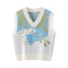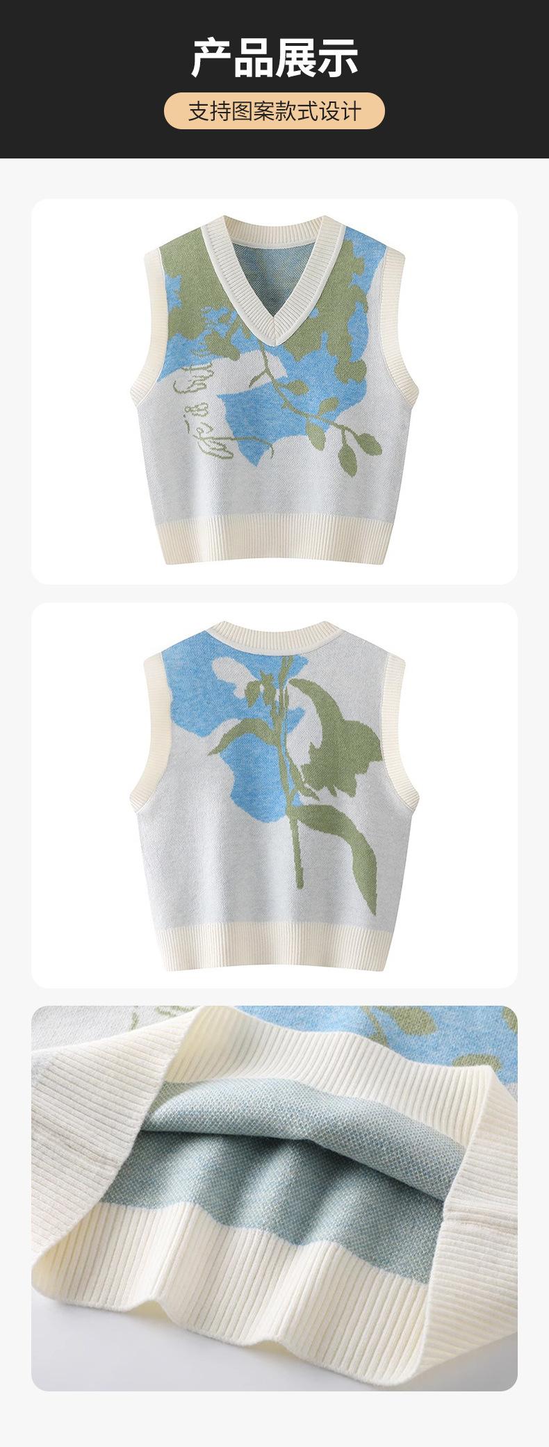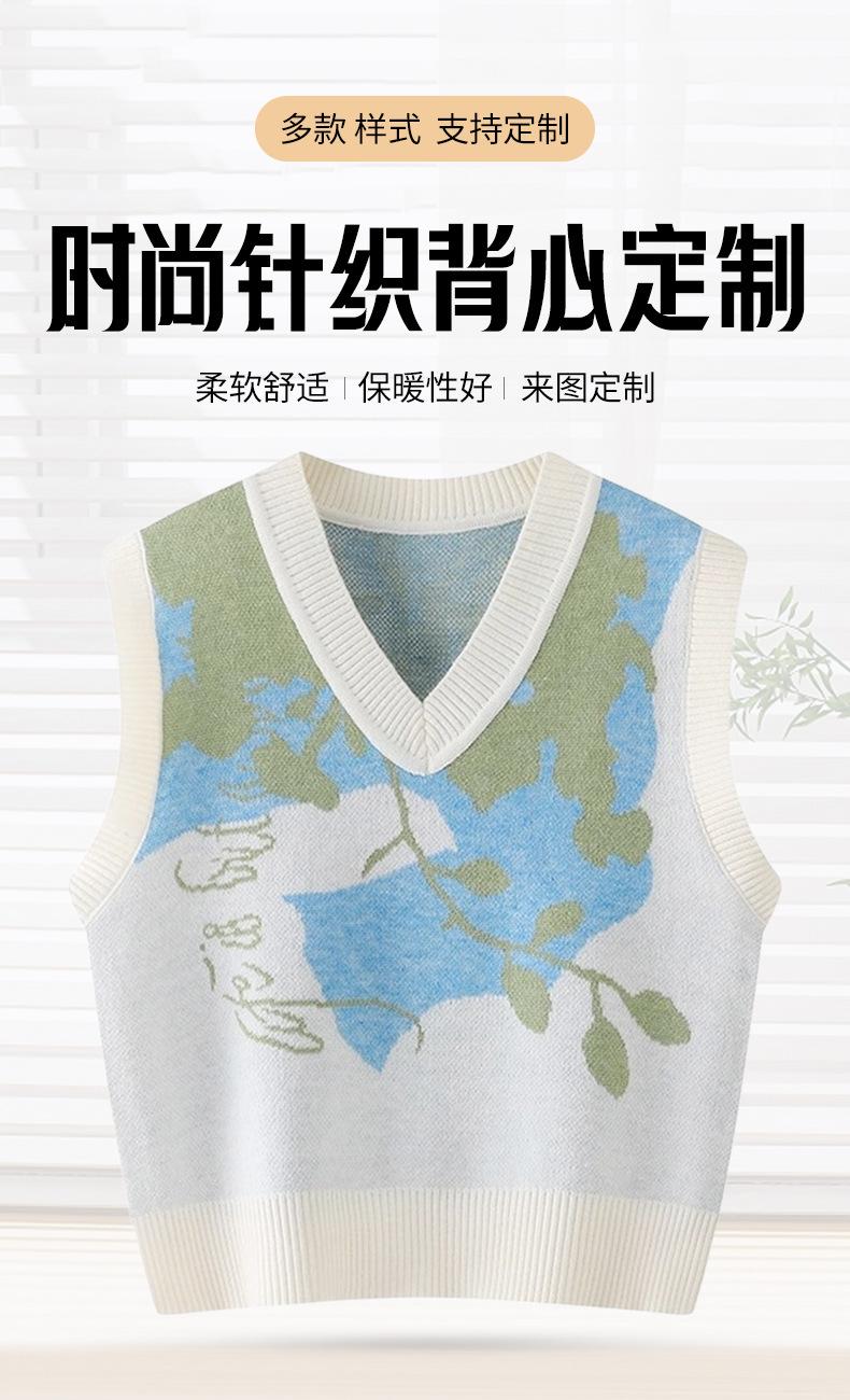 Chaleco de Punto sin Mangas Personalizado con Cuello en V Chaleco Jersey Japonés y Coreano Versátil Otoño e Invierno Cálido Chaleco de Punto Jacquard