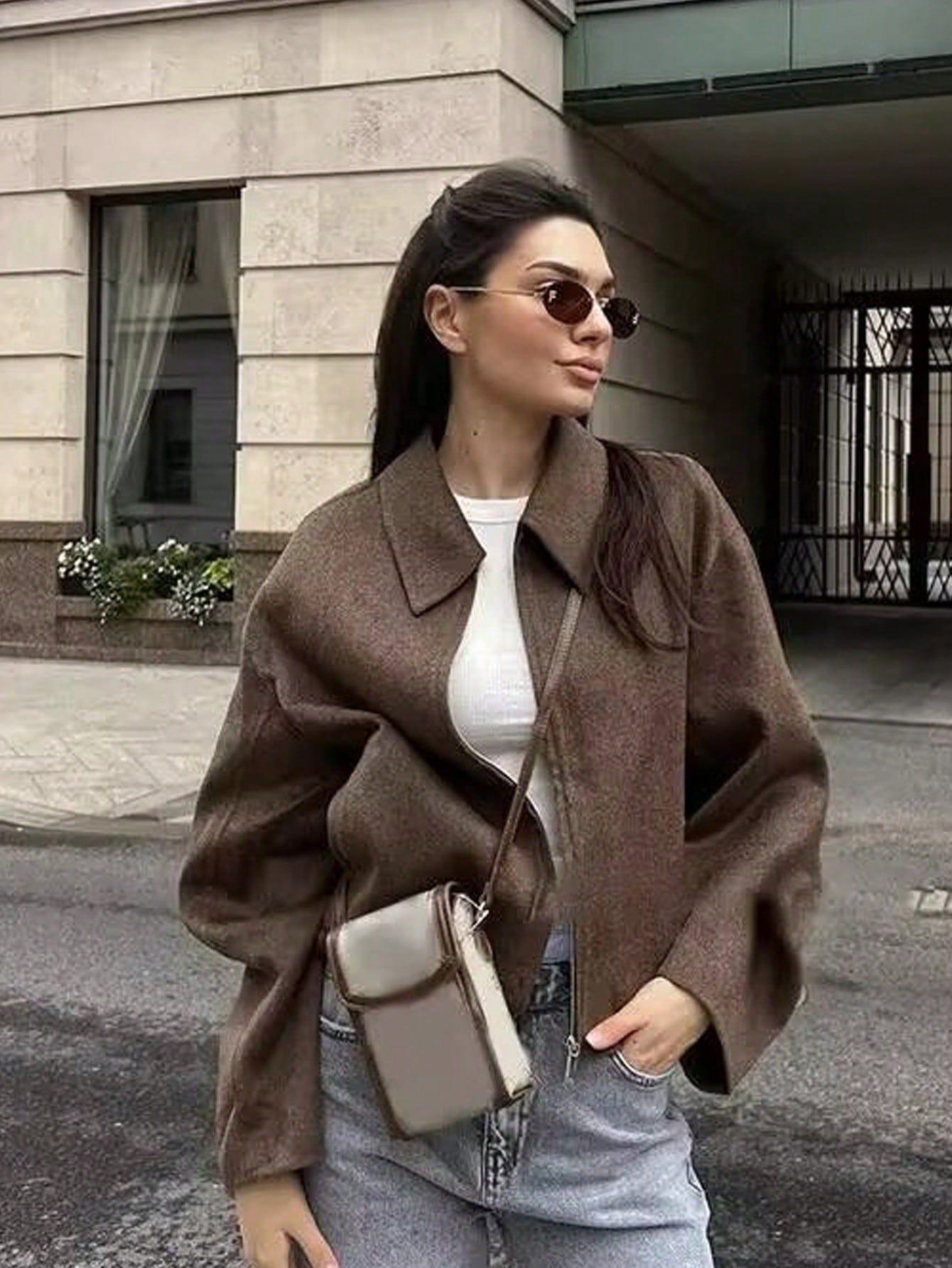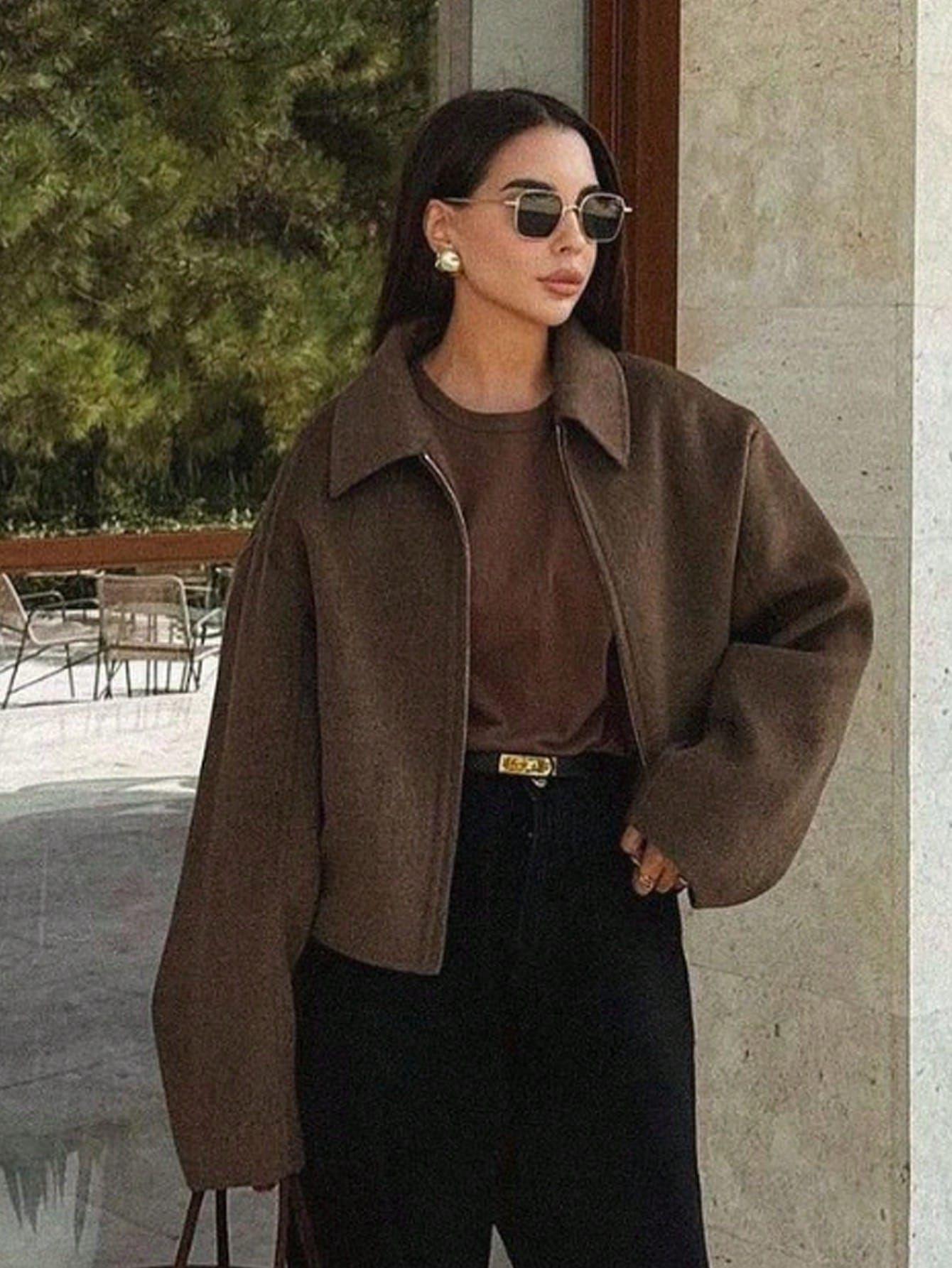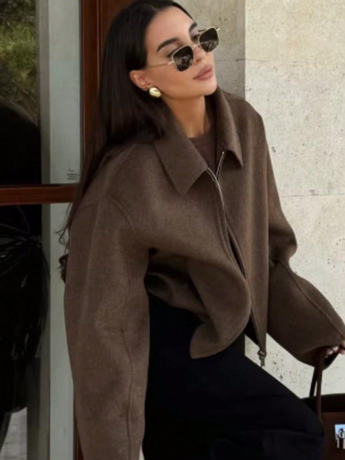 Amazon Ins Chaqueta de Lana con Cremallera Casual Versátil de Moda Estilo Europeo y Americano para Mujer Nueva Primavera y Otoño Tops de Mujer