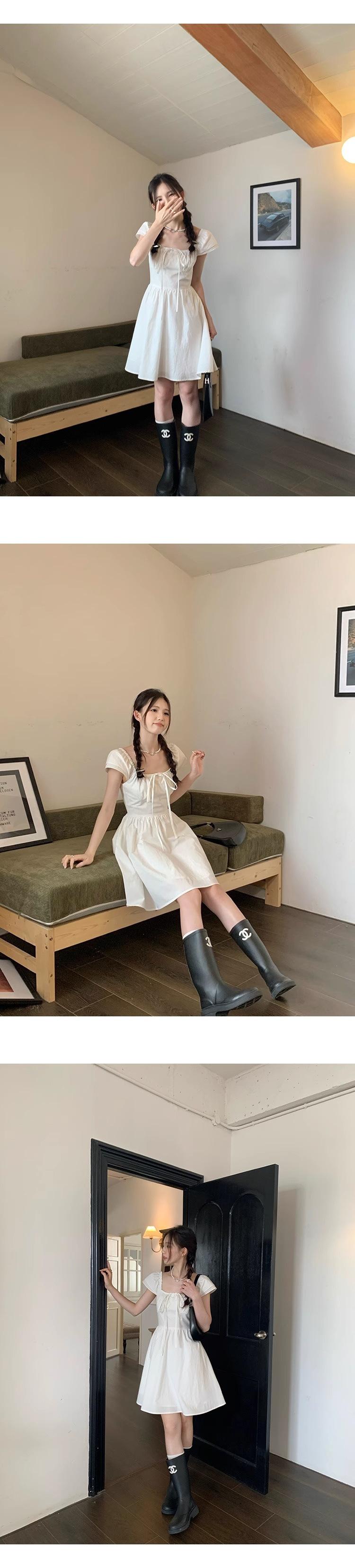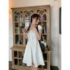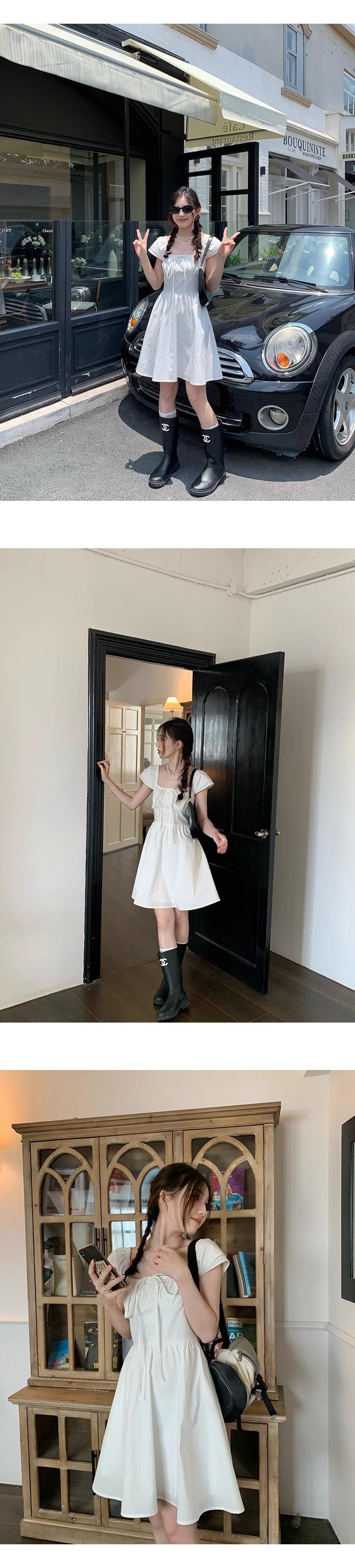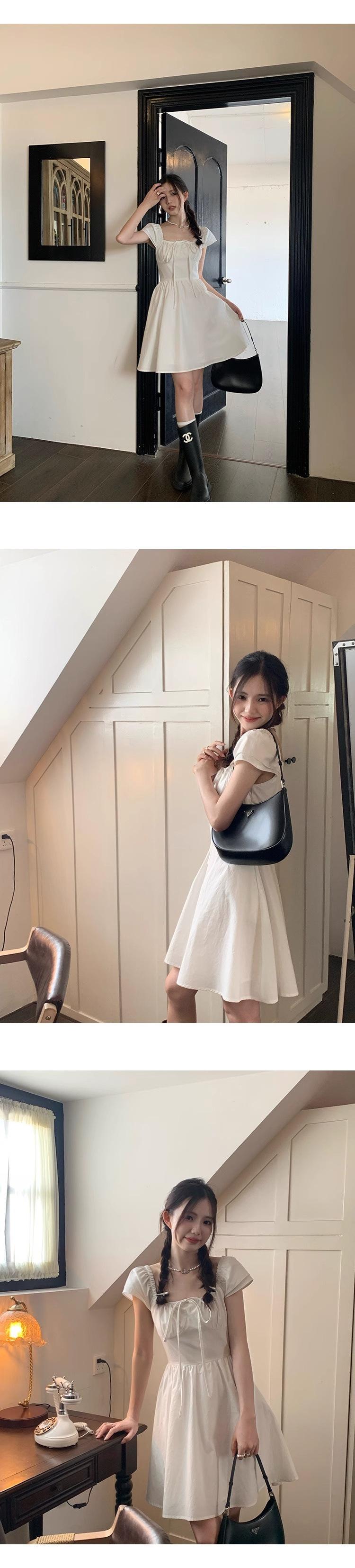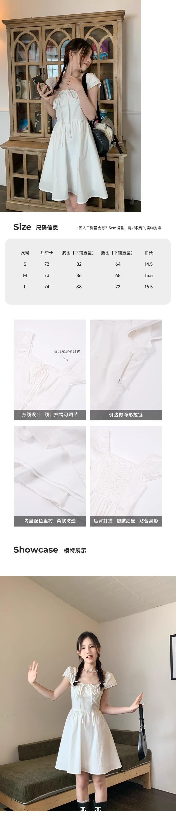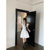 Vestido Blanco de Cuello Cuadrado para Mujeres Pequeñas, Look Francés de Cintura Alta Adelgazante y Dulce Falda A-Line Nueva de Verano con Cintura Ceñida