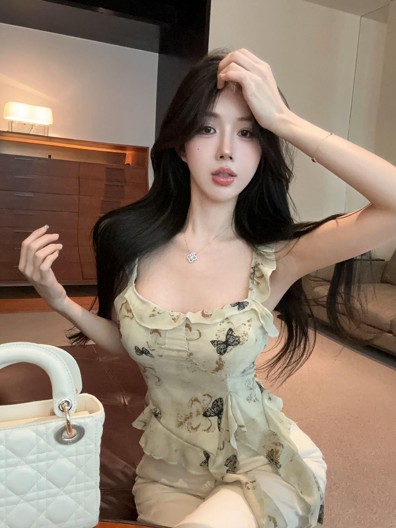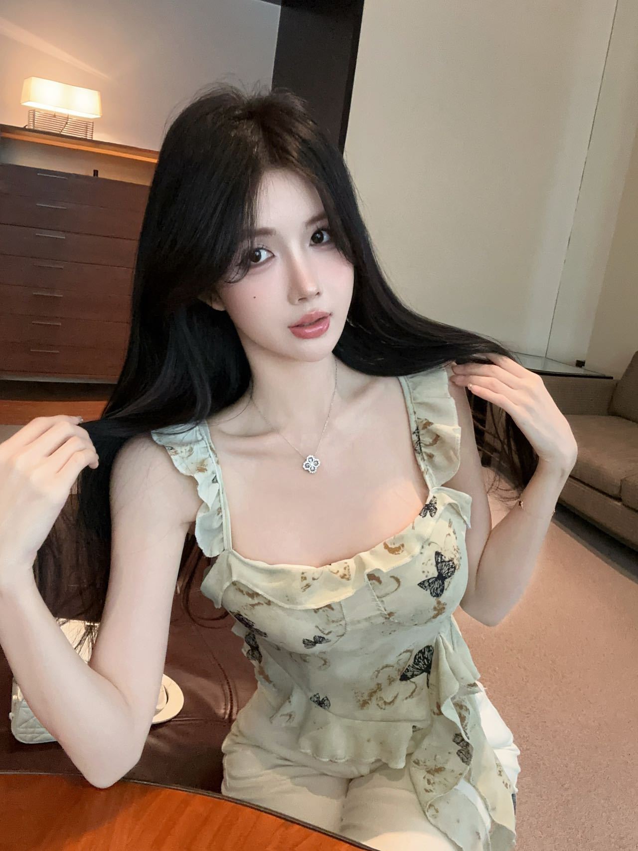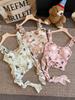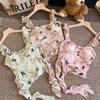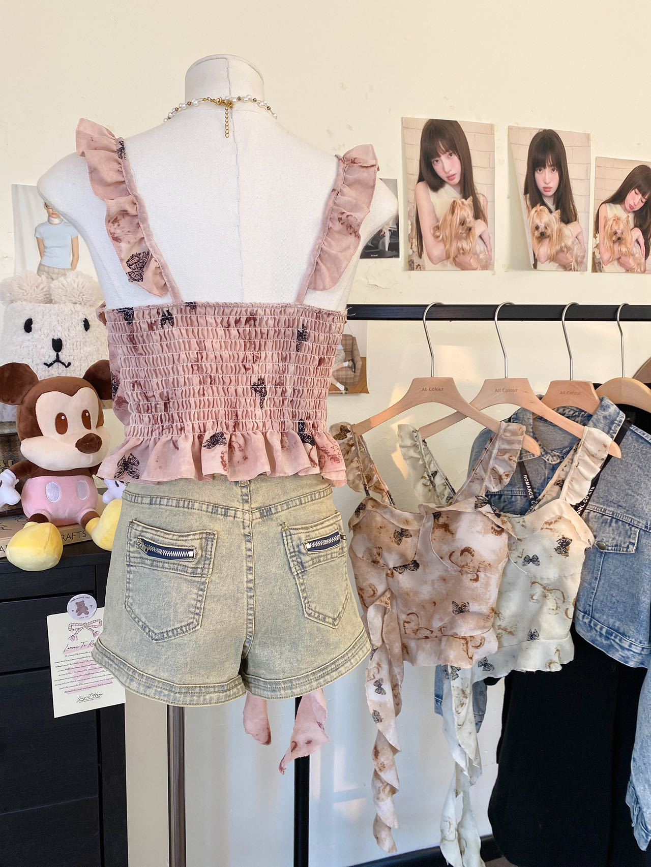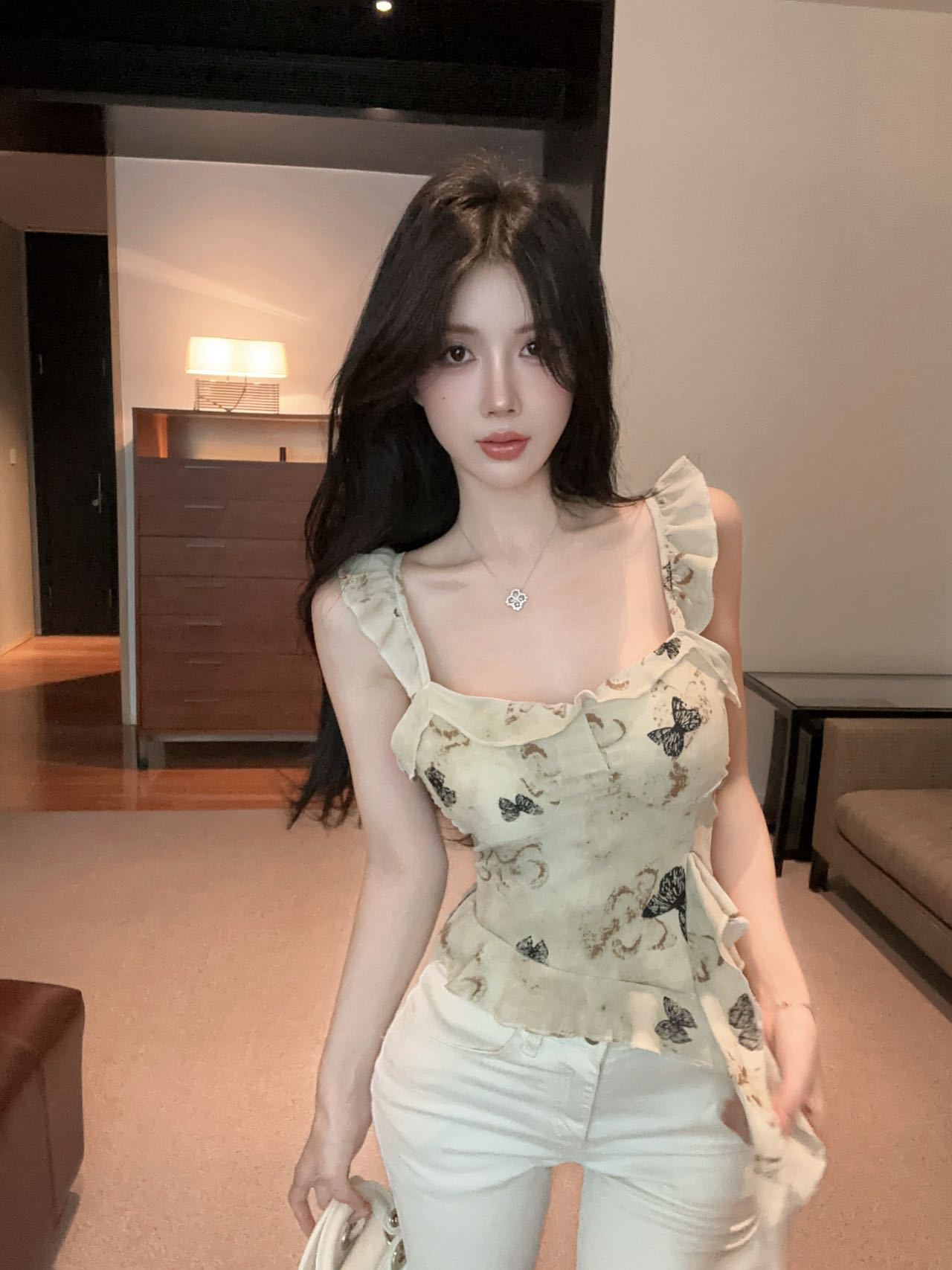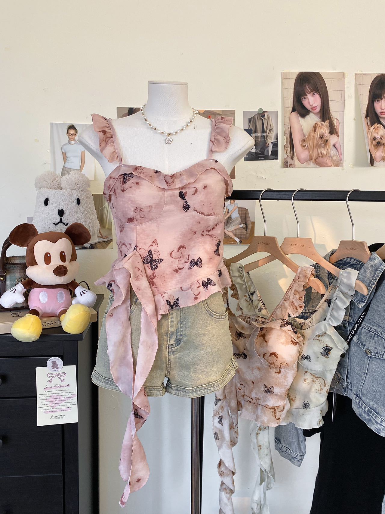Camisola Corta Rosa con Cuello en V Pequeña para Mujer Verano Asimétrica con Volantes Sexy Elegante sin Mangas
