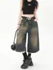Pantalones Cortos Americanos Retro para Mujer en Verano, Delgados, de Cintura Alta, Holgados, Lavados, Desgastados, Estilo Casual, Pantalones Cortos de Mezclilla de Pierna Ancha