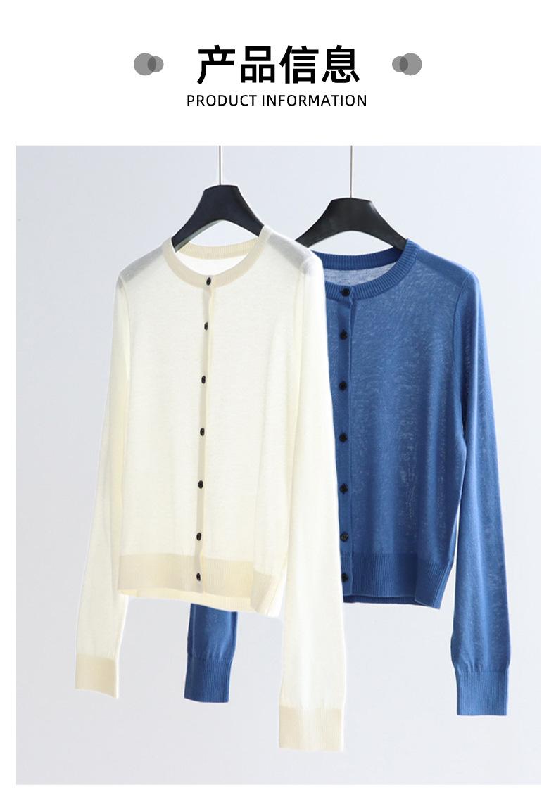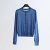 Cárdigan de Punto con Botones de Cuello Redondo para Mujer, Fino, Elegante, para Viaje, Versátil, Básico, de Manga Larga, Chaqueta, Top