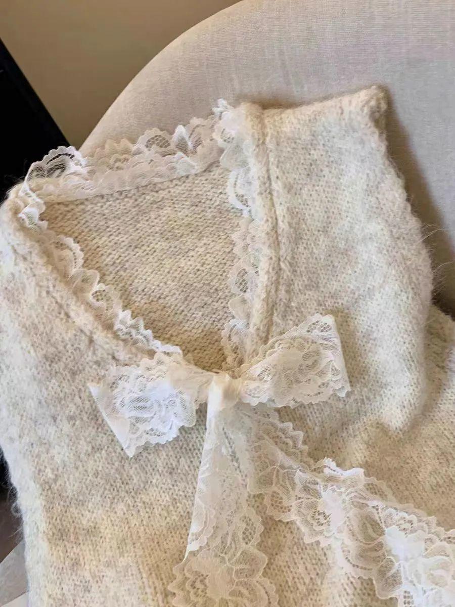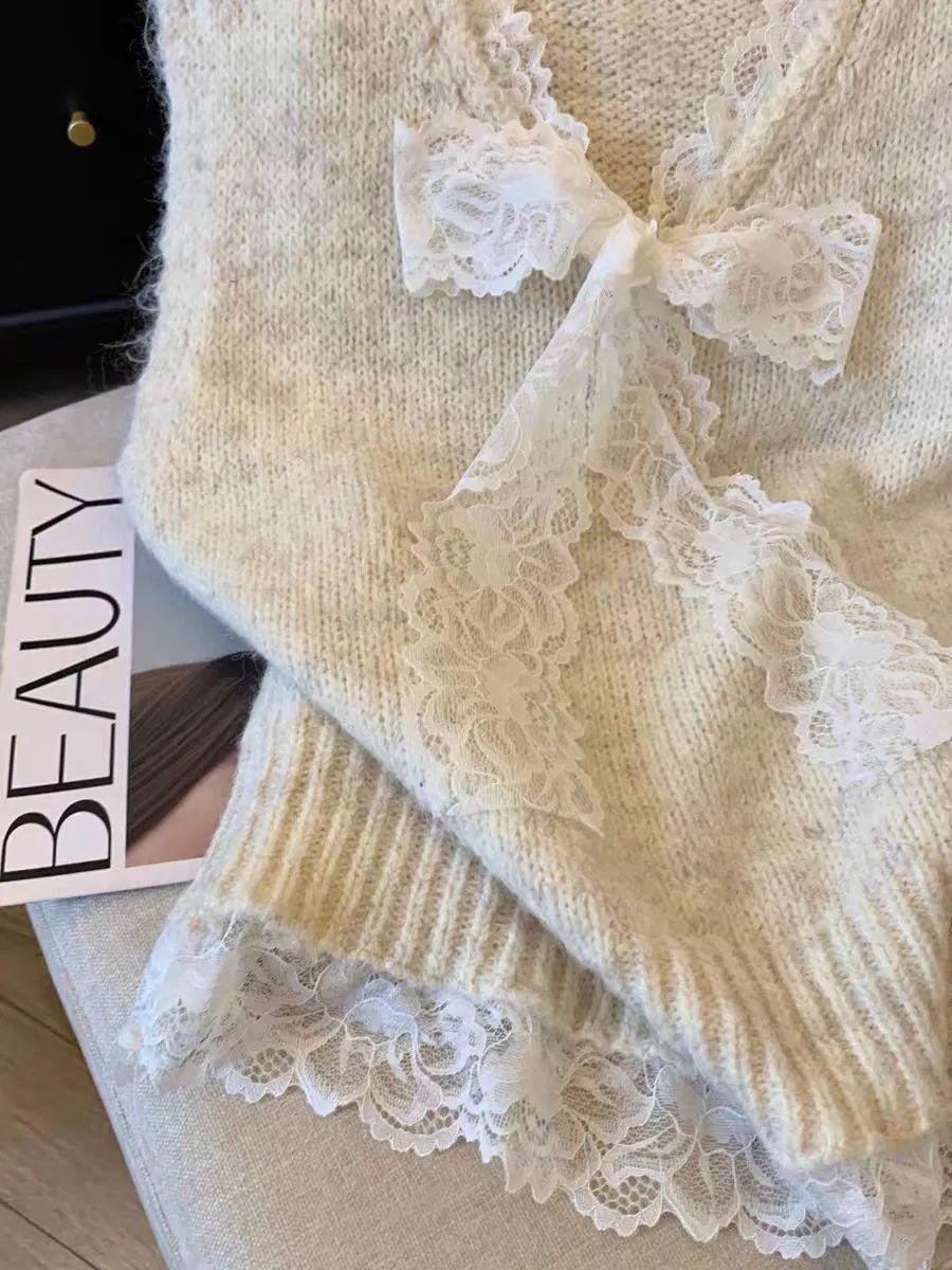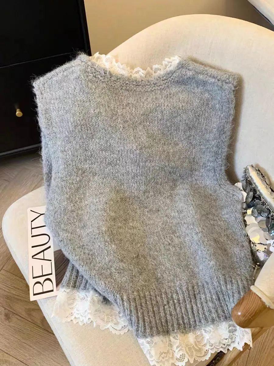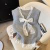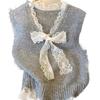 Shanli Dadi Chaleco de Punto con Cuello en V y Lazo Estilo Chanel para Mujer, Nuevo Estilo de Primavera, Chaleco de Suéter Apilado para Hombres Pequeños