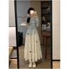 Blue top and white skirt [suit], Blue [single top], White skirt [single skirt]