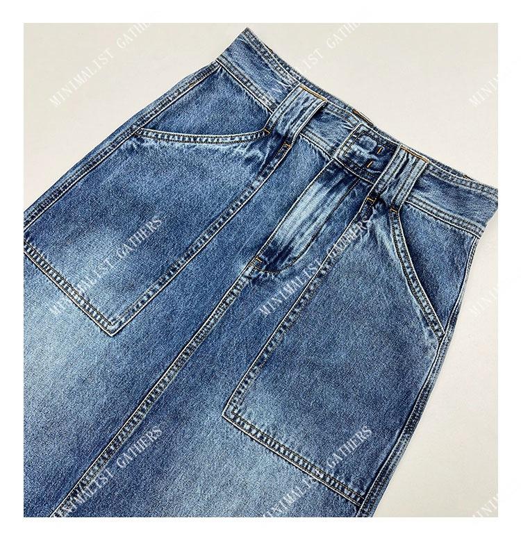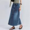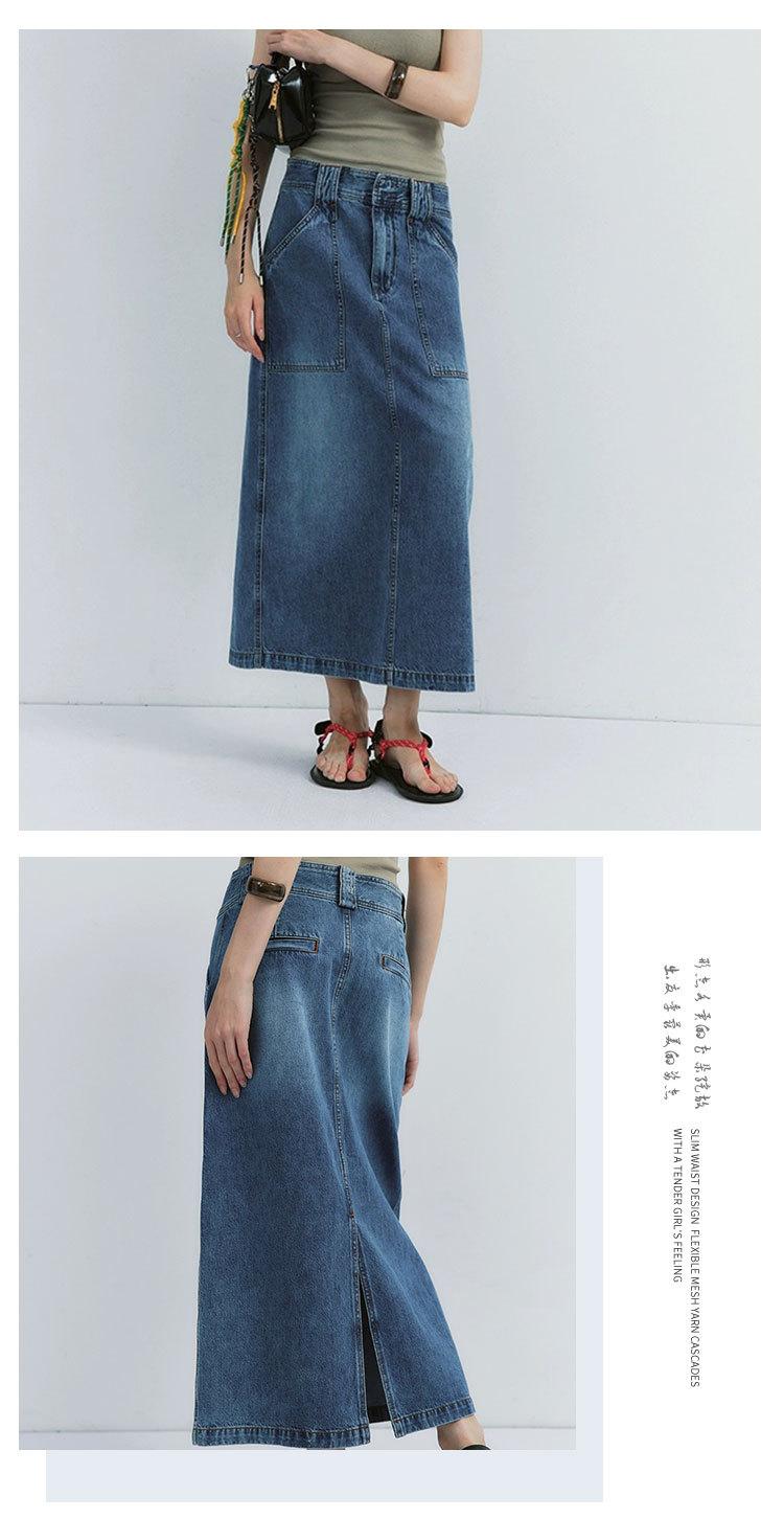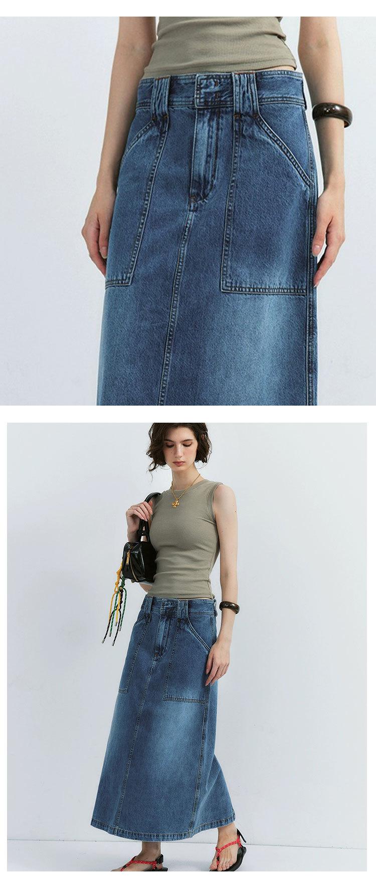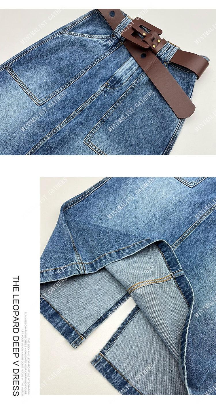 Falda de Mezclilla Retro con Abertura de Verano 2025 para Mujer Verano Nueva Cintura Alta Holgada Cubre Entrepierna Línea A Cadera