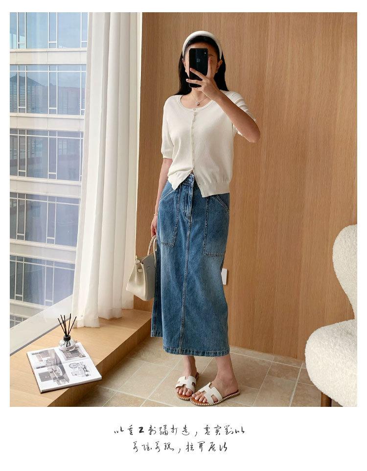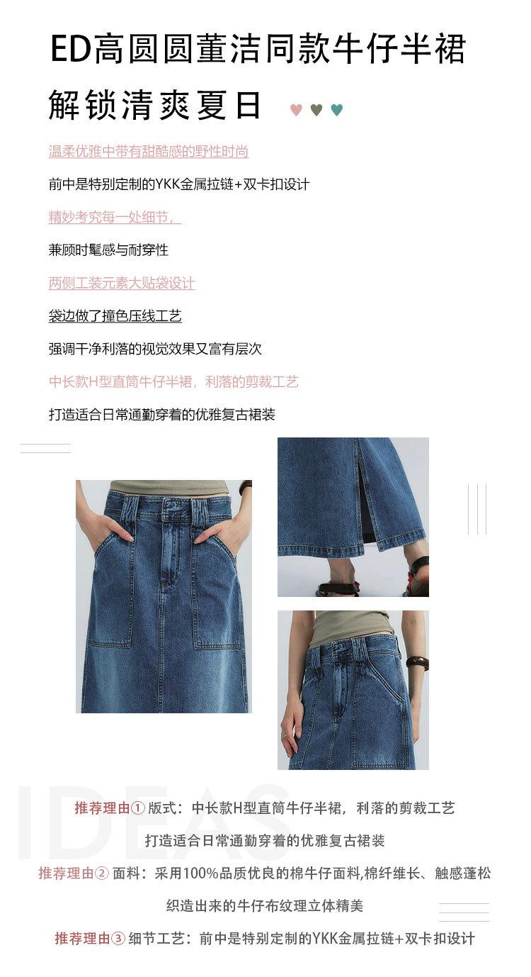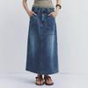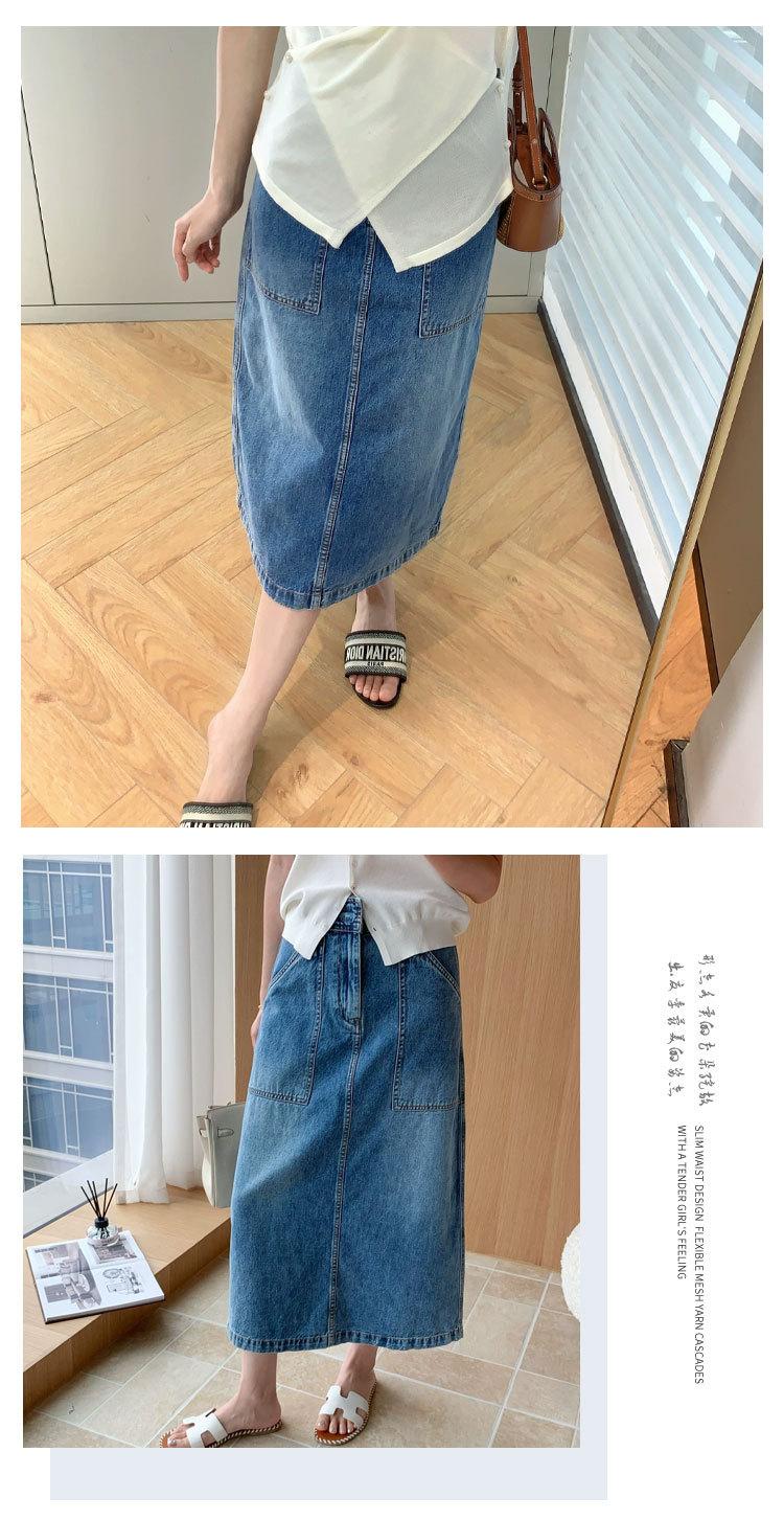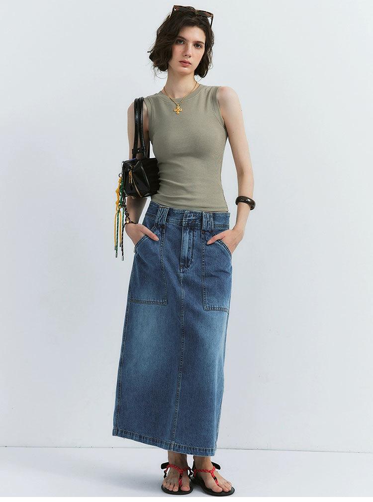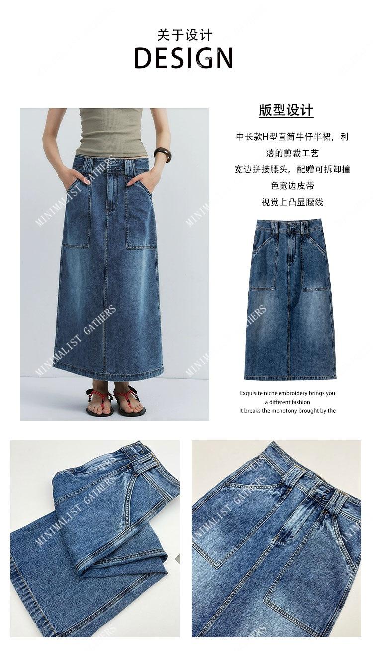 Falda de Mezclilla Retro con Abertura de Verano 2025 para Mujer Verano Nueva Cintura Alta Holgada Cubre Entrepierna Línea A Cadera
