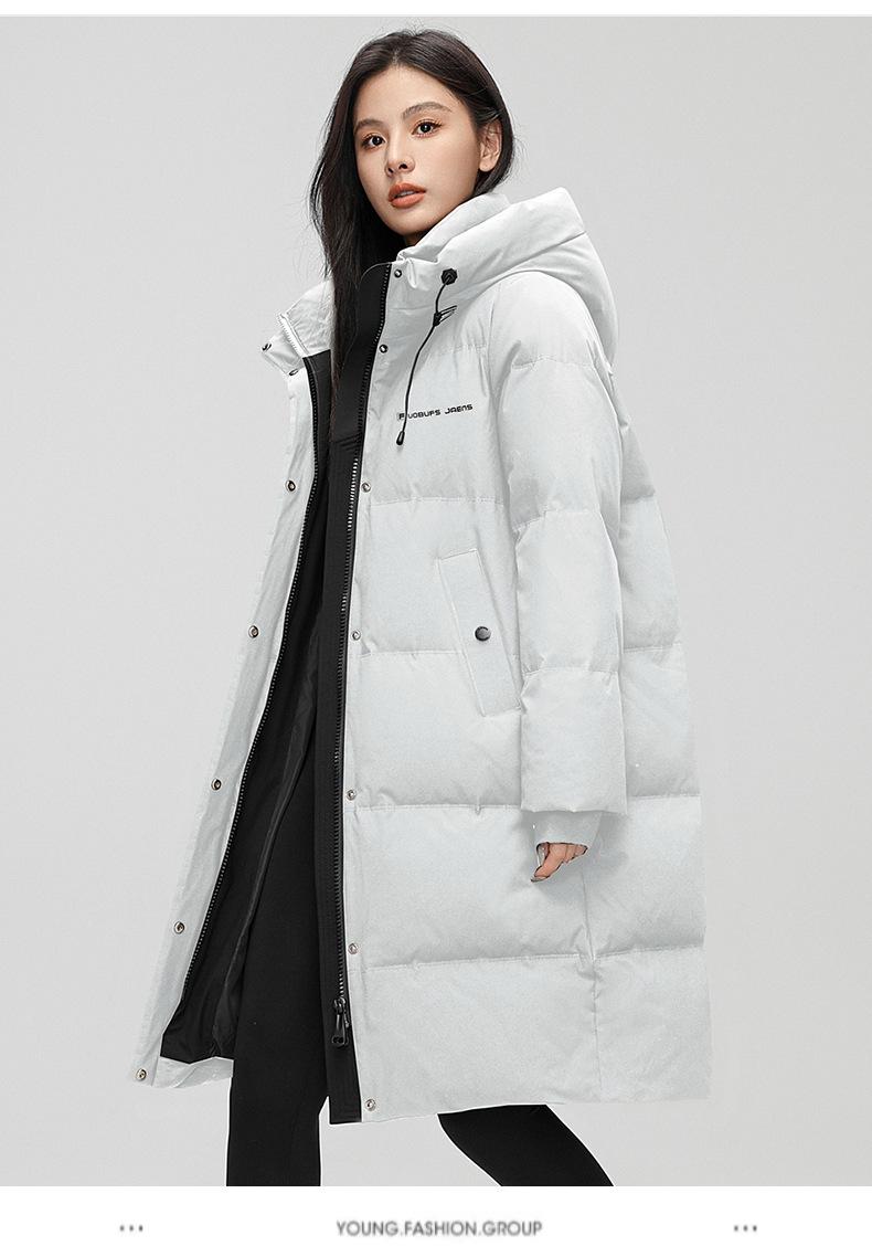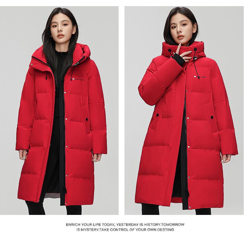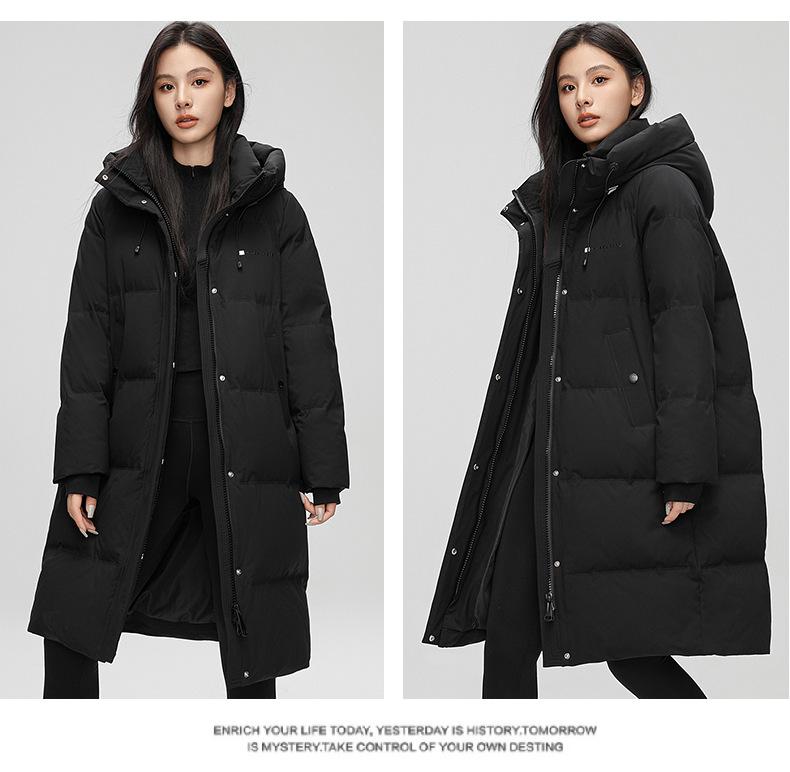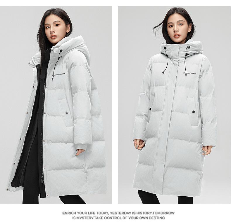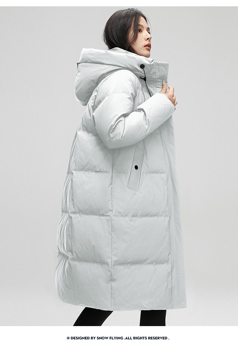 Flying in the Snow Chaqueta de plumón de media longitud por encima de la rodilla para mujer Invierno 2025 Nuevo con capucha Calor para frío extremo Chaqueta de invierno para mujer
