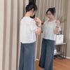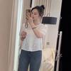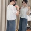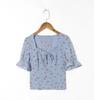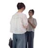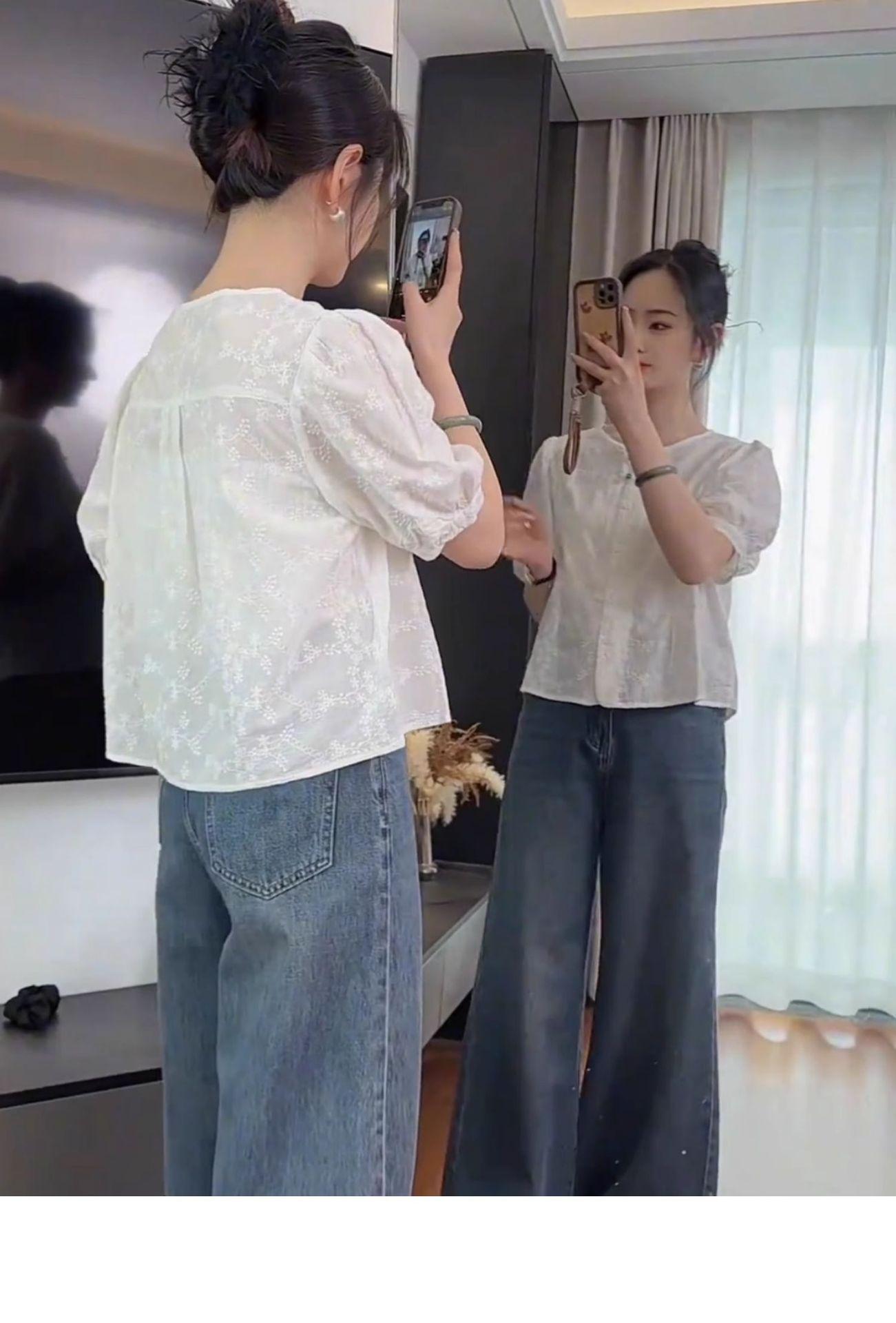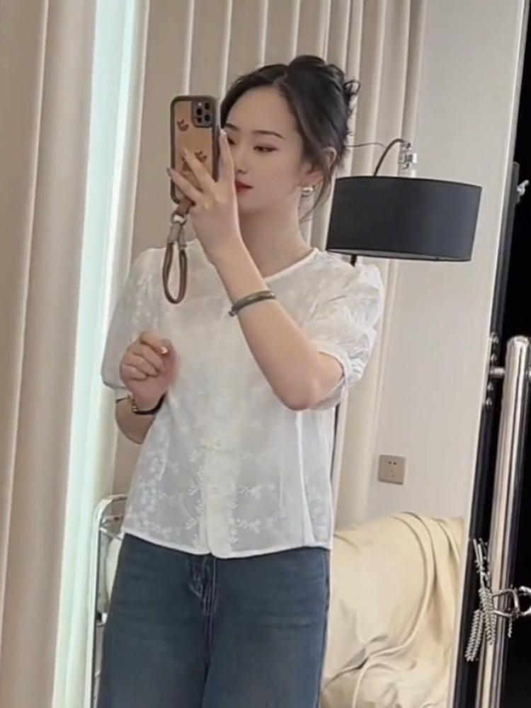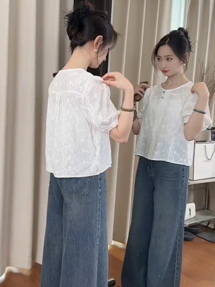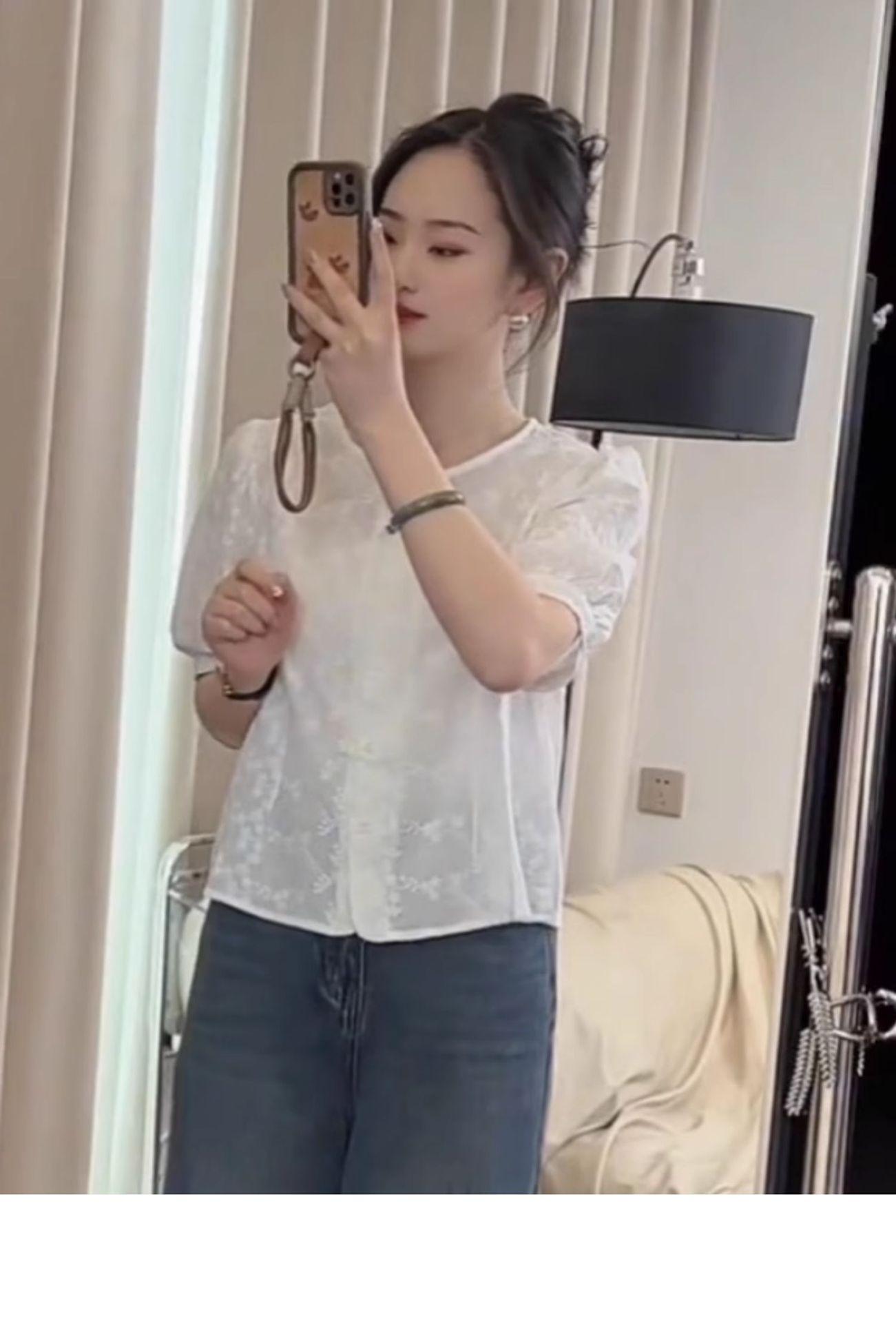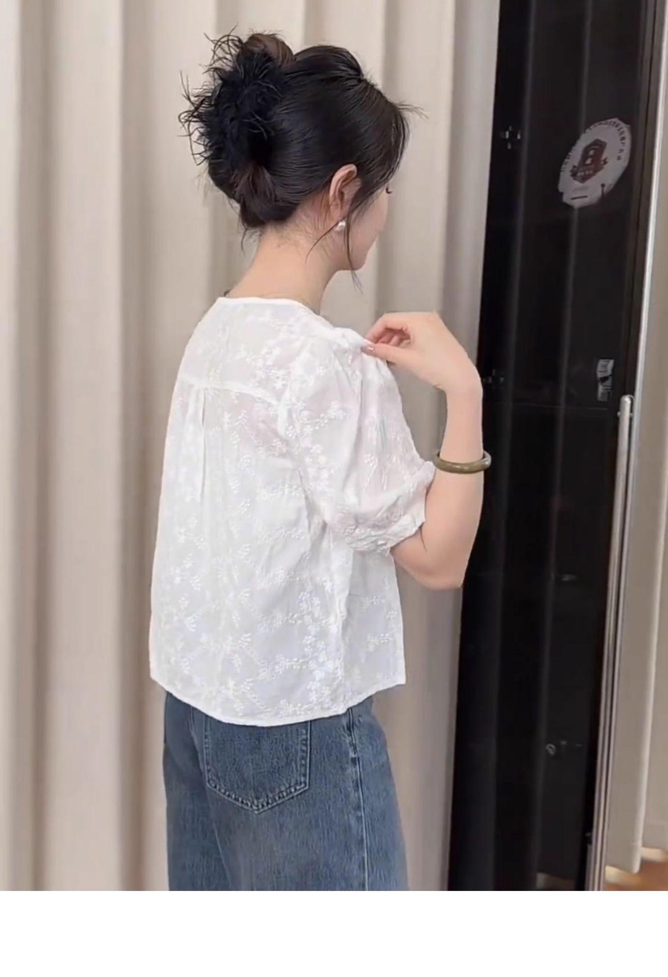 Camisa Refinada de Manga Corta con Jacquard Bordado y Tapeta Doble con Botones Verdes para Mujer Verano 2025 Nuevo Top Corto Hermoso y a la Moda
