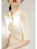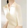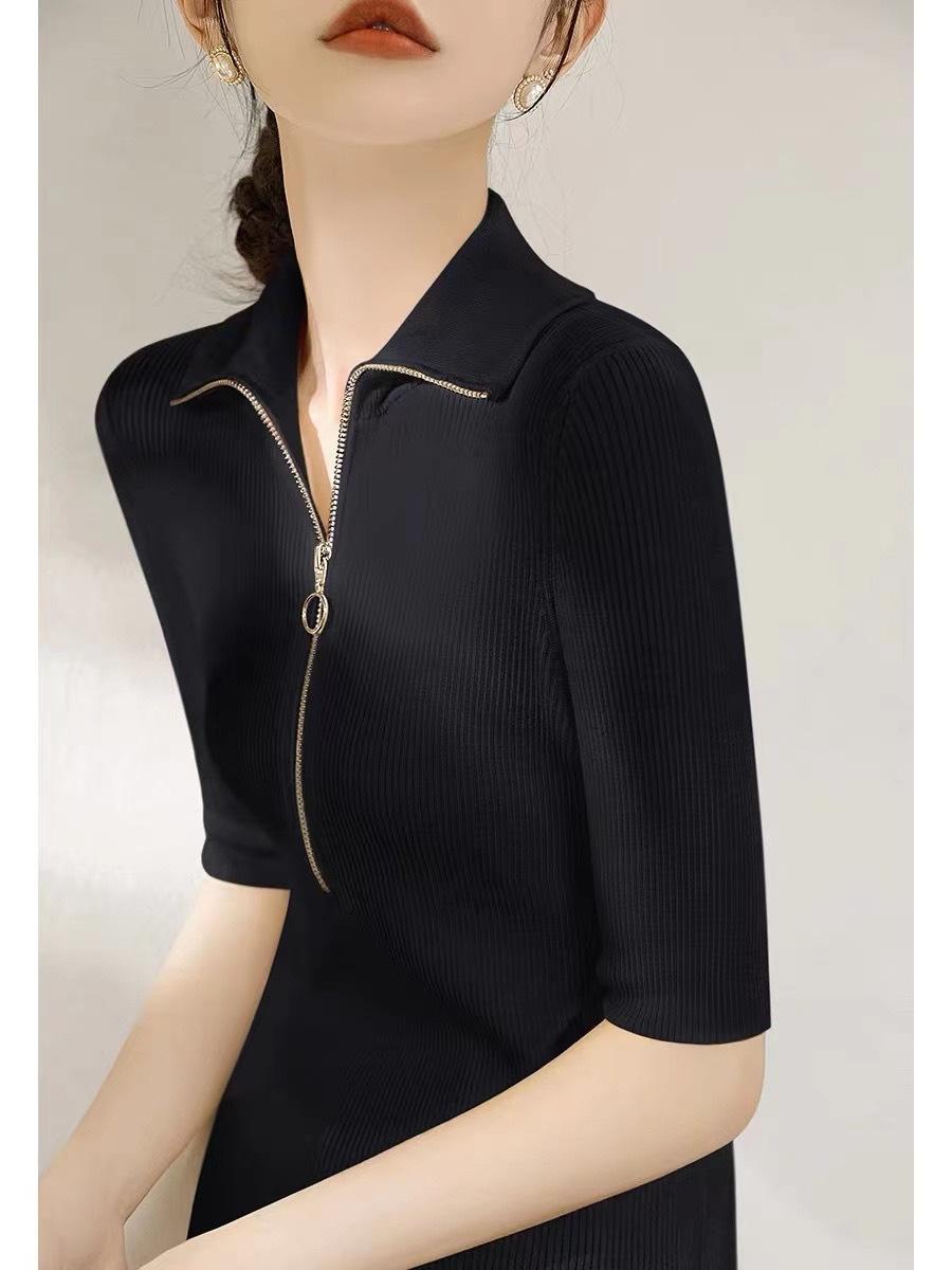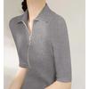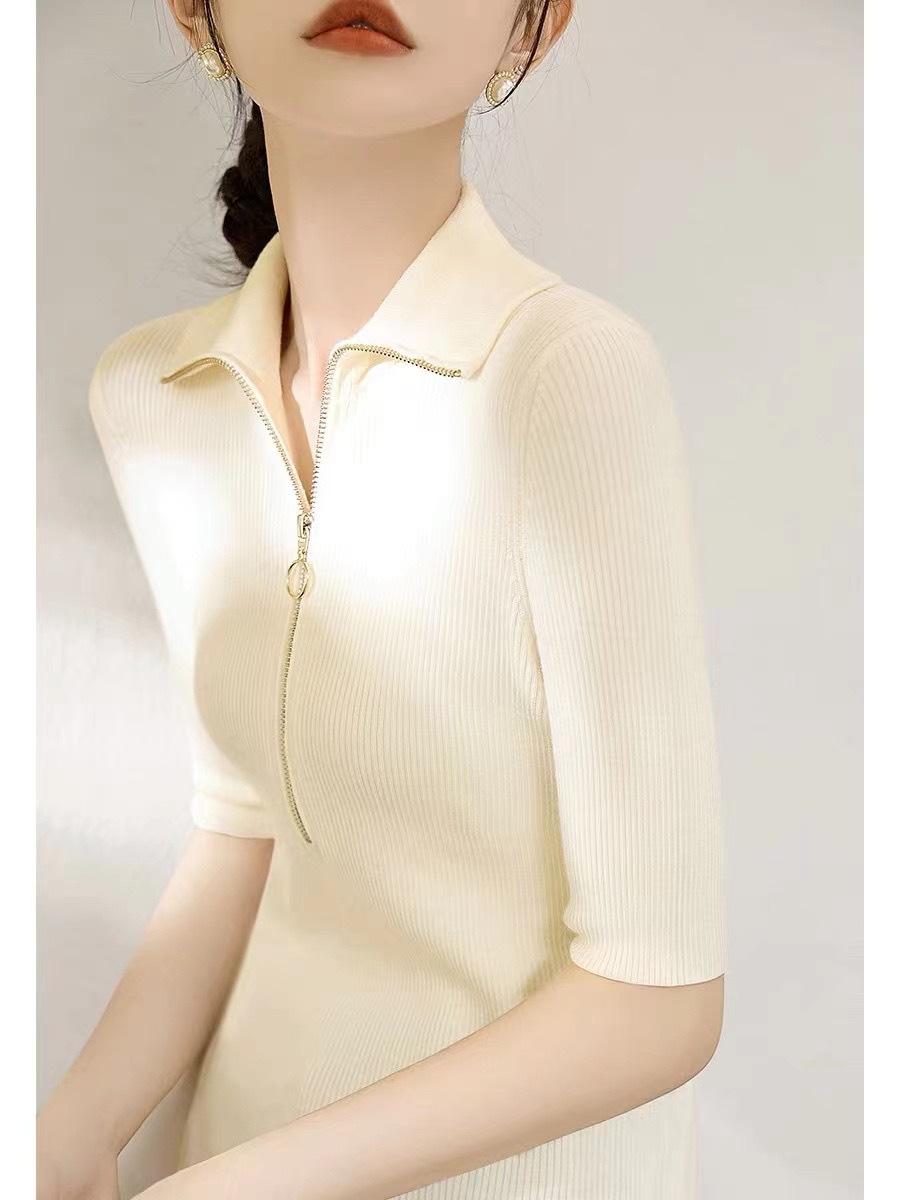 Primavera 2025 Nuevo Estilo Simple para Mujer Combinable Media Cremallera Color Sólido Solapa Tejido Ajustado Top Básico