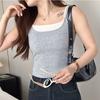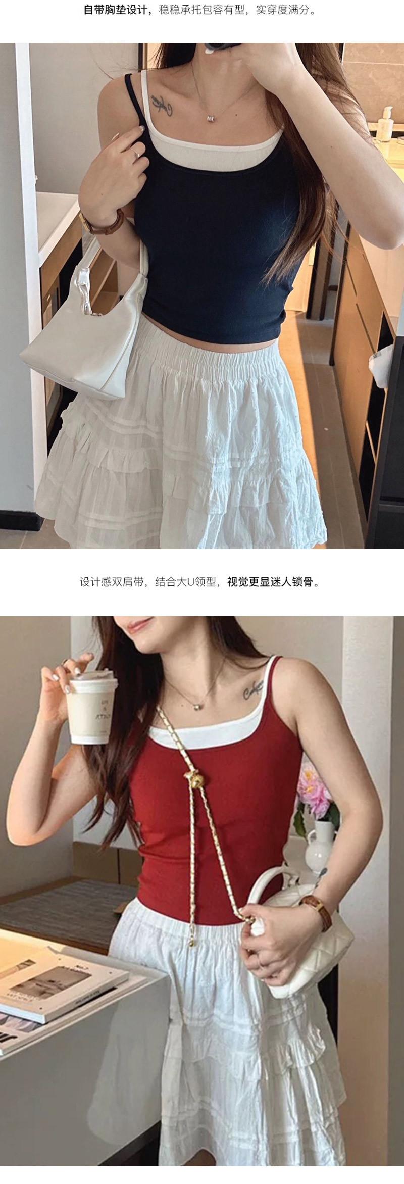 Camisola de Punto Falso de Dos Piezas Puro con Cinturón, Almohadilla para el Pecho, para Mujer, Ajustada, Adelgazante, Interior Elástico, Verano, Combinación Universal, Top de Color en Contraste