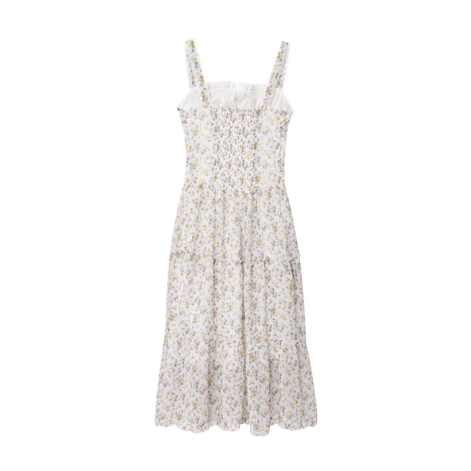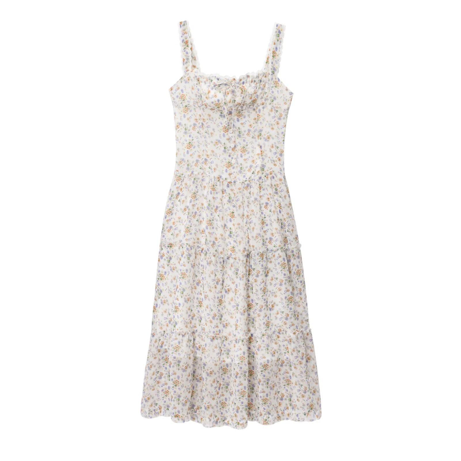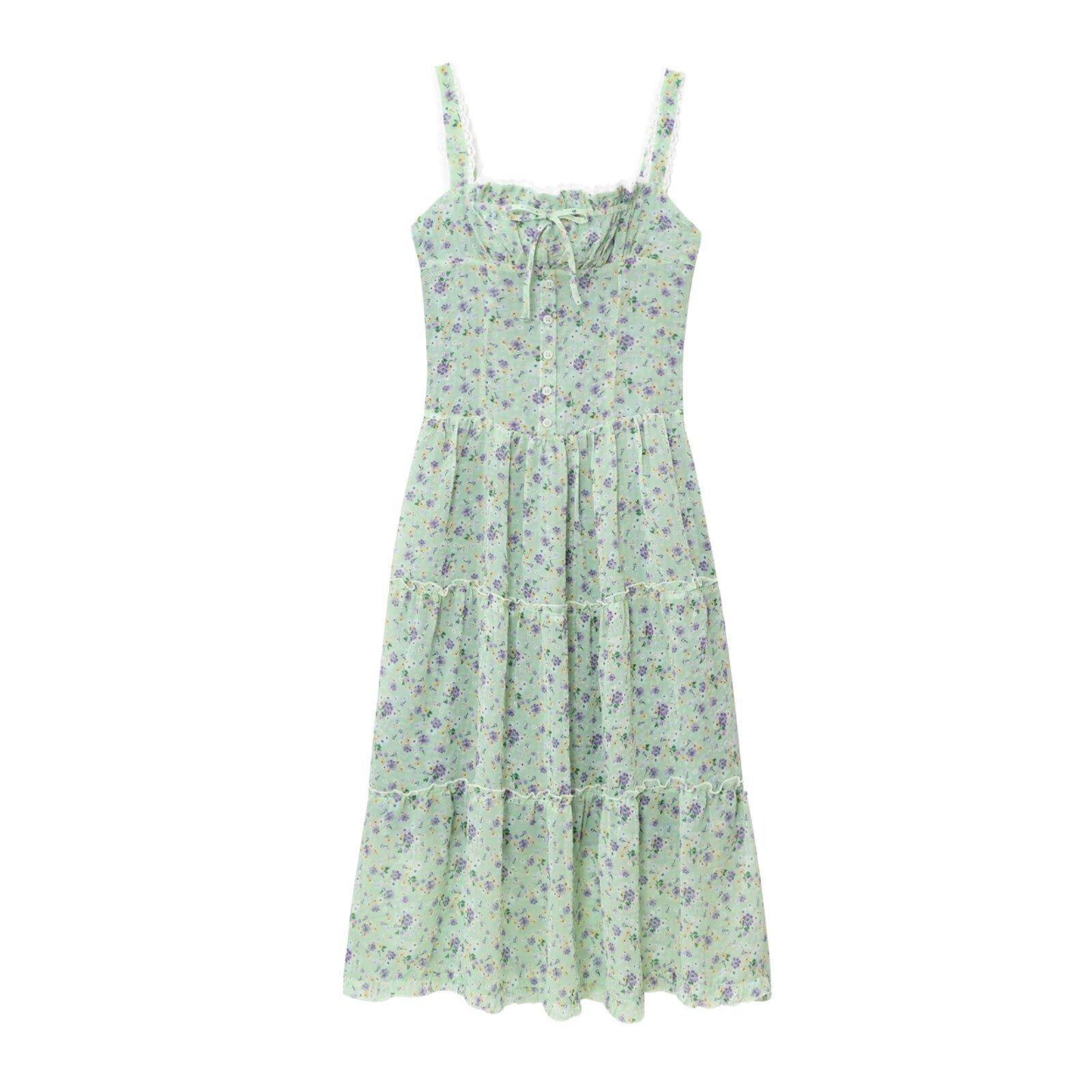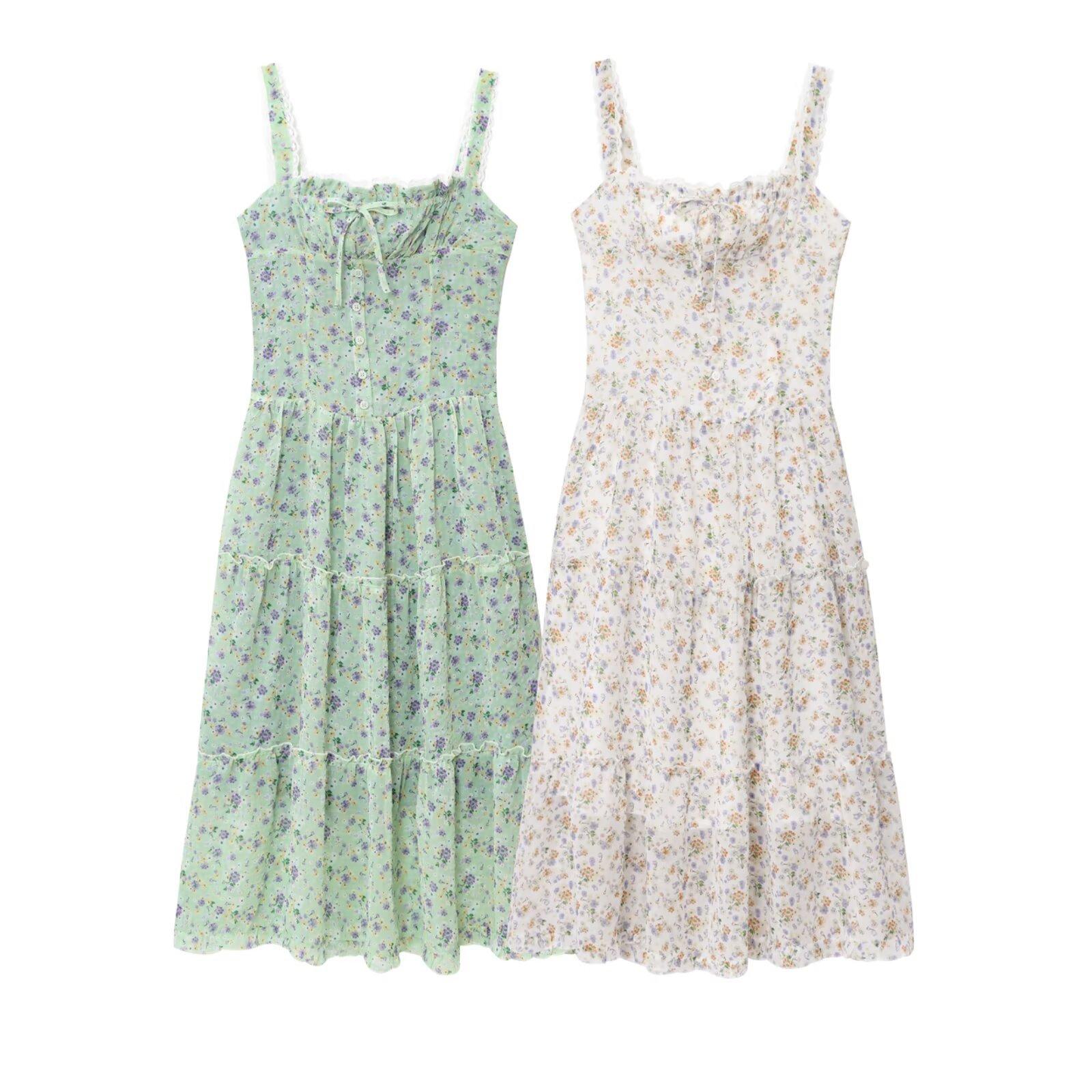 Z Estilo Europeo y Americano Transfronterizo 2025 Moda de Verano Nuevo Vestido Largo de Tirantes con Encaje y Cuello Cuadrado Floral Francés