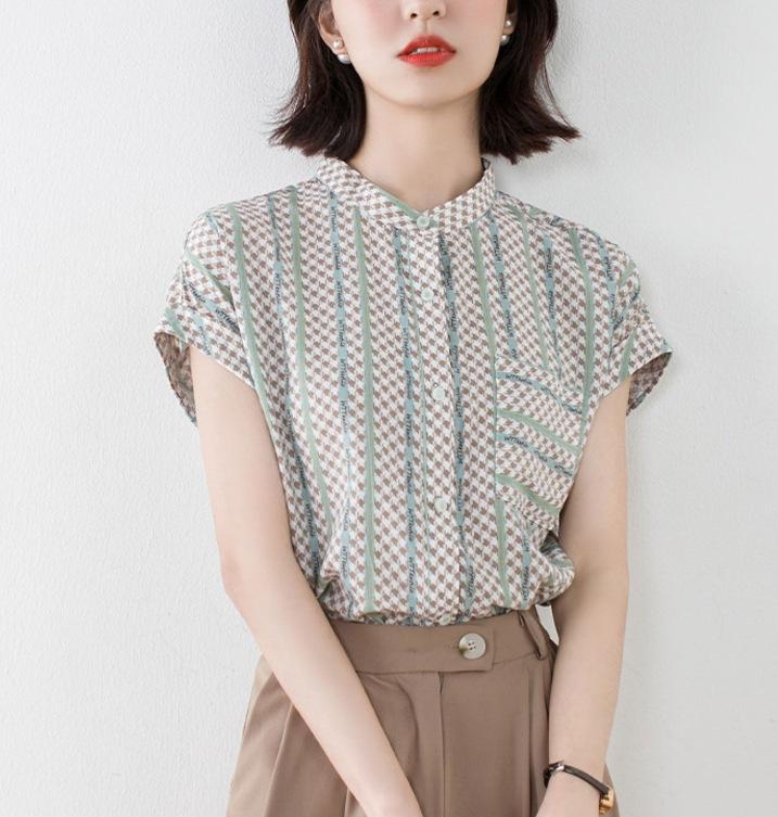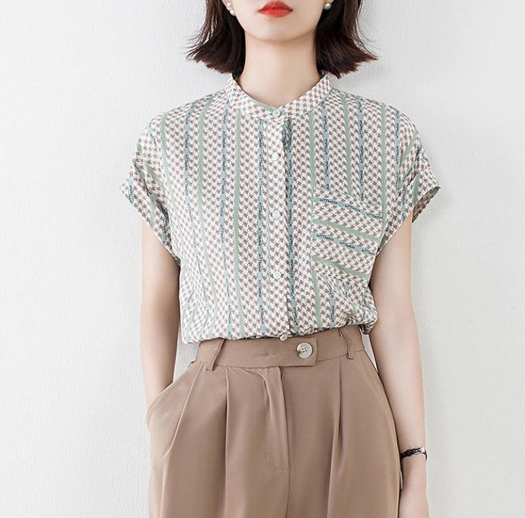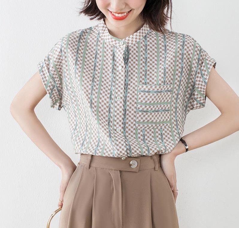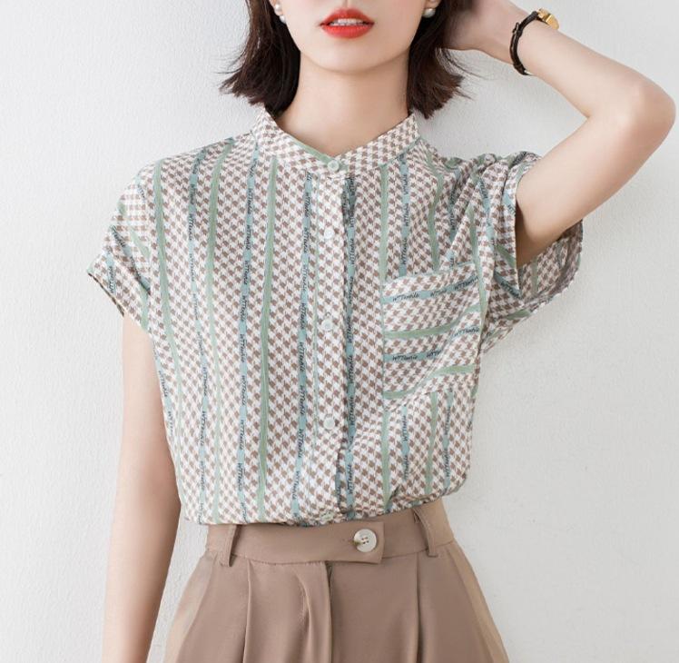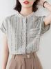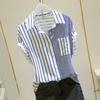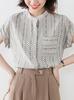 Top Rayado de Manga Corta con Sentido del Diseño para Mujer Verano 2025 Nuevo Estilo Camiseta Delgada Elegante Camisa Corta Pequeña Camisa Chic