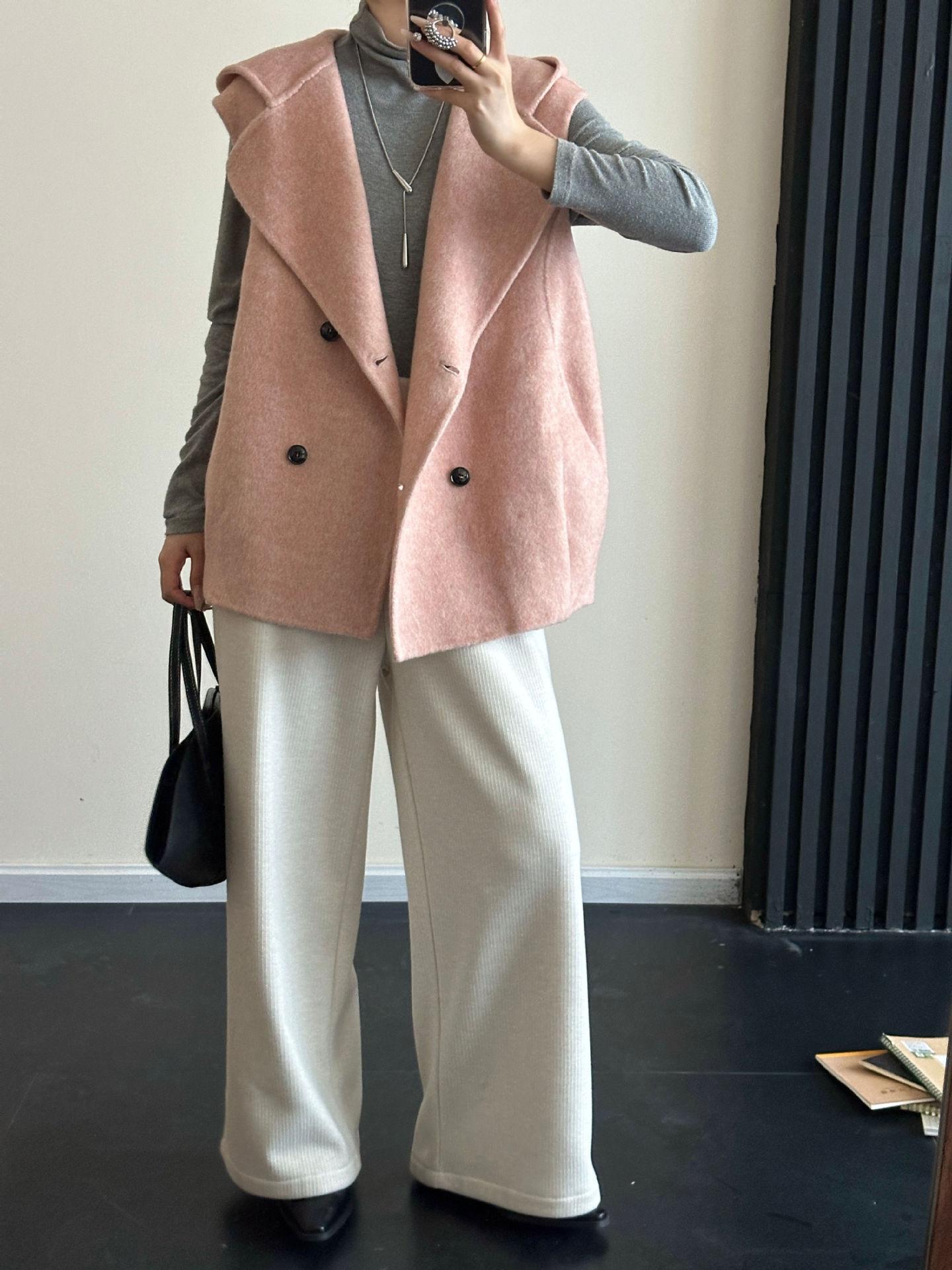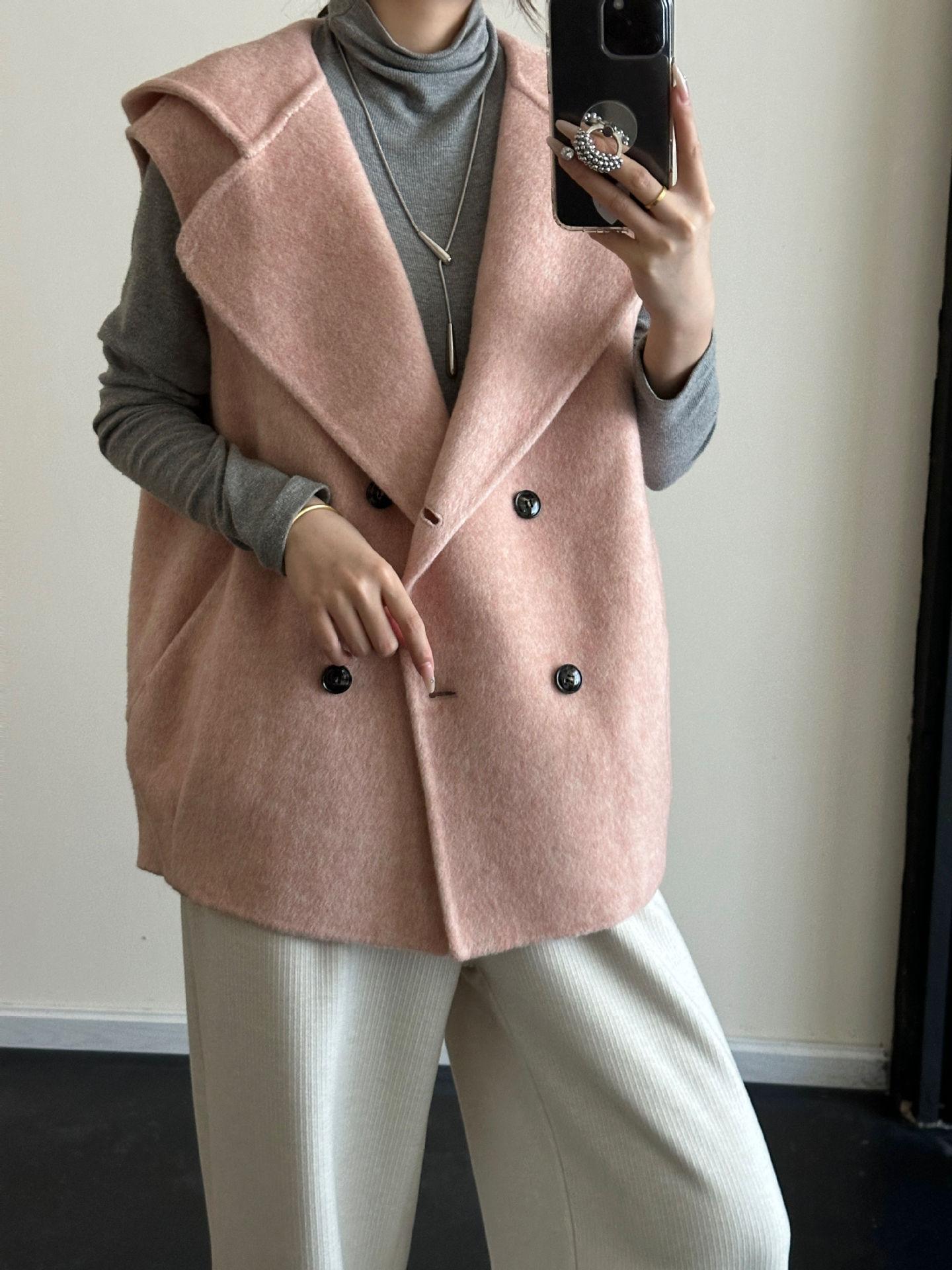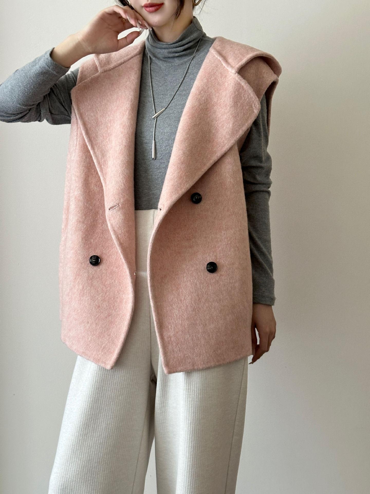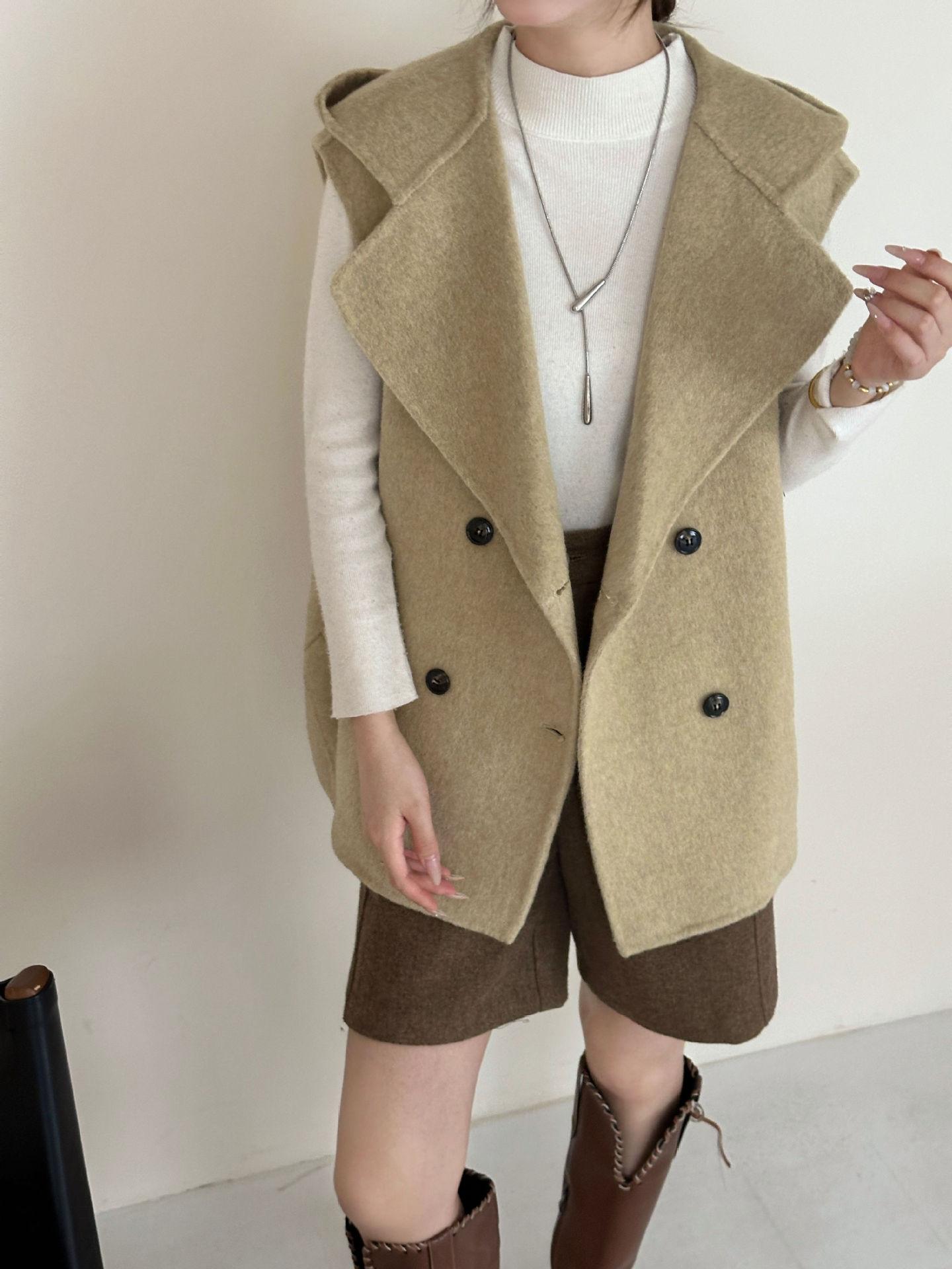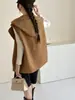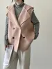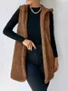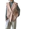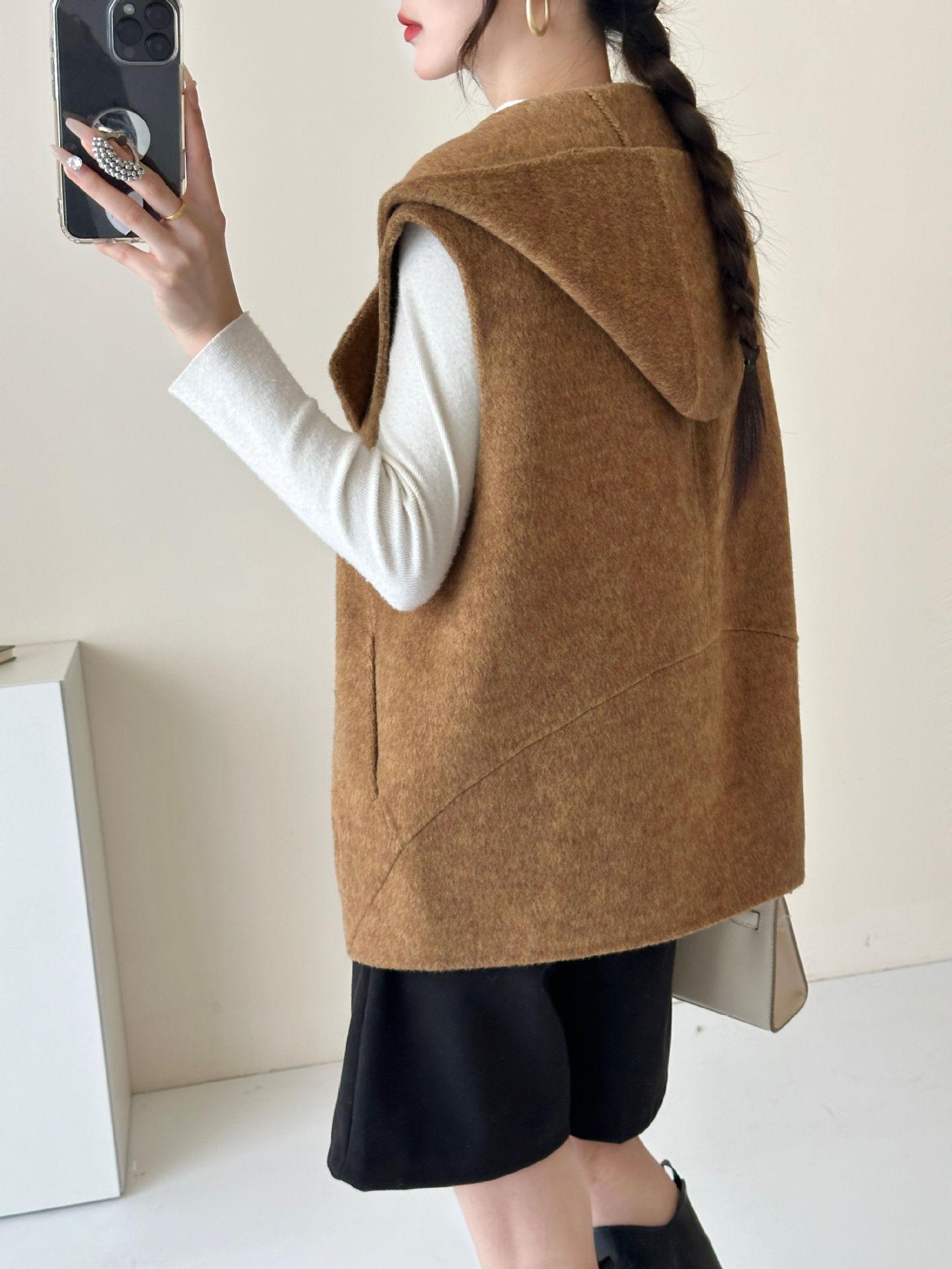 Chaleco de Lana sin Mangas de Largo Medio para Mujer Otoño e Invierno Nuevo Chaleco de Lana para Mujer de Color Sólido con Capucha Doble Abotonadura Nylon de Doble Cara