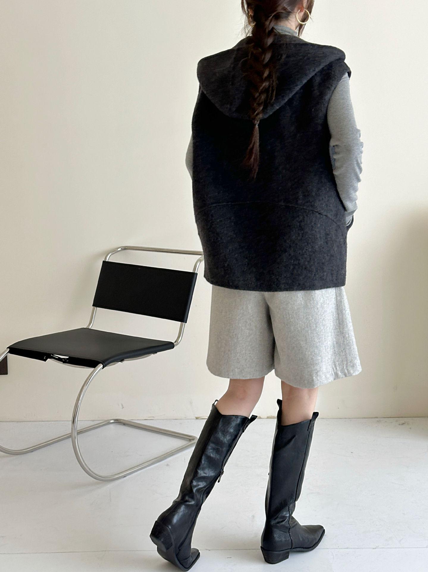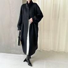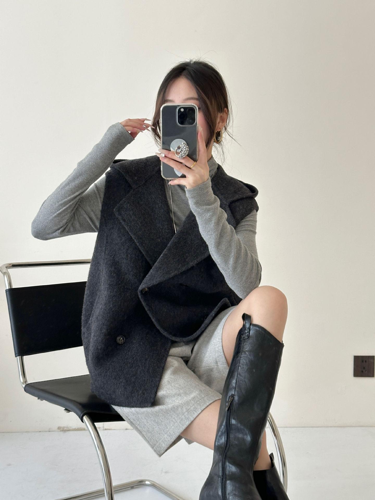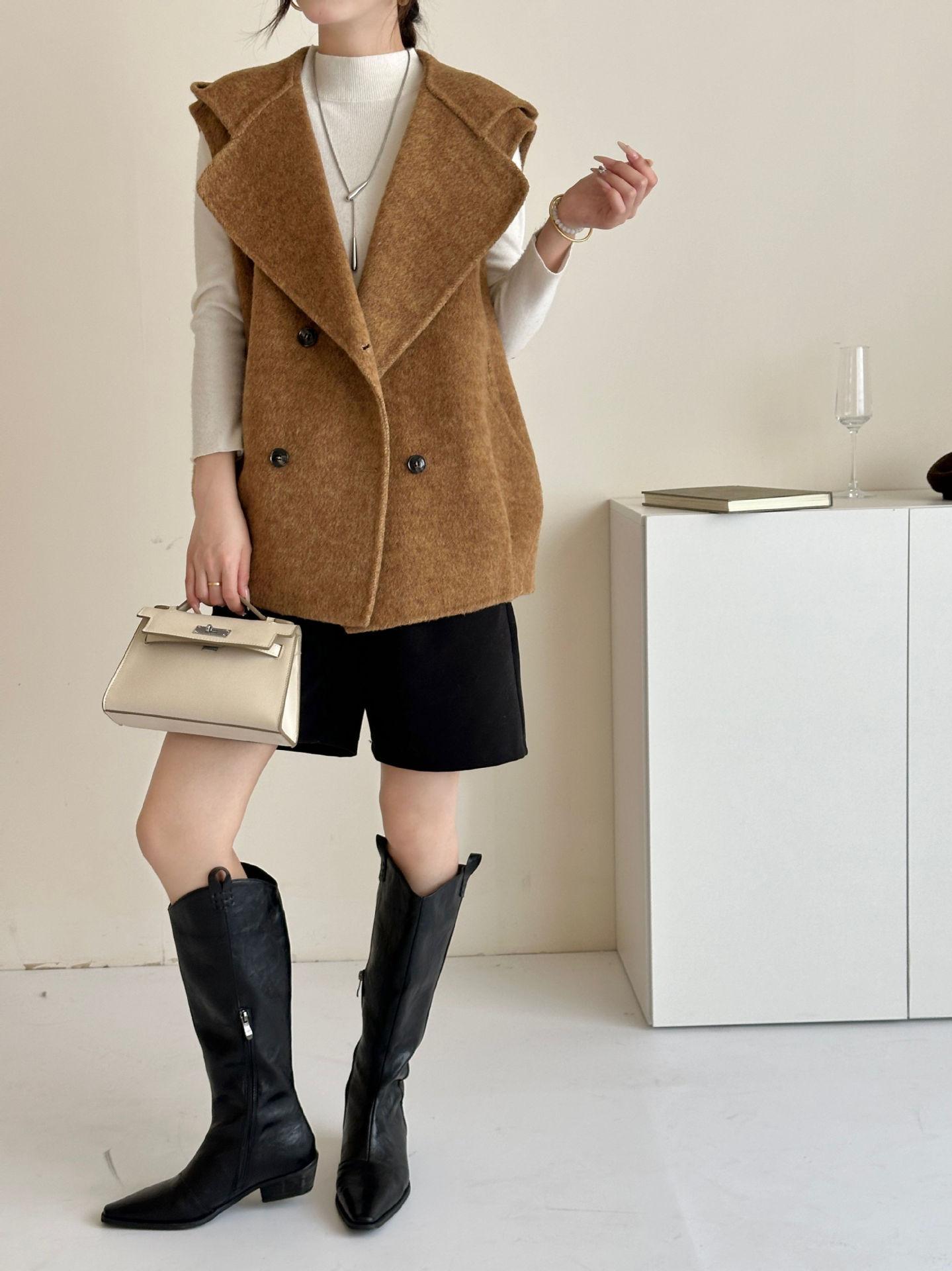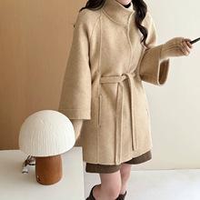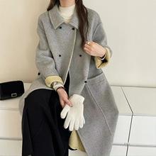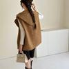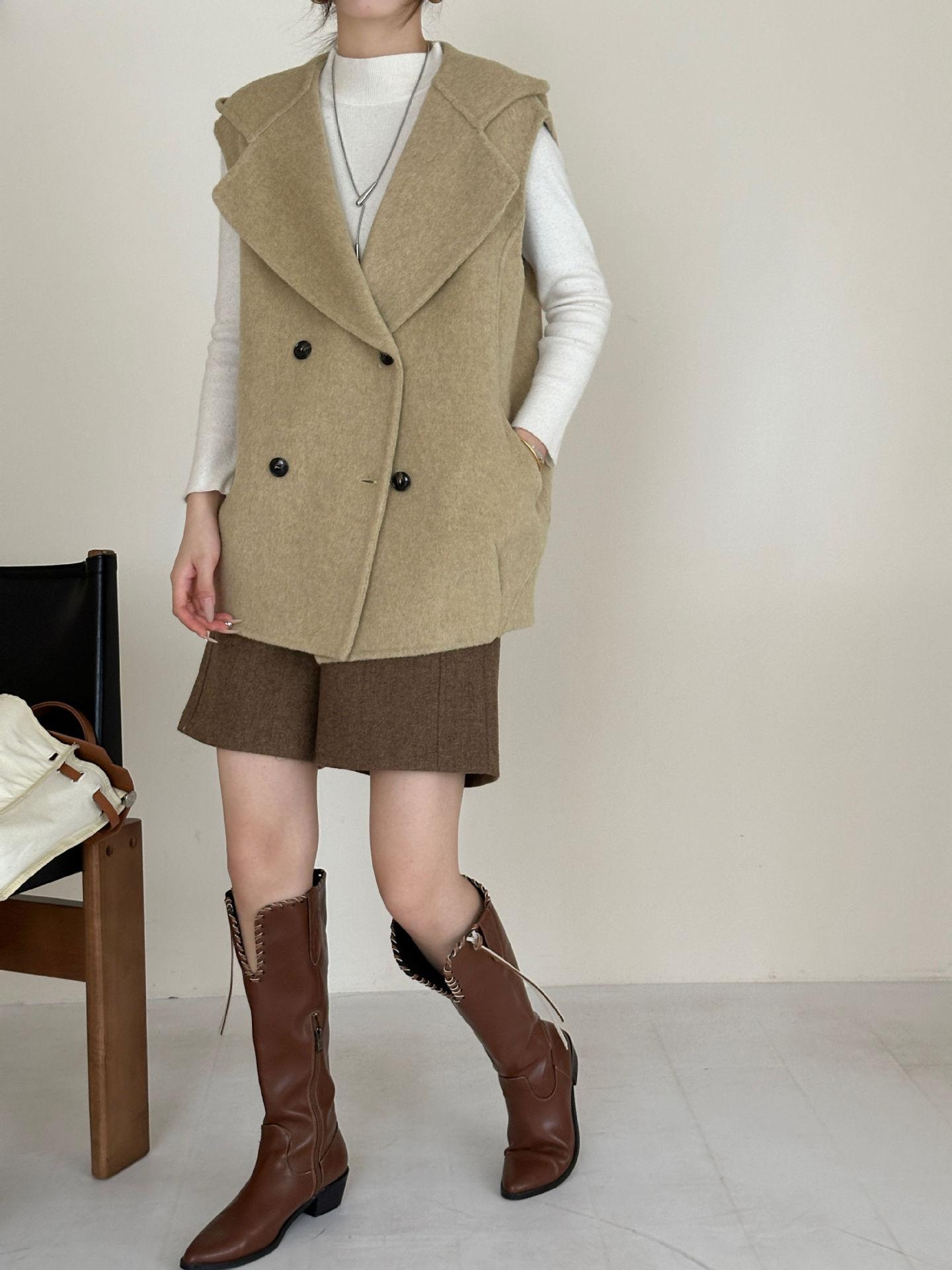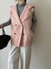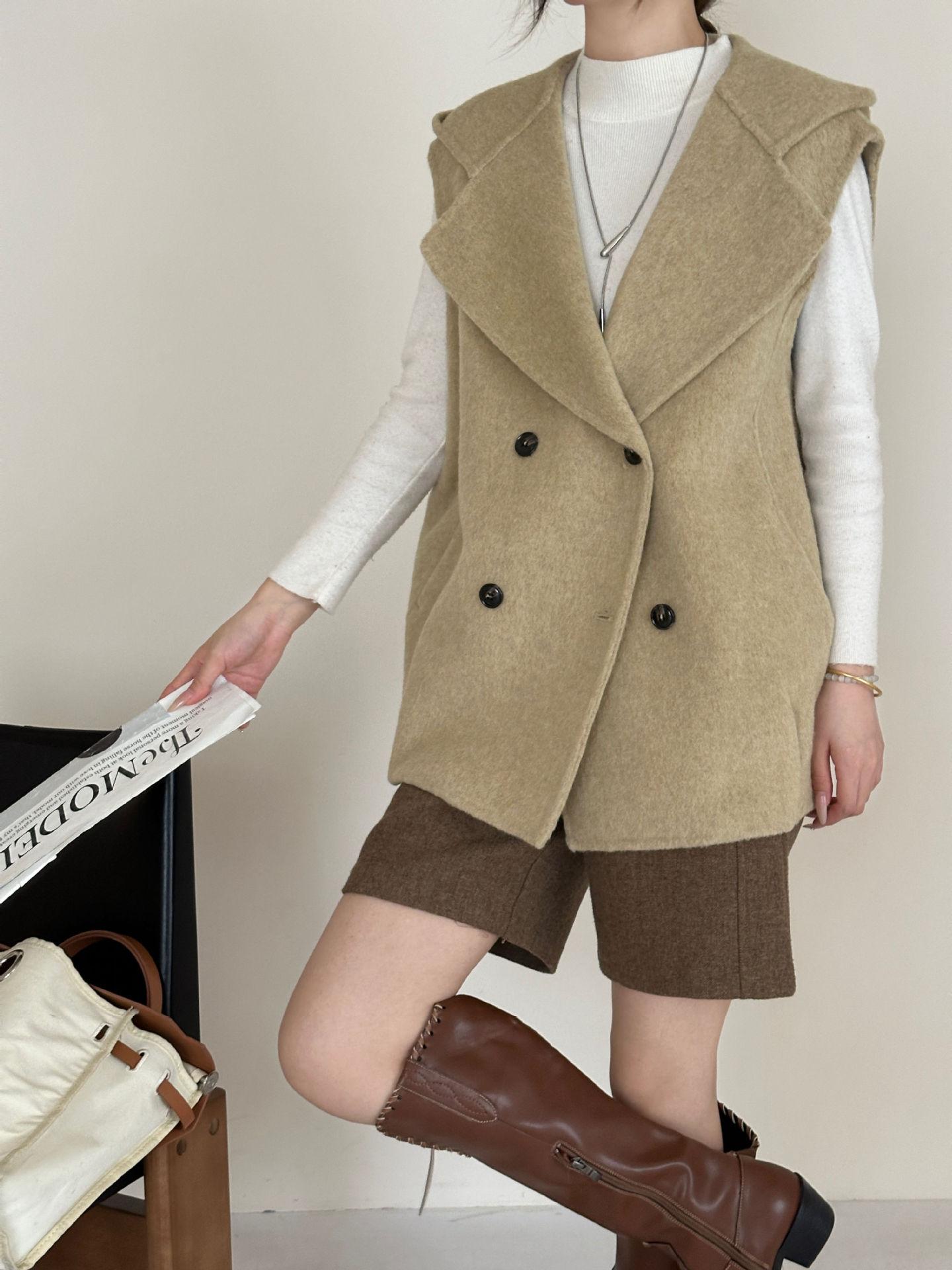 Chaleco de Lana sin Mangas de Largo Medio para Mujer Otoño e Invierno Nuevo Chaleco de Lana para Mujer de Color Sólido con Capucha Doble Abotonadura Nylon de Doble Cara