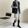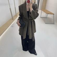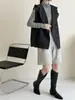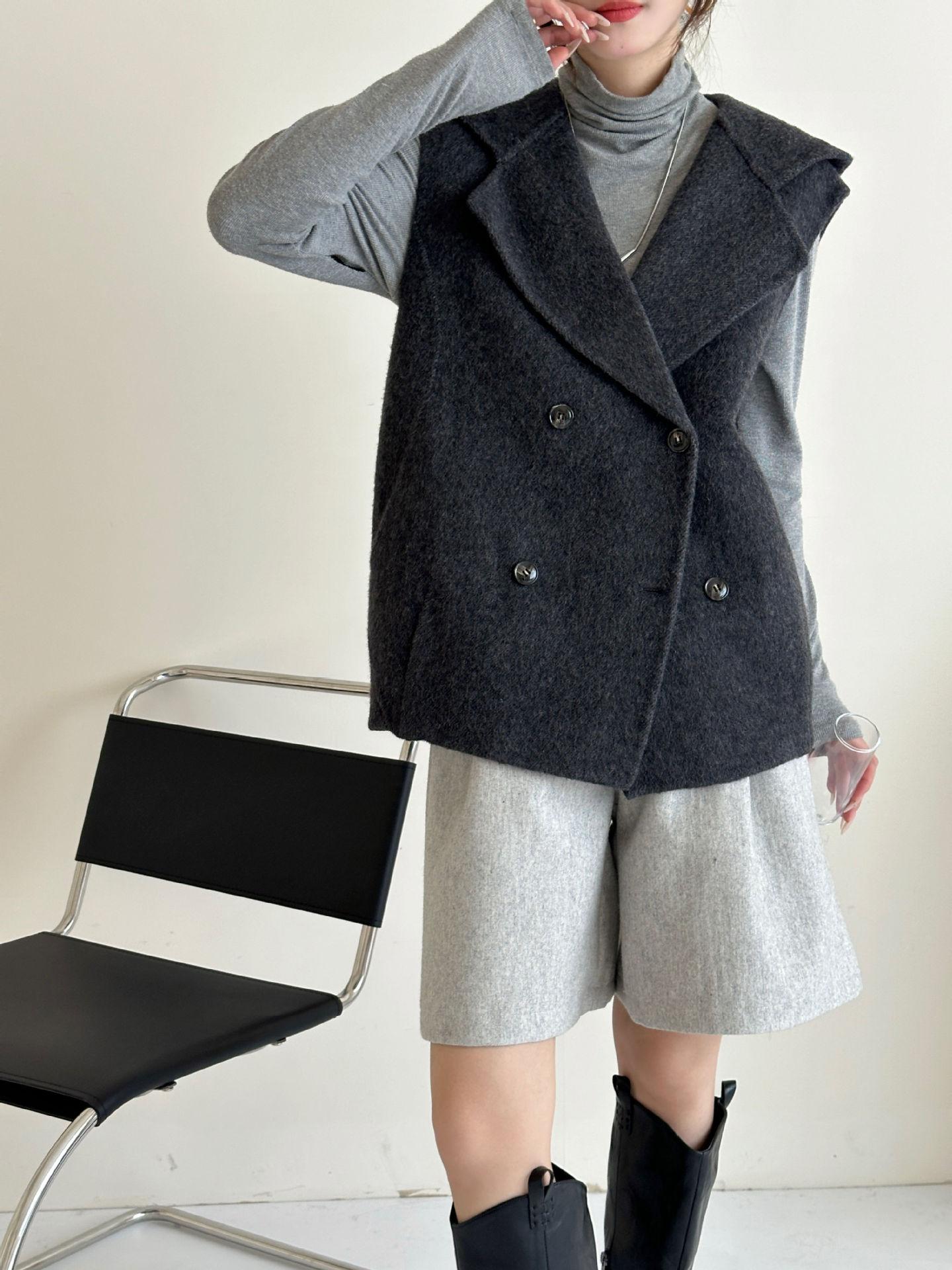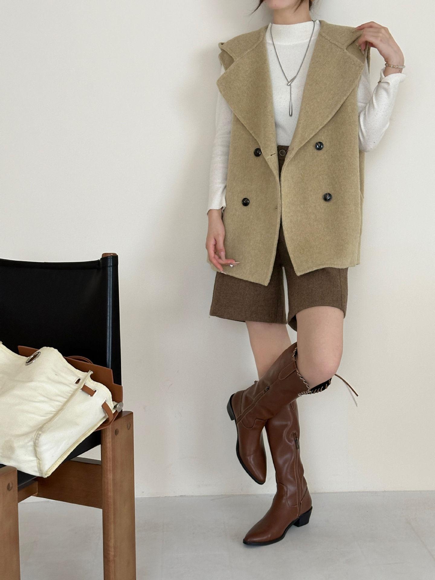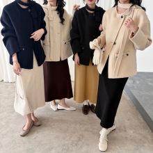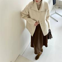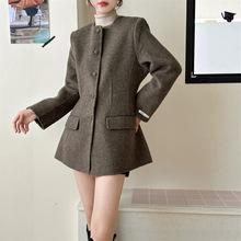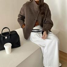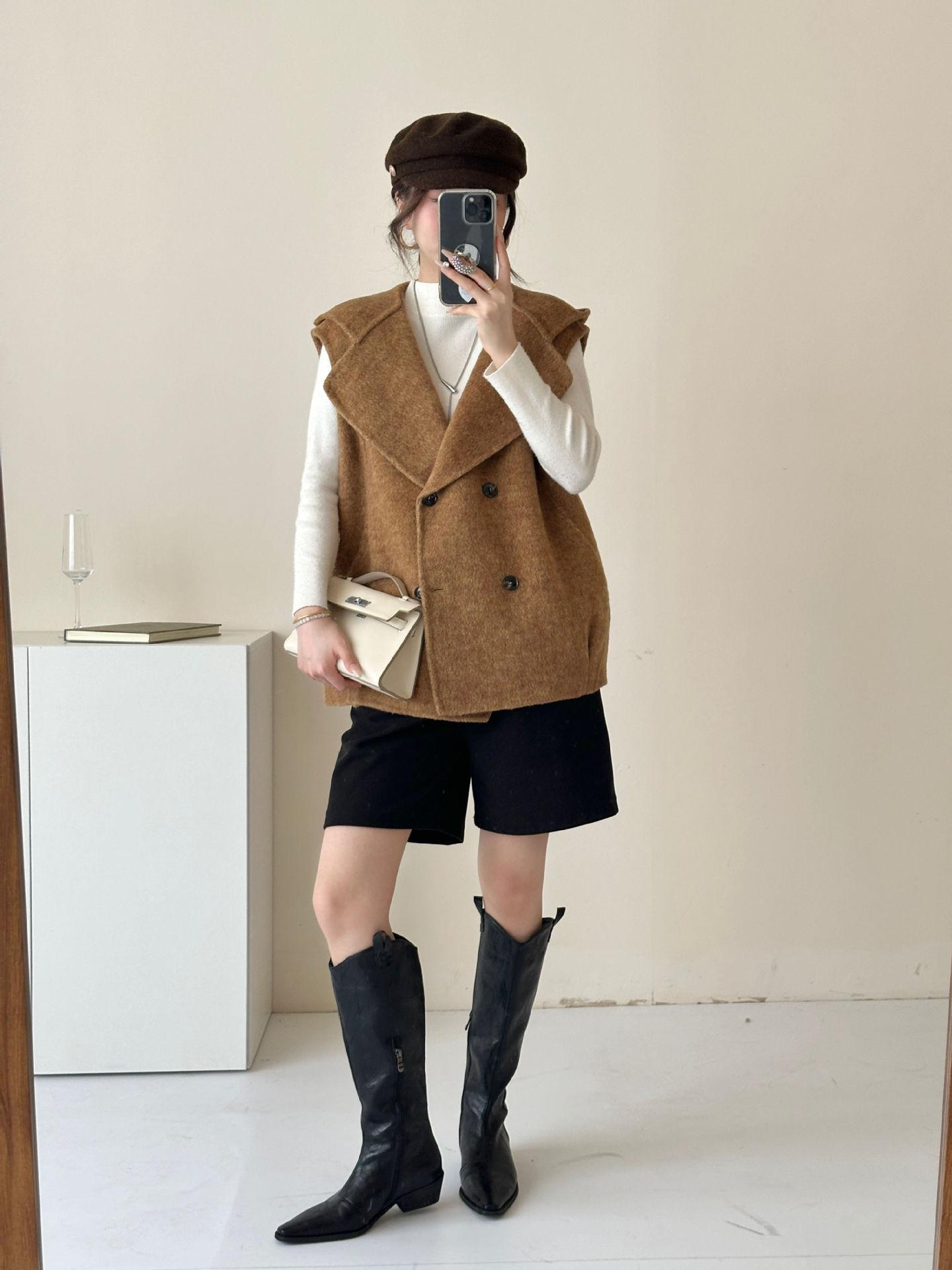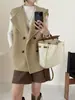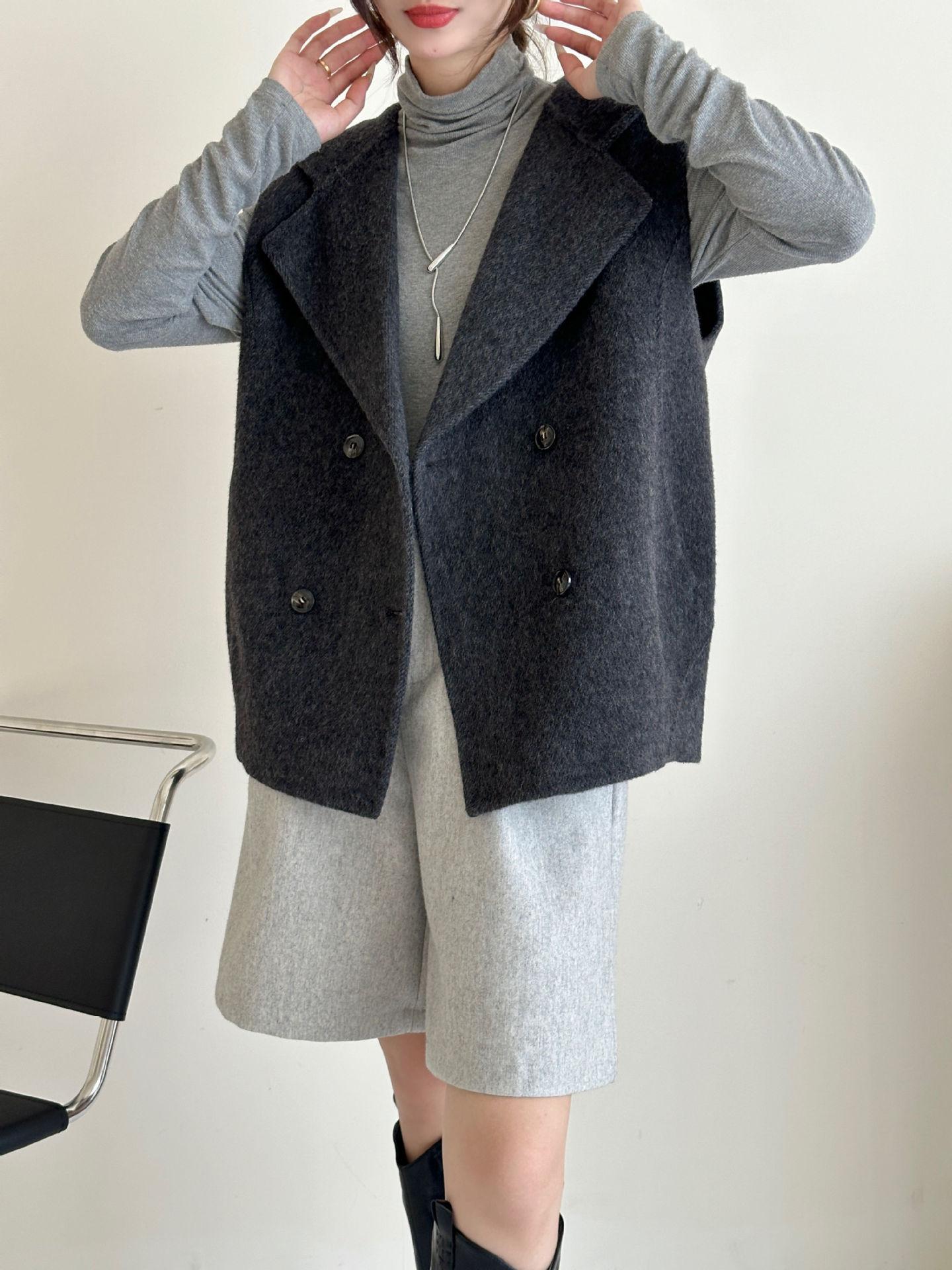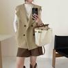 Chaleco de Lana sin Mangas de Largo Medio para Mujer Otoño e Invierno Nuevo Chaleco de Lana para Mujer de Color Sólido con Capucha Doble Abotonadura Nylon de Doble Cara