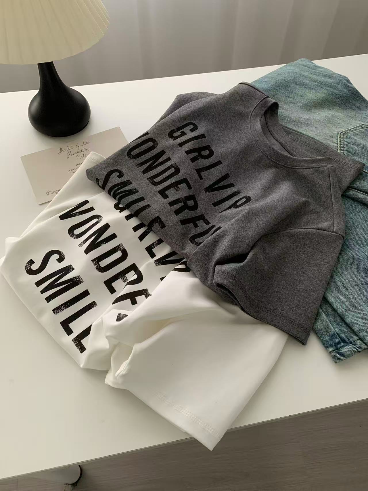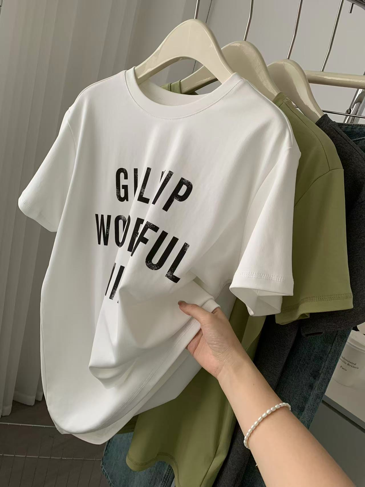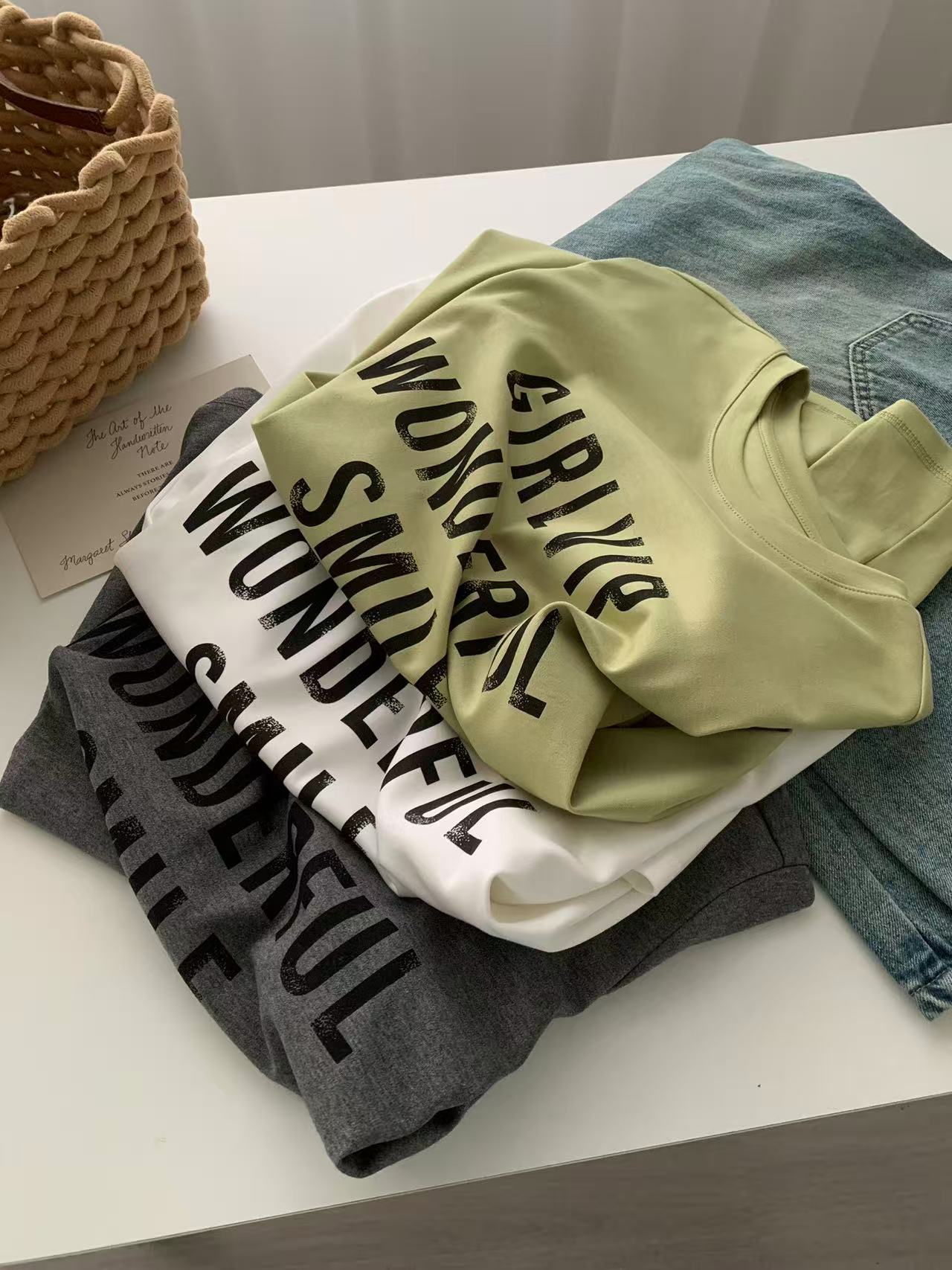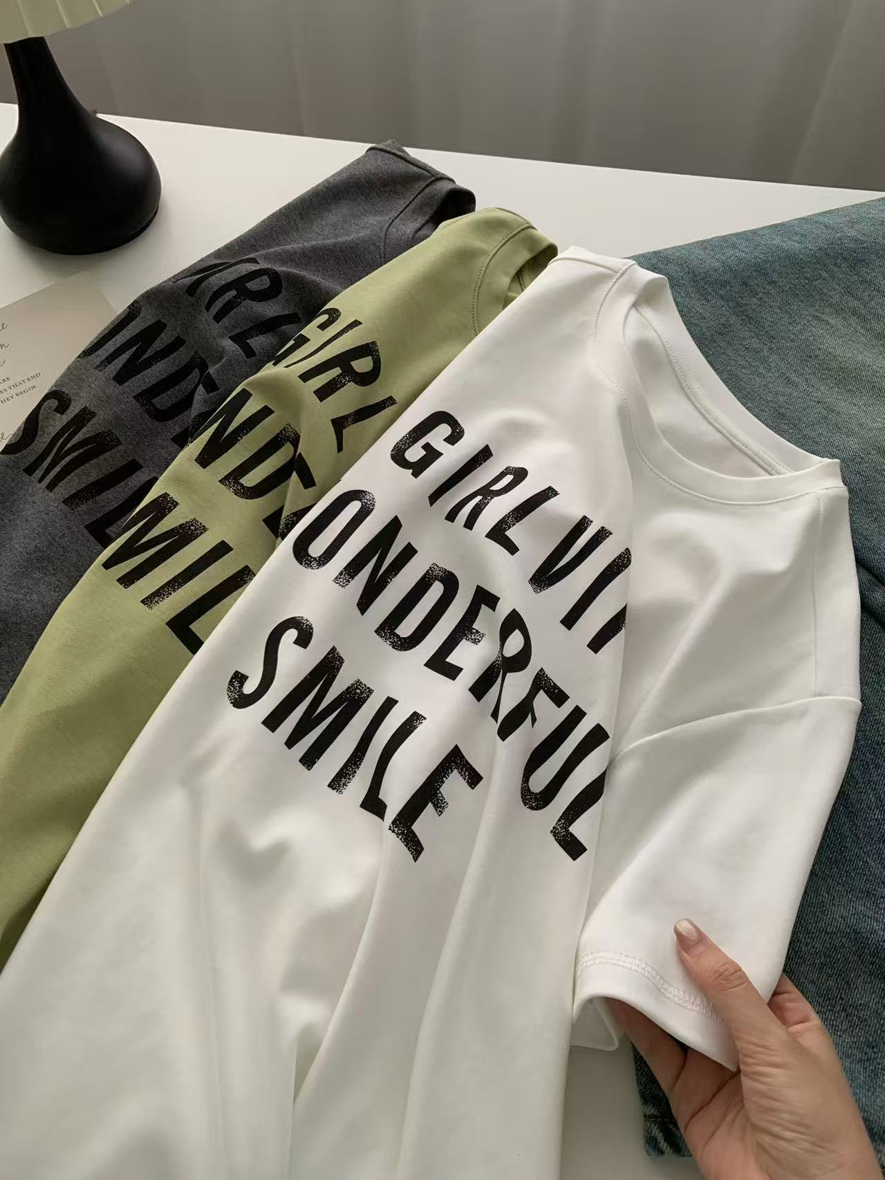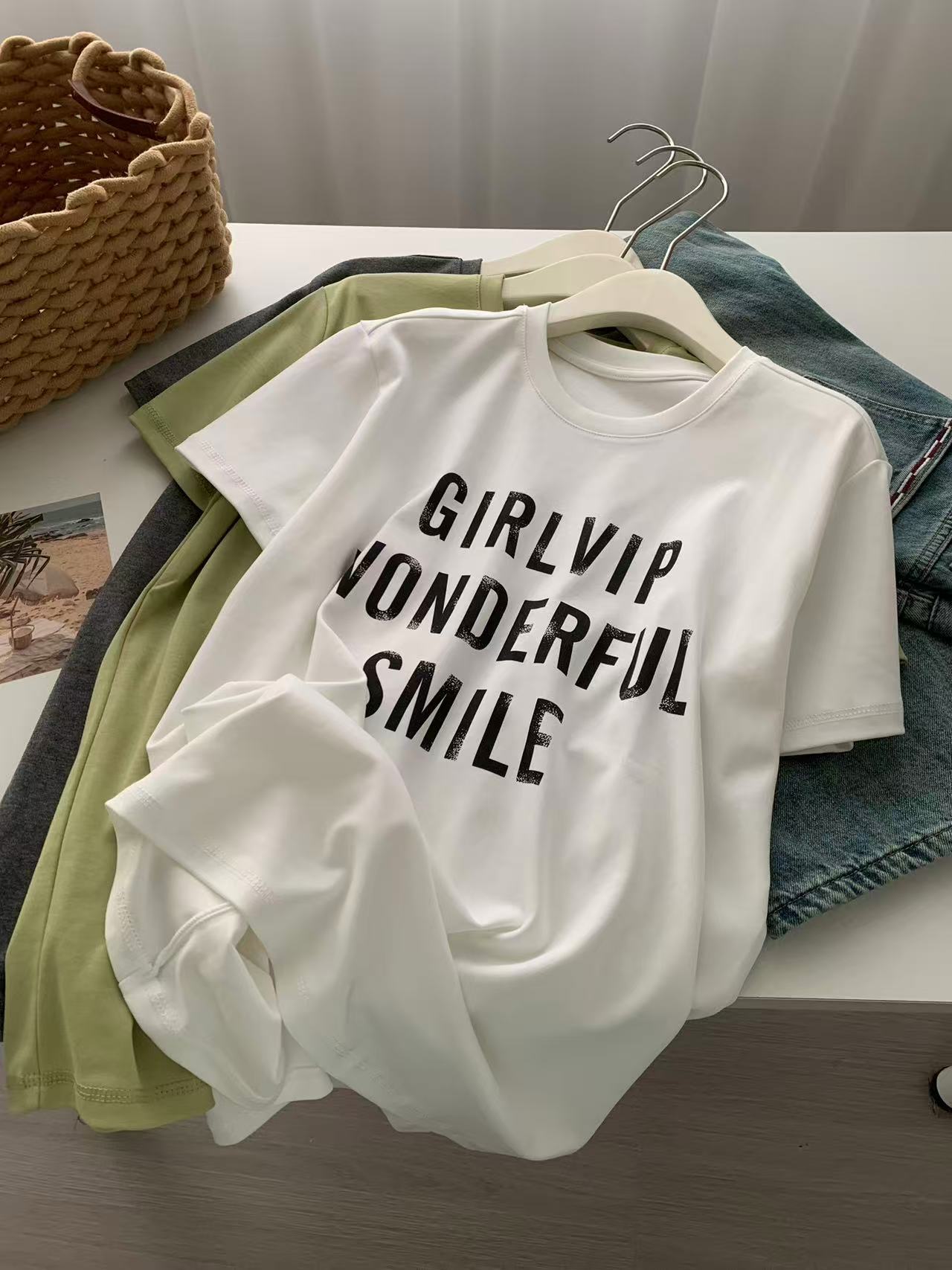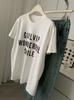 Playera de Manga Corta con Estampado de Letras Distressed Estilo Americano para Mujer, Verano Cuello Redondo, Oversized Suelta Casual Adelgazante Relajada