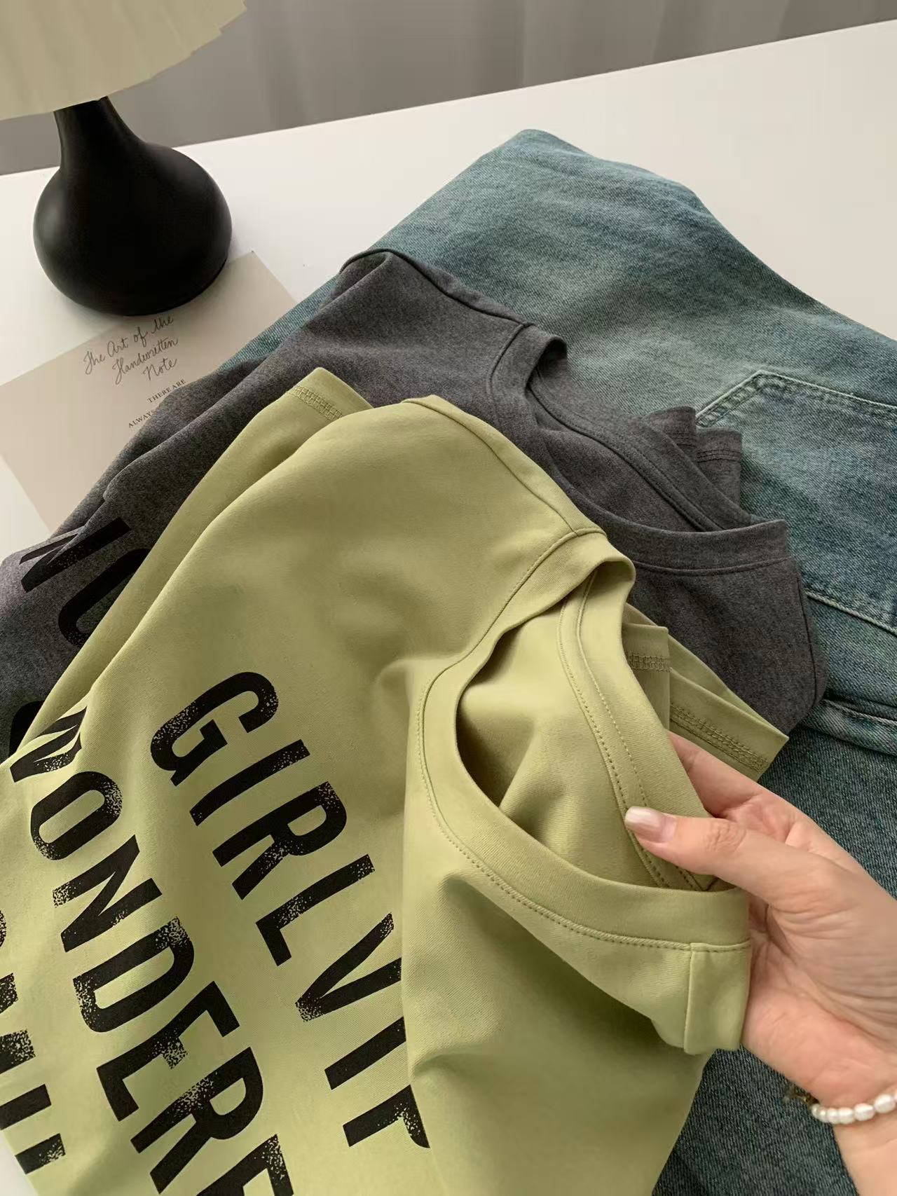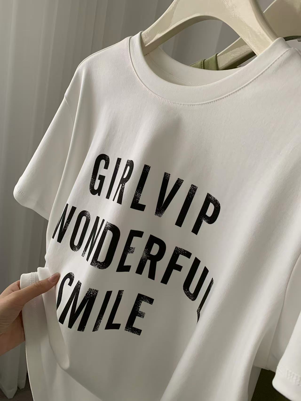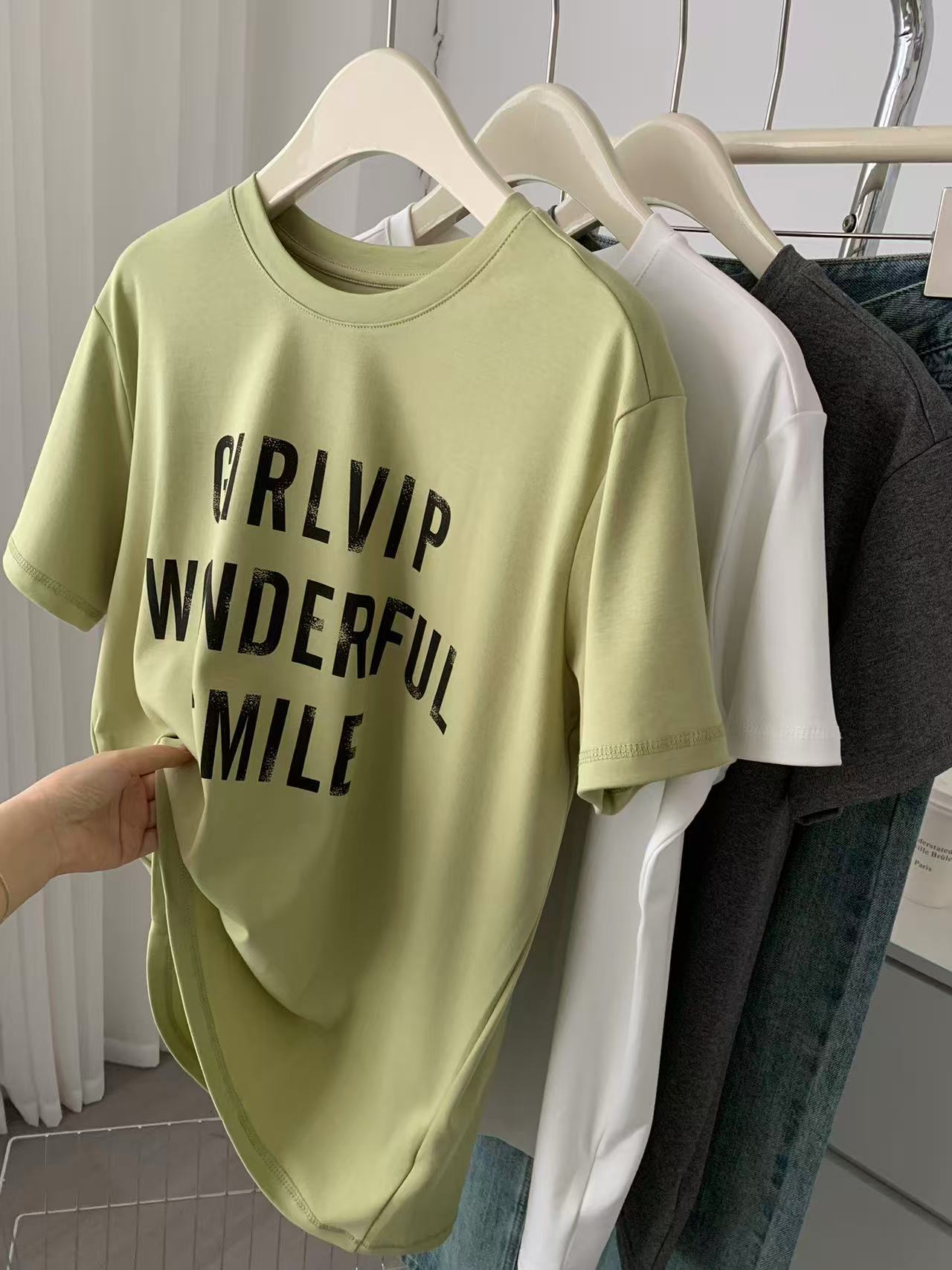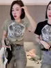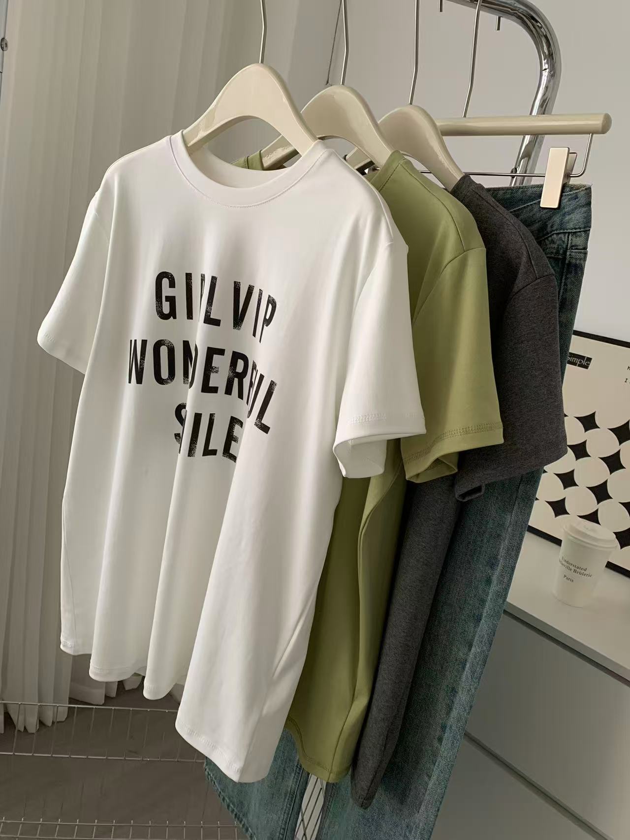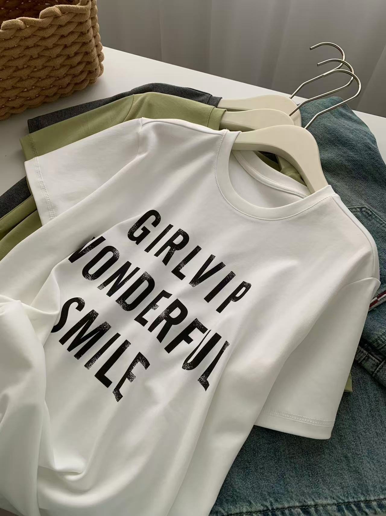 Playera de Manga Corta con Estampado de Letras Distressed Estilo Americano para Mujer, Verano Cuello Redondo, Oversized Suelta Casual Adelgazante Relajada