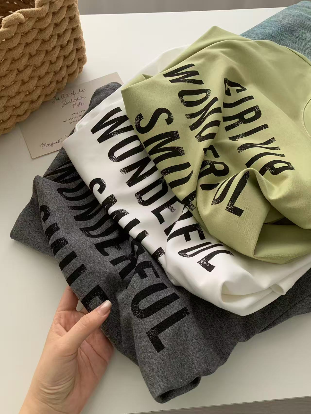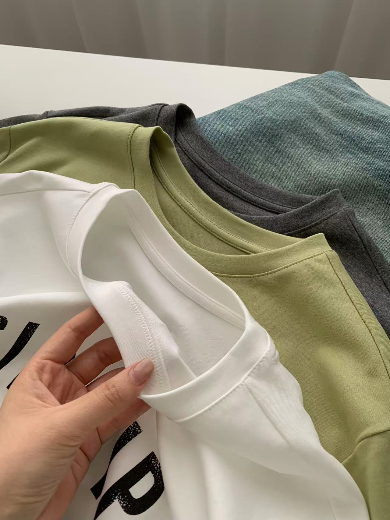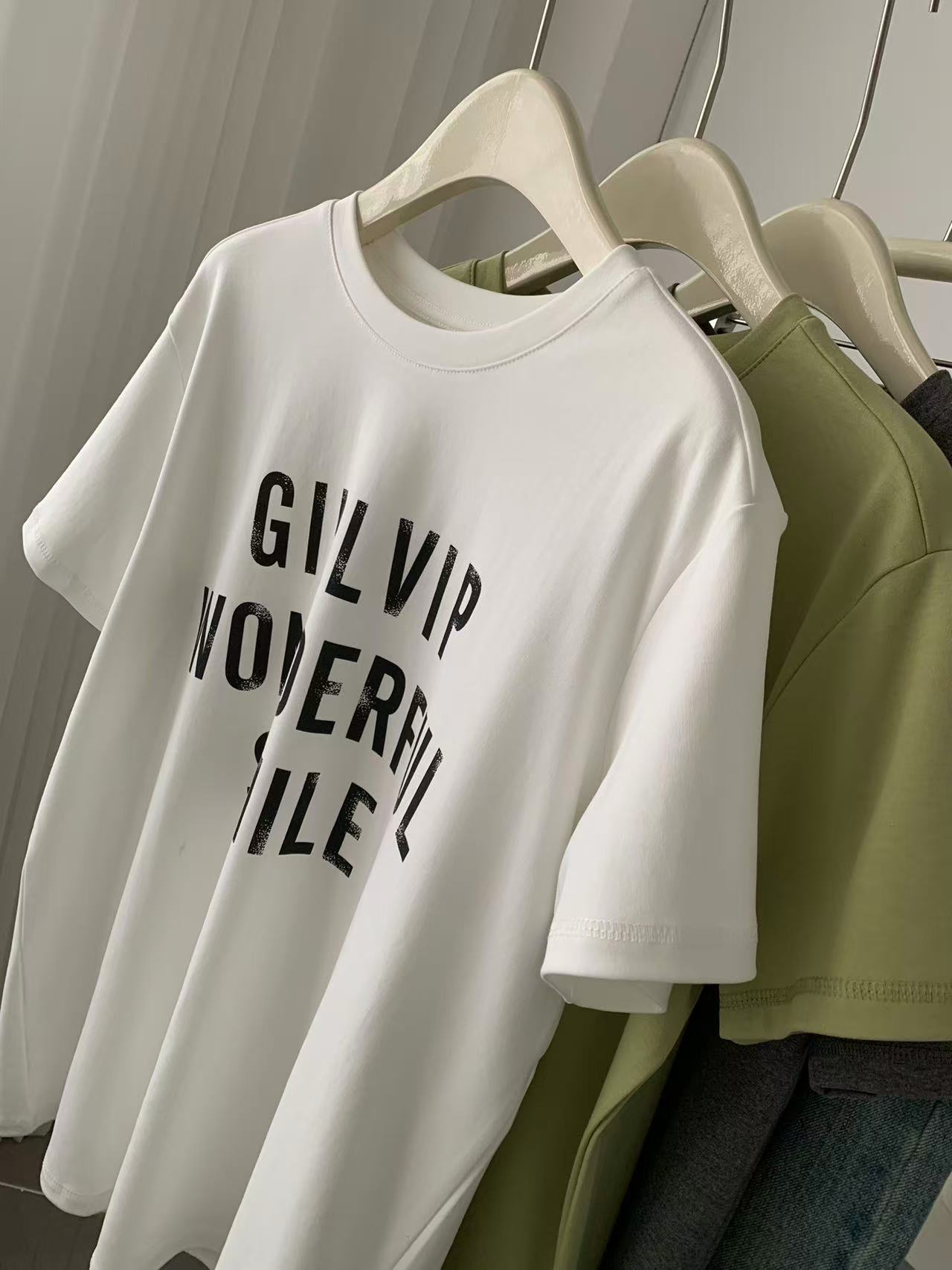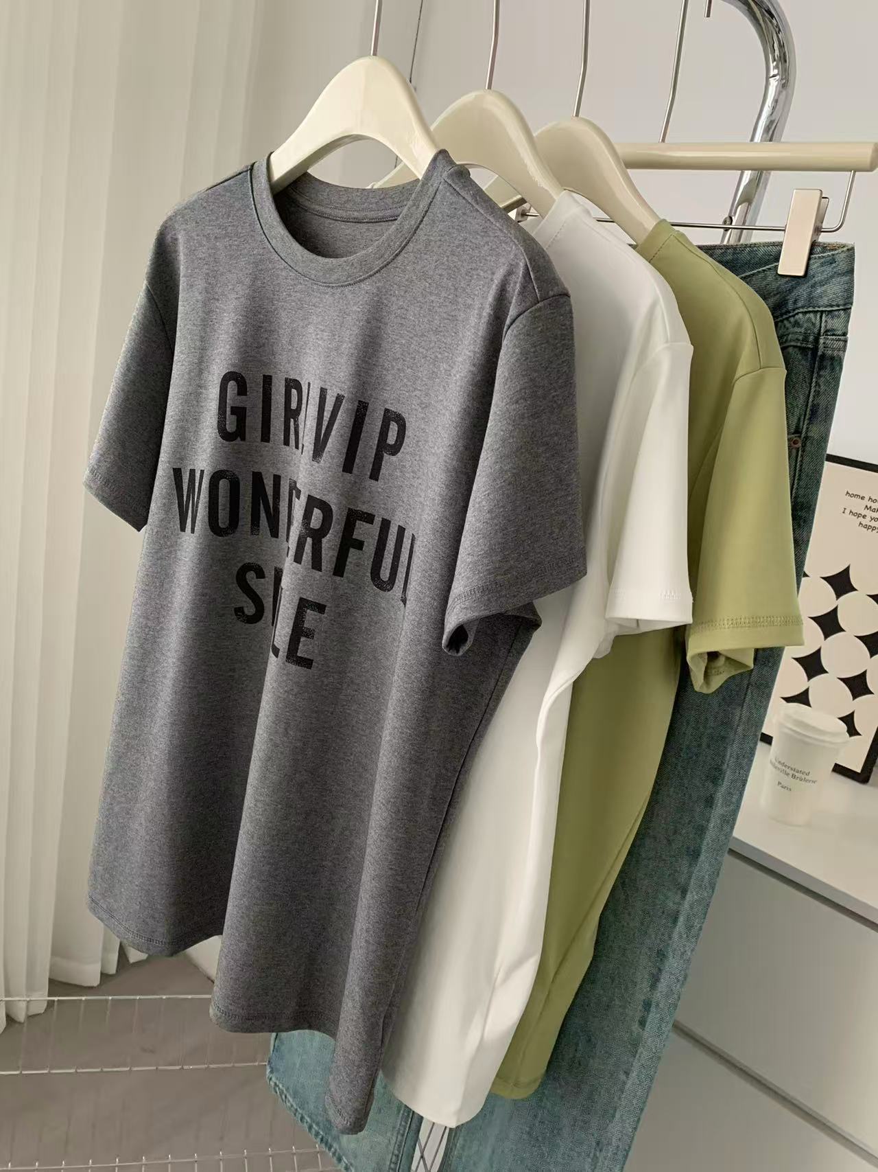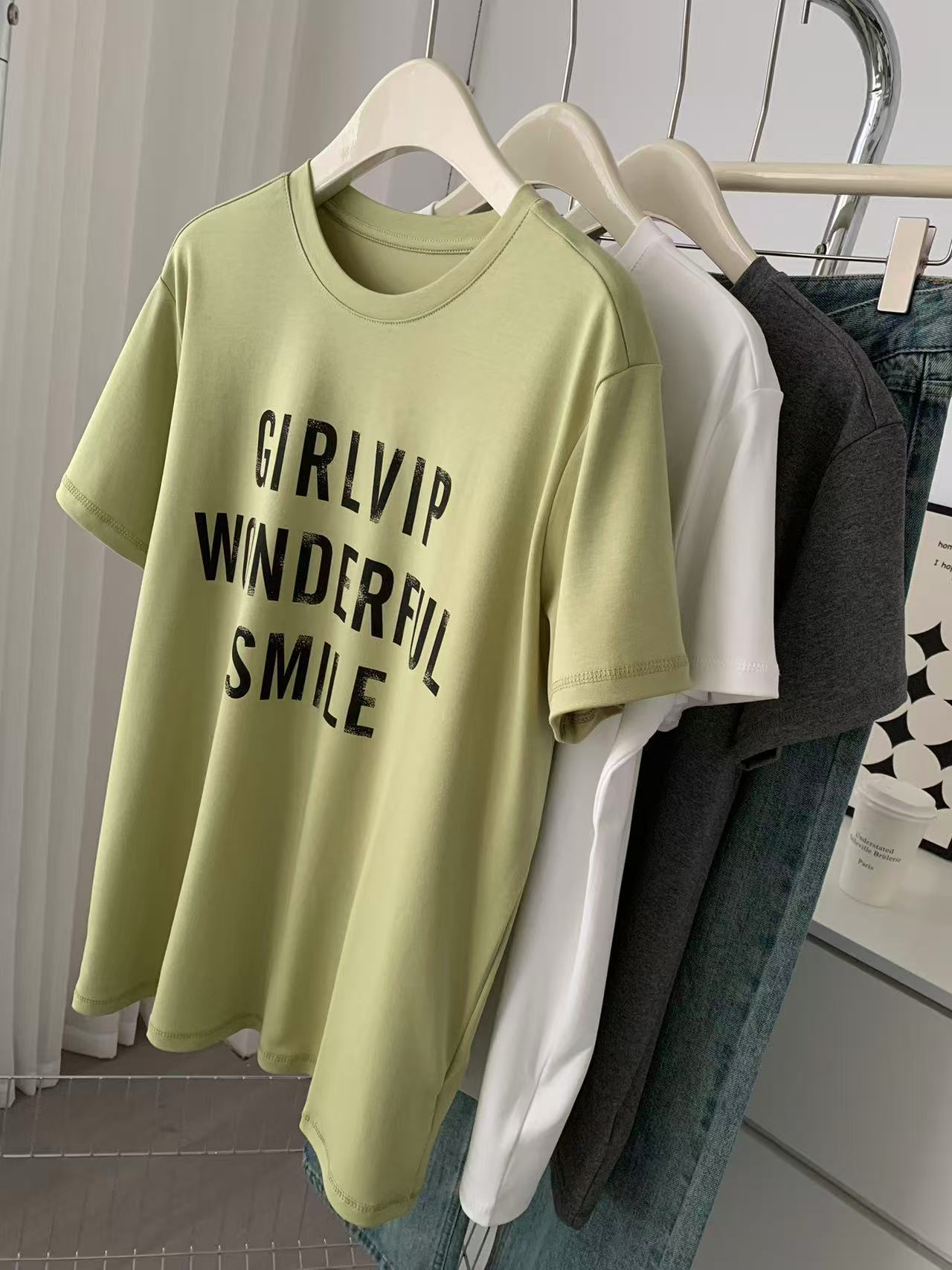 Playera de Manga Corta con Estampado de Letras Distressed Estilo Americano para Mujer, Verano Cuello Redondo, Oversized Suelta Casual Adelgazante Relajada