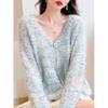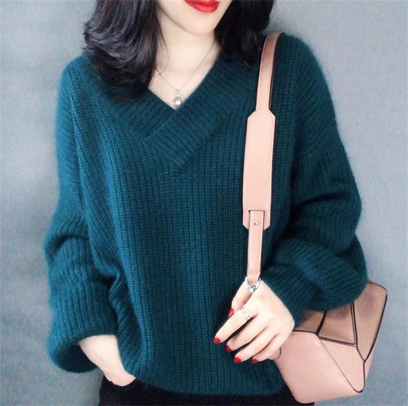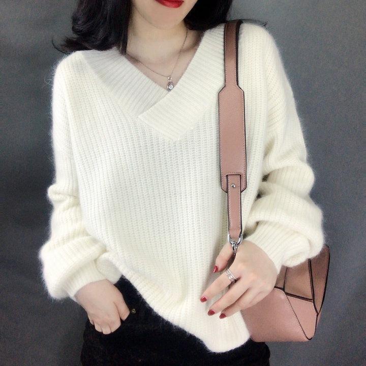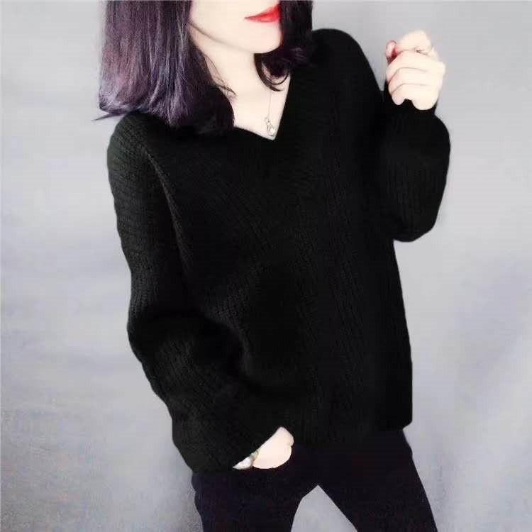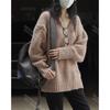 Suéter Grueso de Punto Suave de Estilo Dulce con Cuello en V para Mujer Otoño e Invierno Top Adelgazante