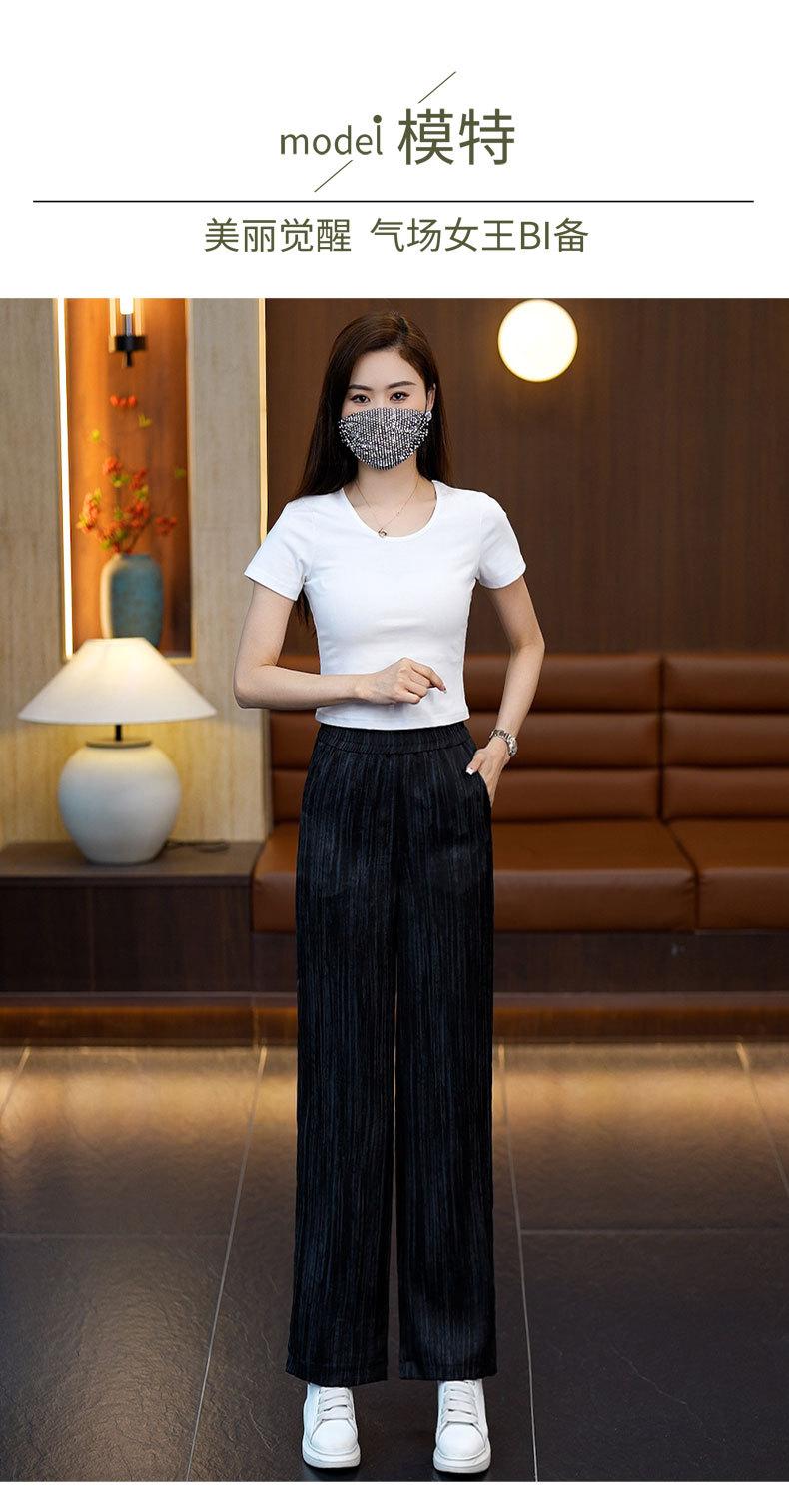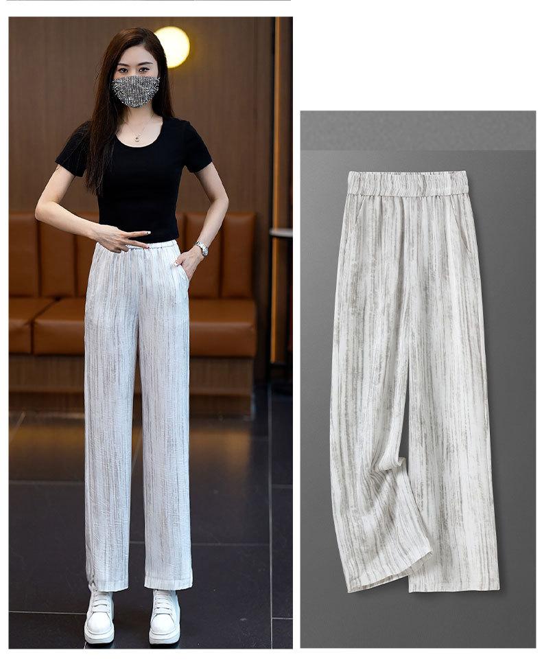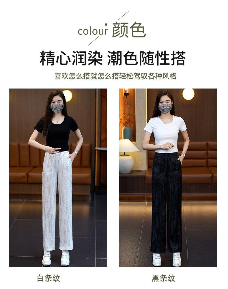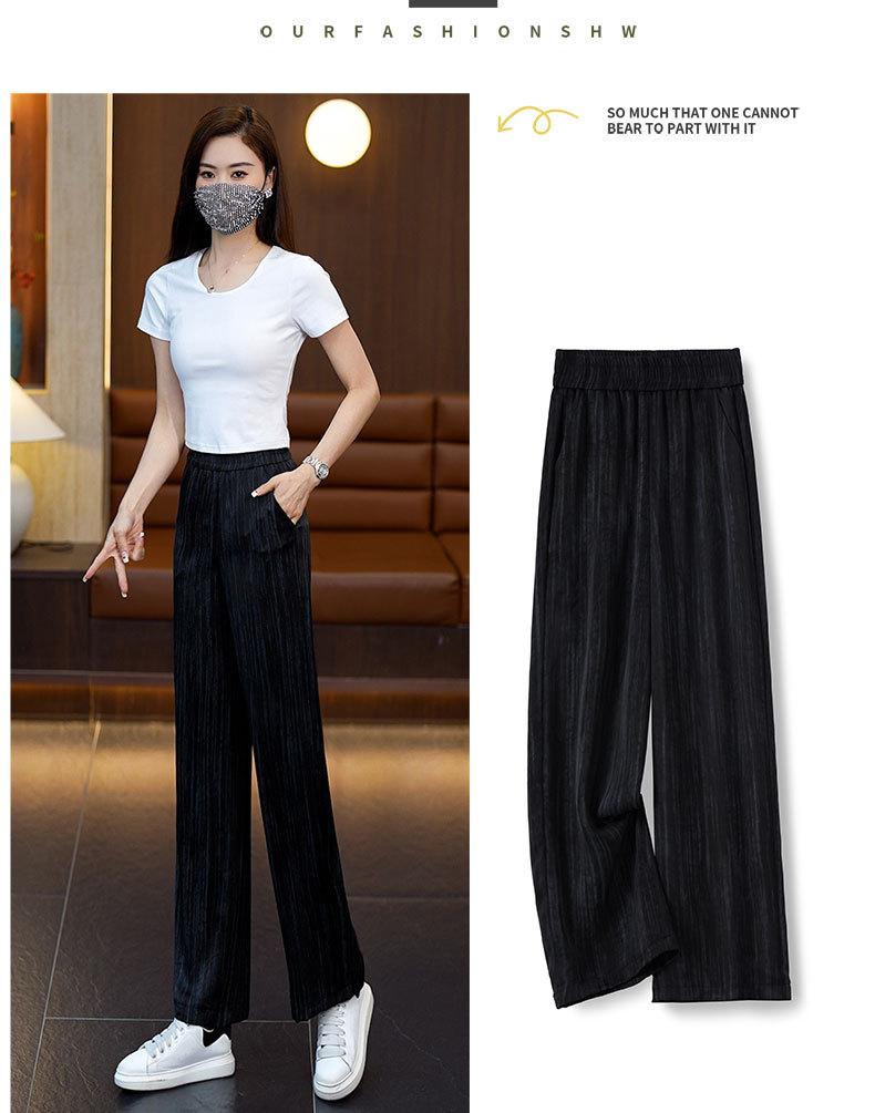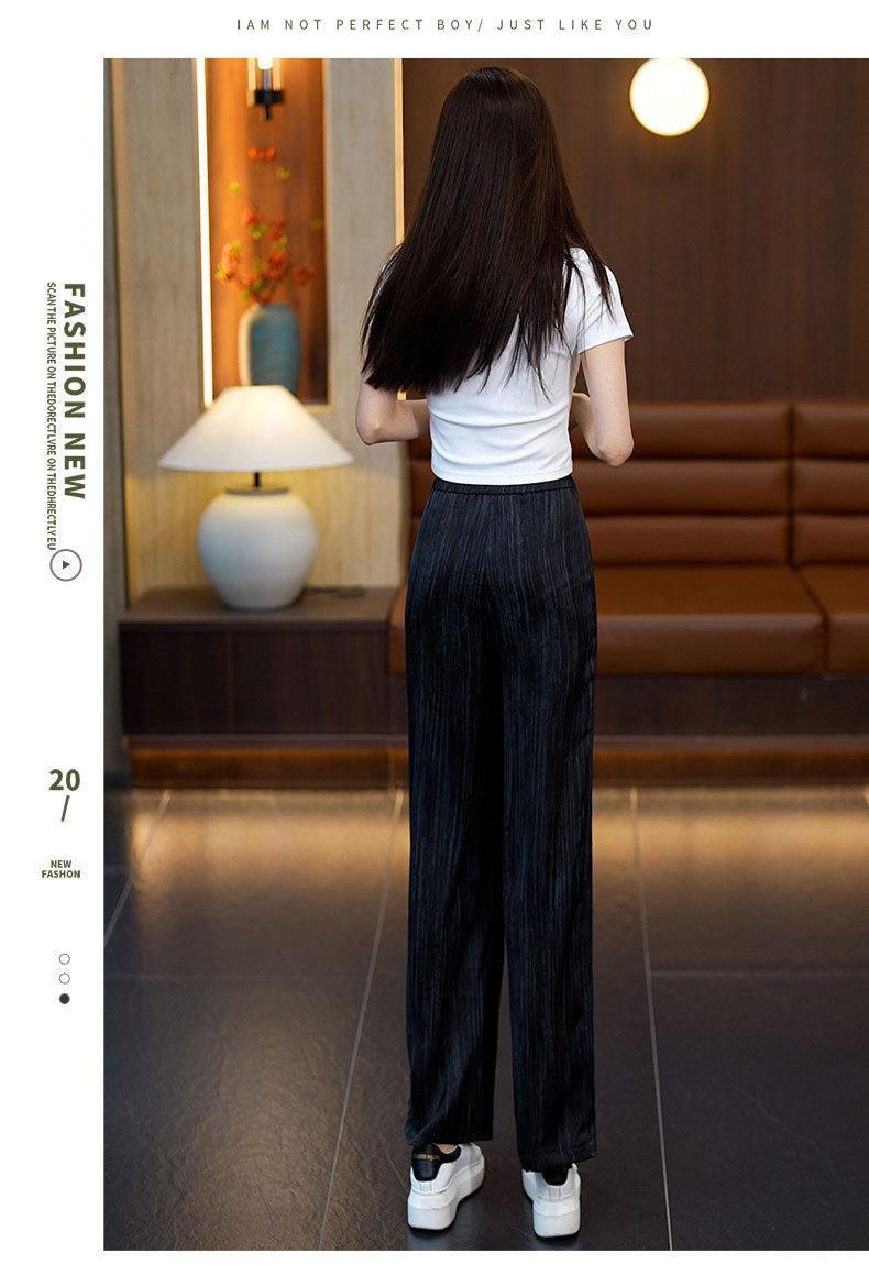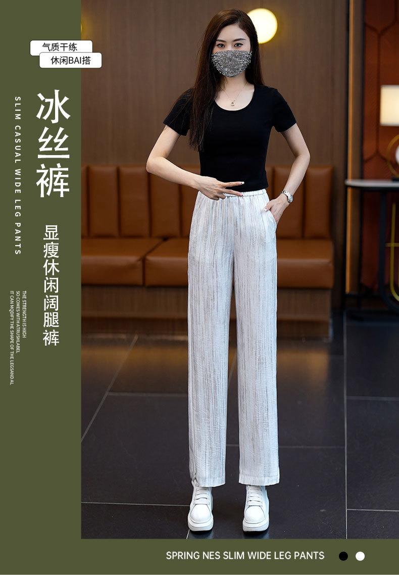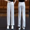 Pantalones de Pierna Ancha de Seda de Hielo Pantalones Casuales para Mujer Verano Nuevo Cintura Alta Frescos Sueltos Drapeados Adelgazantes Finos Satén Pantalones Recortados