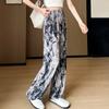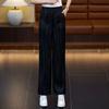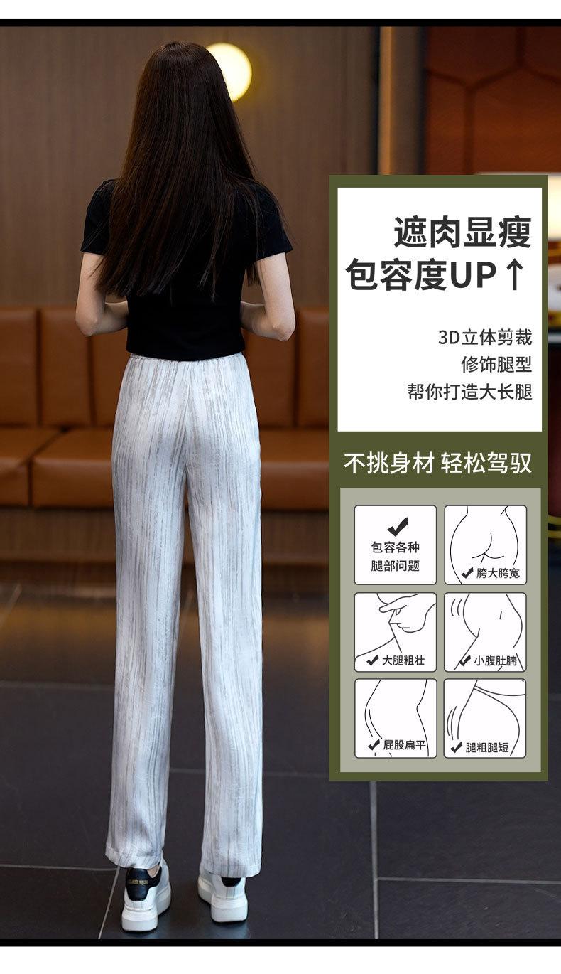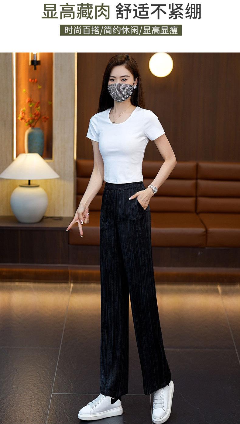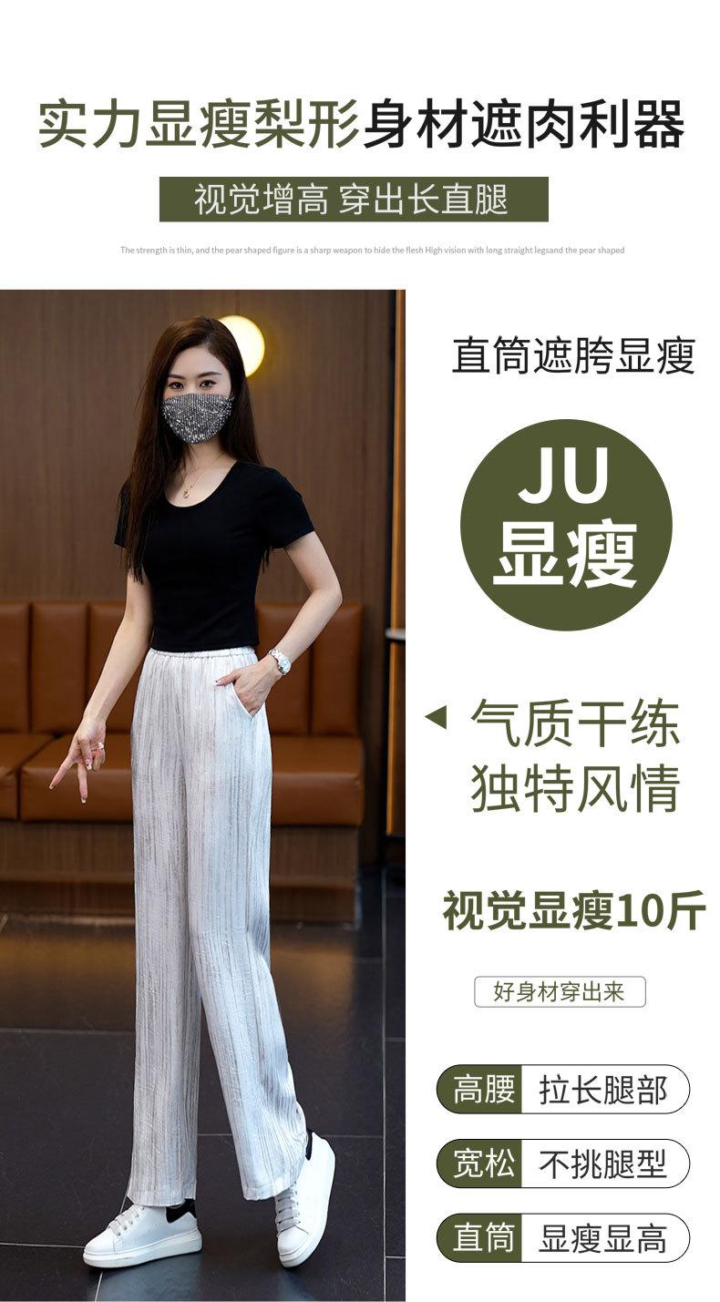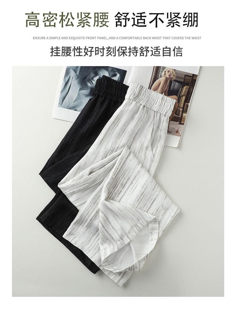Pantalones de Pierna Ancha de Seda de Hielo Pantalones Casuales para Mujer Verano Nuevo Cintura Alta Frescos Sueltos Drapeados Adelgazantes Finos Satén Pantalones Recortados