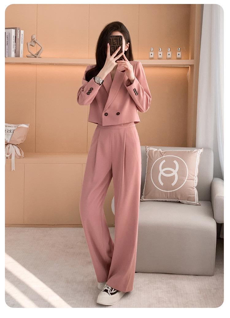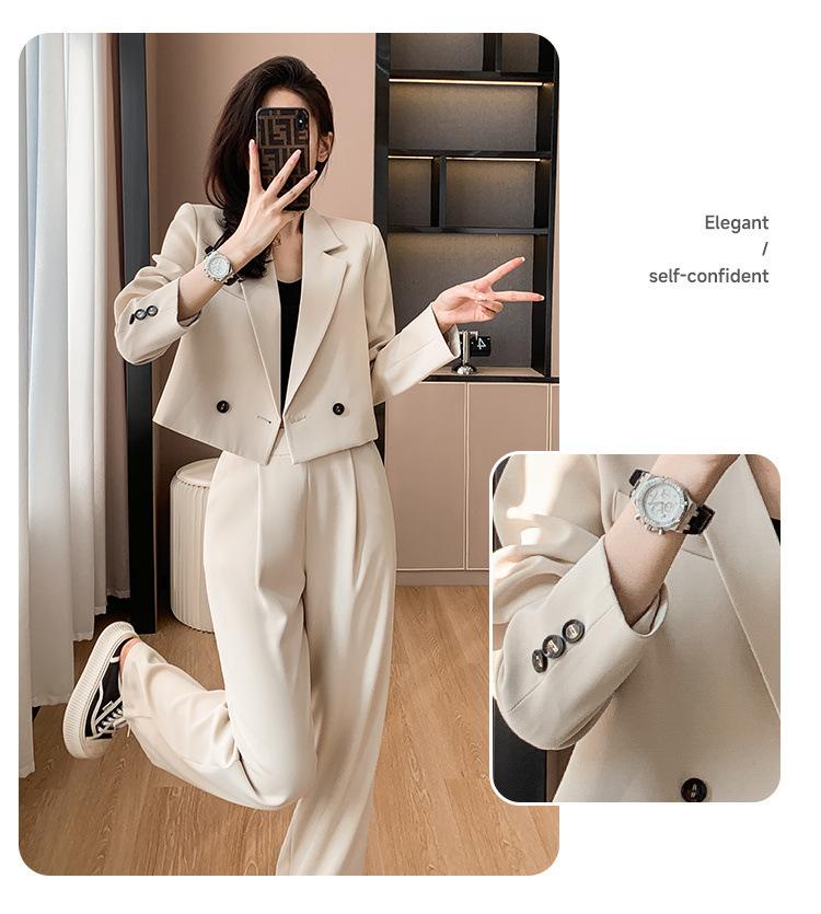 Conjunto de Blazer de Dos Piezas para Mujer de Moda Otoñal con Pantalones de Pierna Ancha para un Look Casual y a la Moda