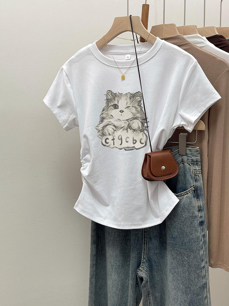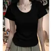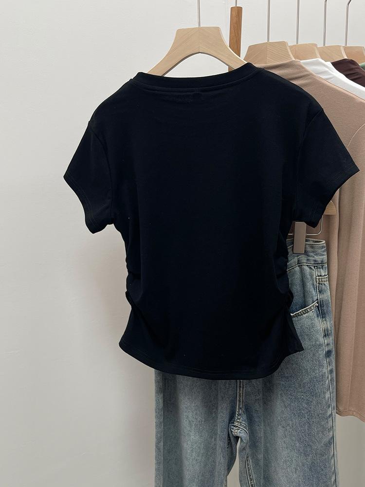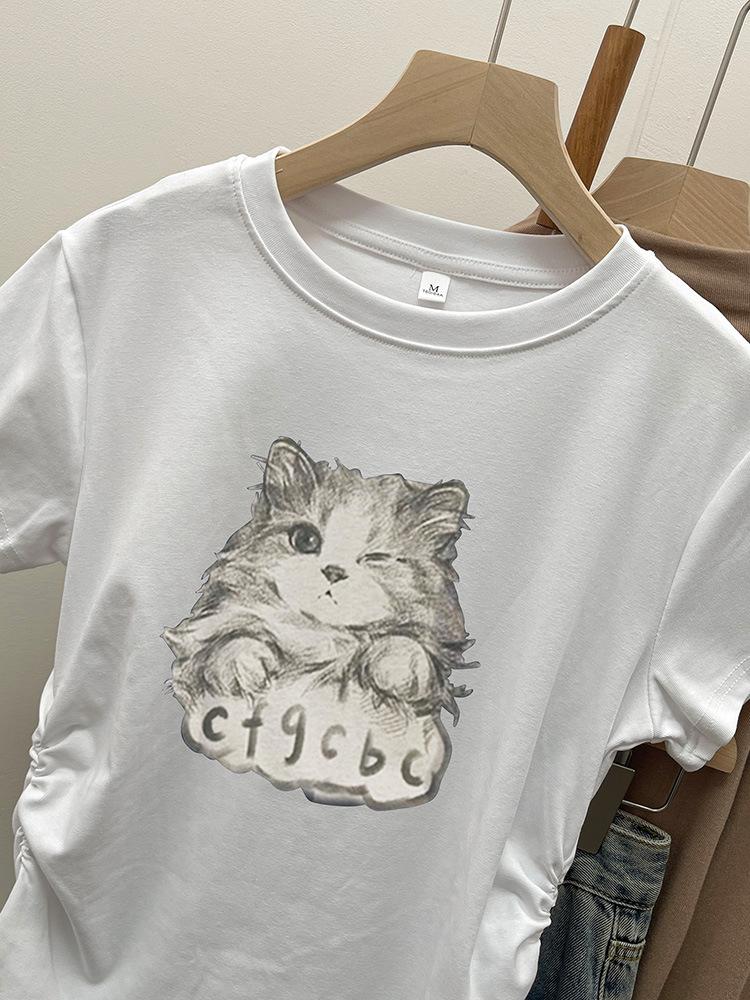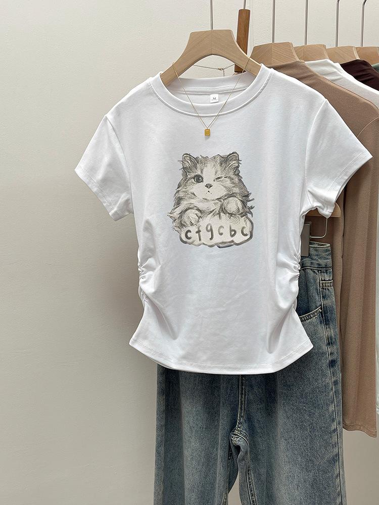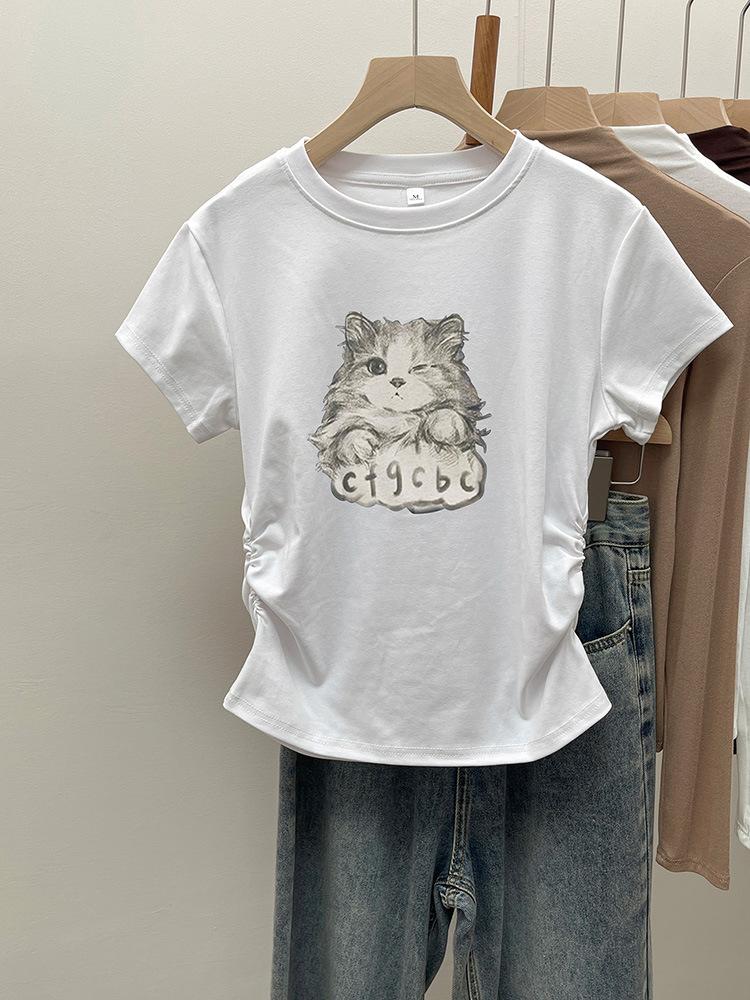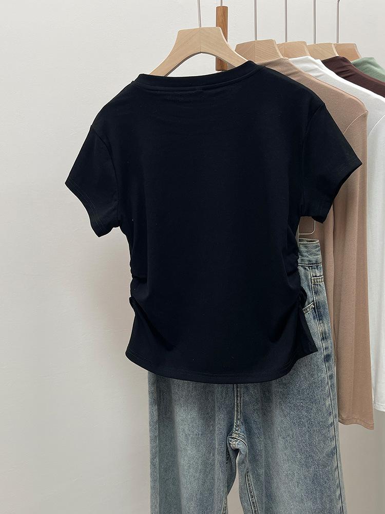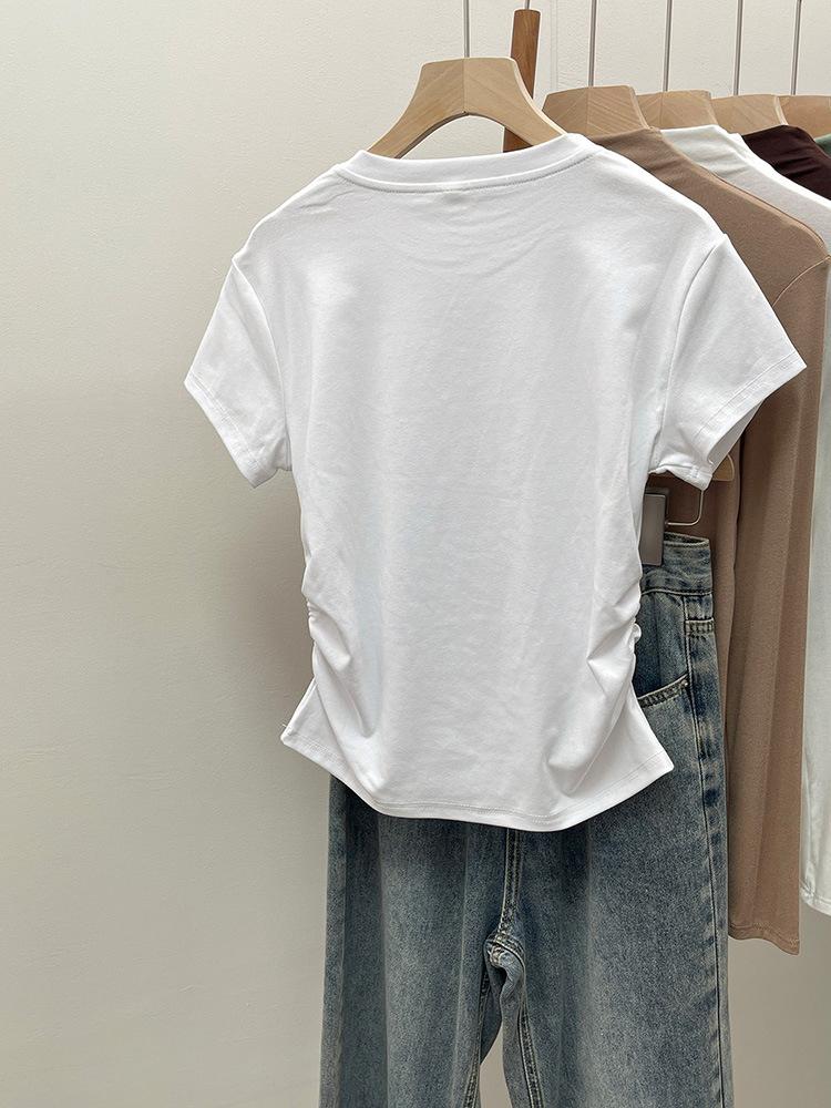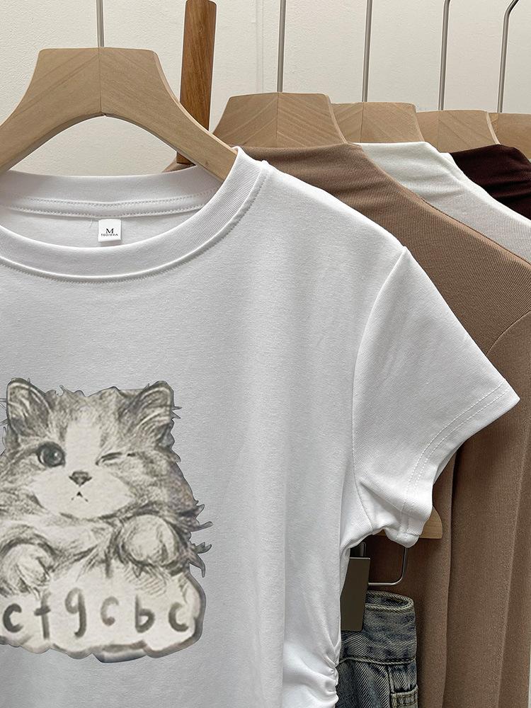Playera de Algodón Puro Tie-Dye de Hombro Derecho con Manga Corta para Mujer Verano 2025 Nuevo Diseño de Estilo Caliente Talla Grande Slim Top Corto