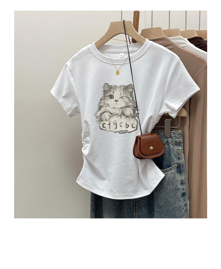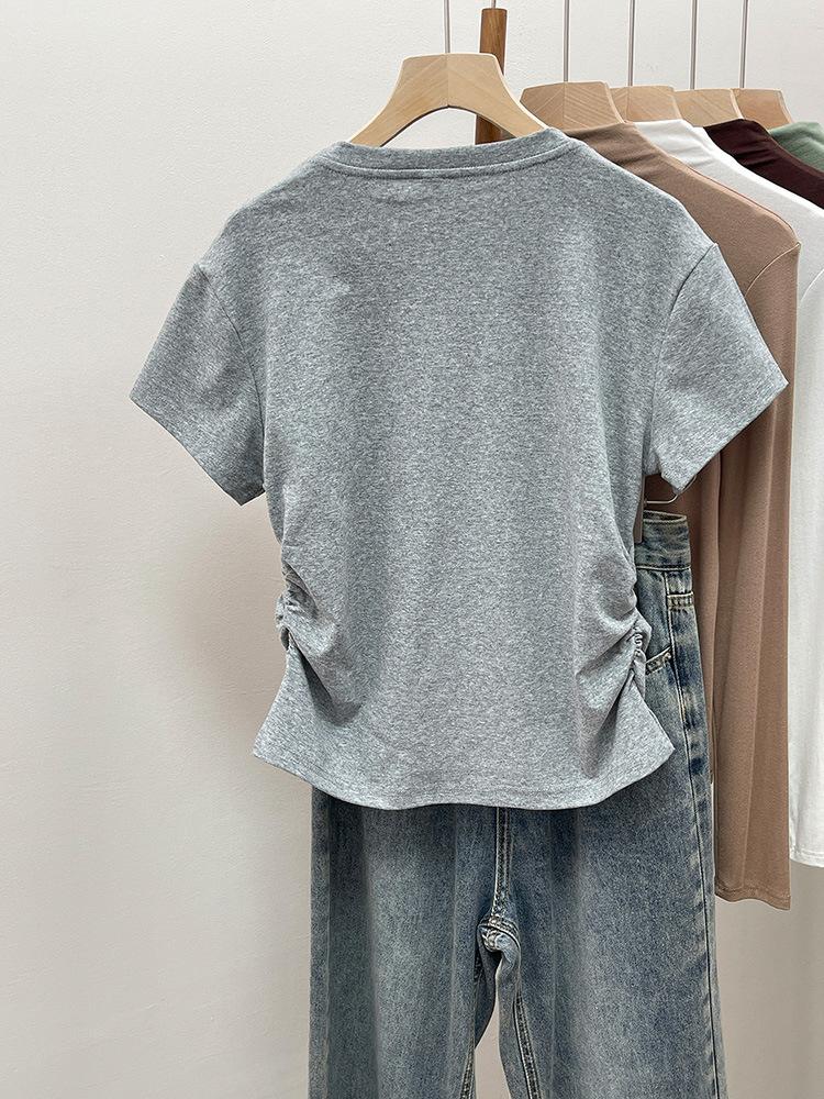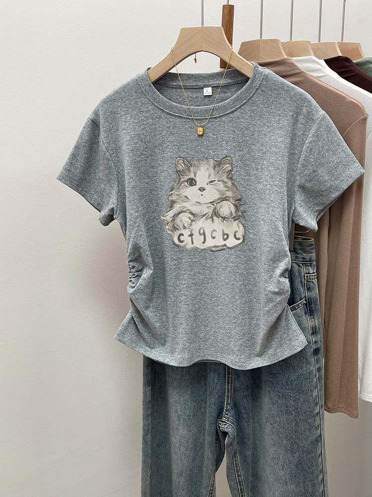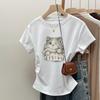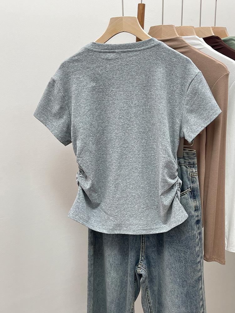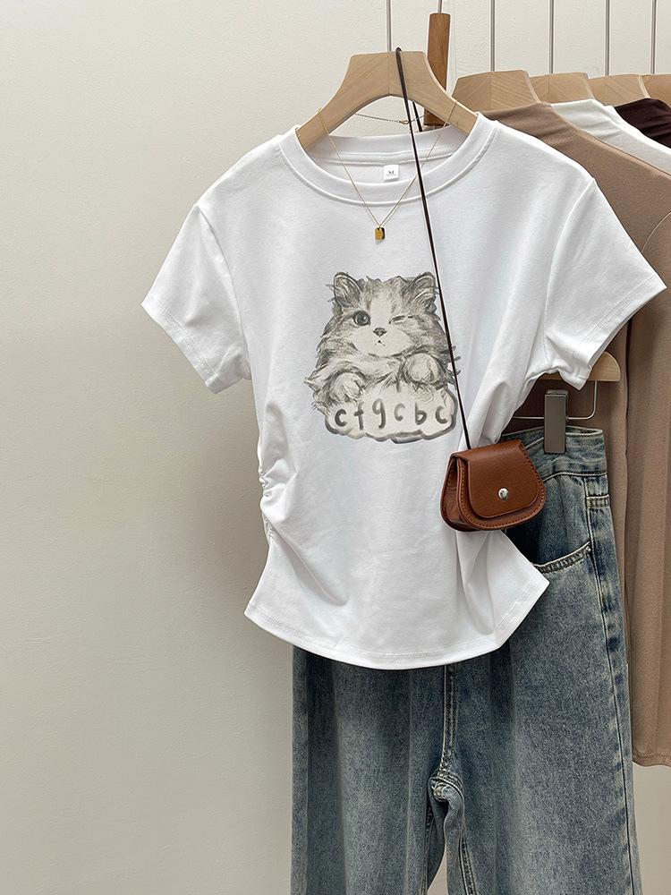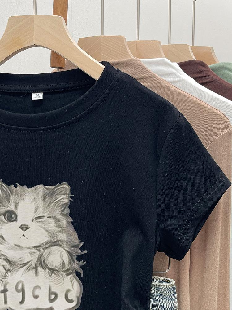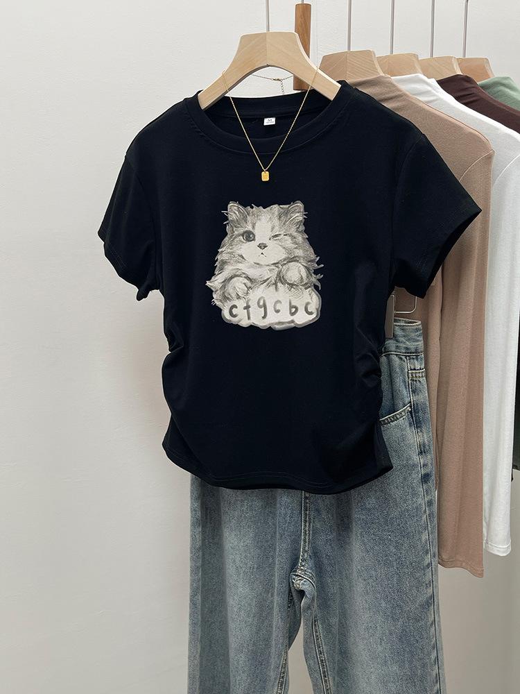 Playera de Algodón Puro Tie-Dye de Hombro Derecho con Manga Corta para Mujer Verano 2025 Nuevo Diseño de Estilo Caliente Talla Grande Slim Top Corto