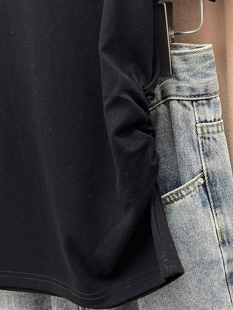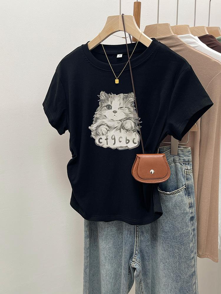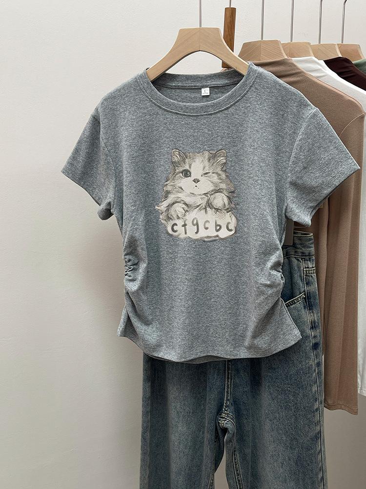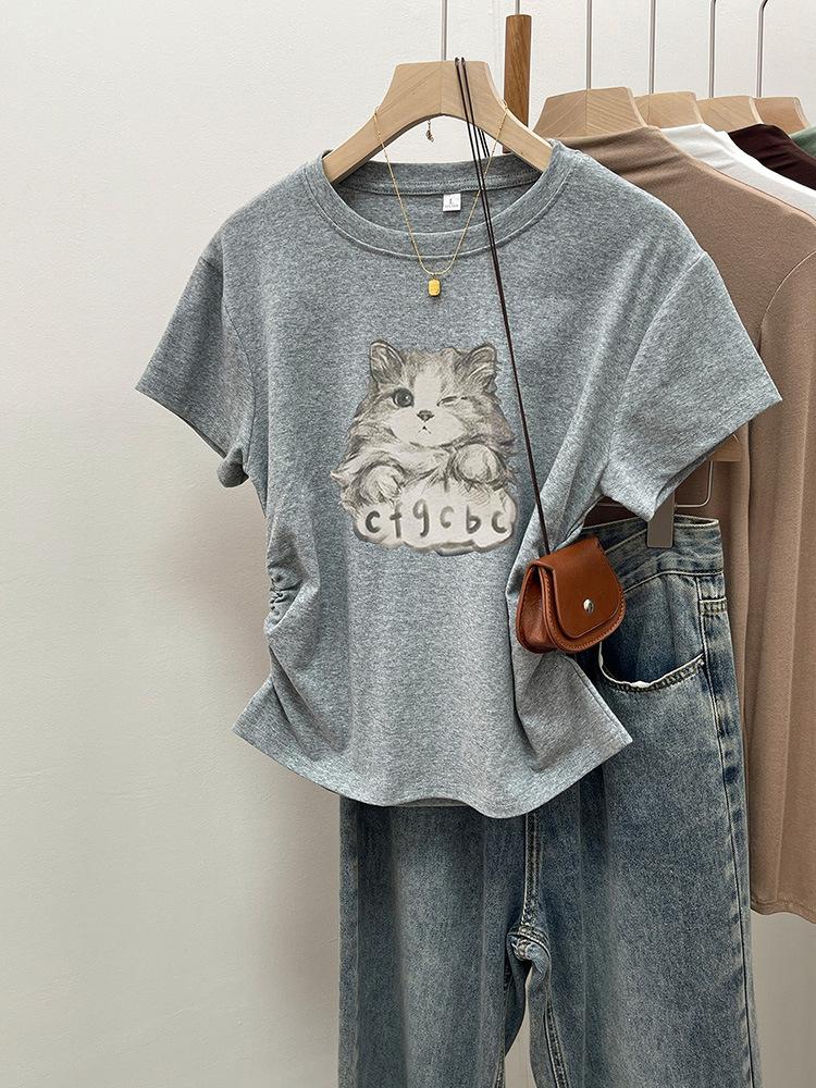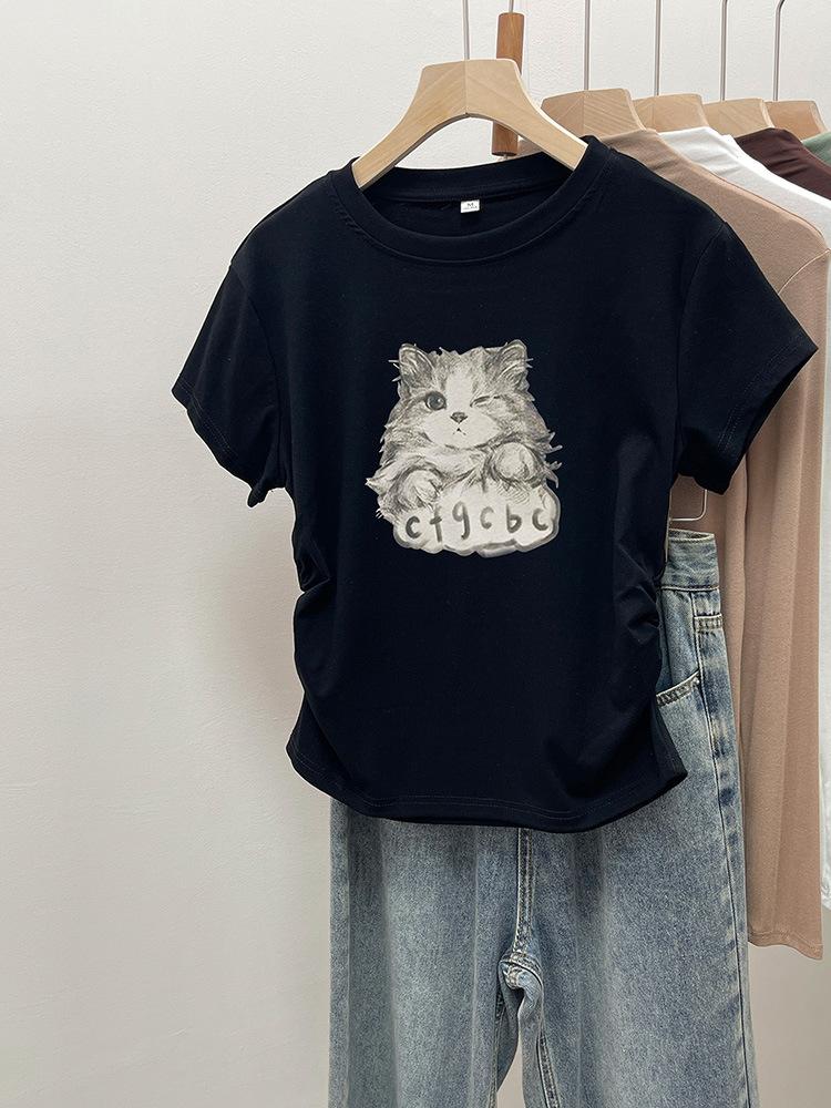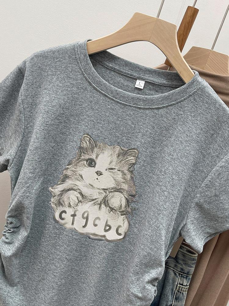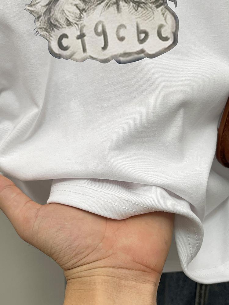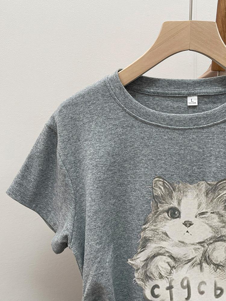 Playera de Algodón Puro Tie-Dye de Hombro Derecho con Manga Corta para Mujer Verano 2025 Nuevo Diseño de Estilo Caliente Talla Grande Slim Top Corto
