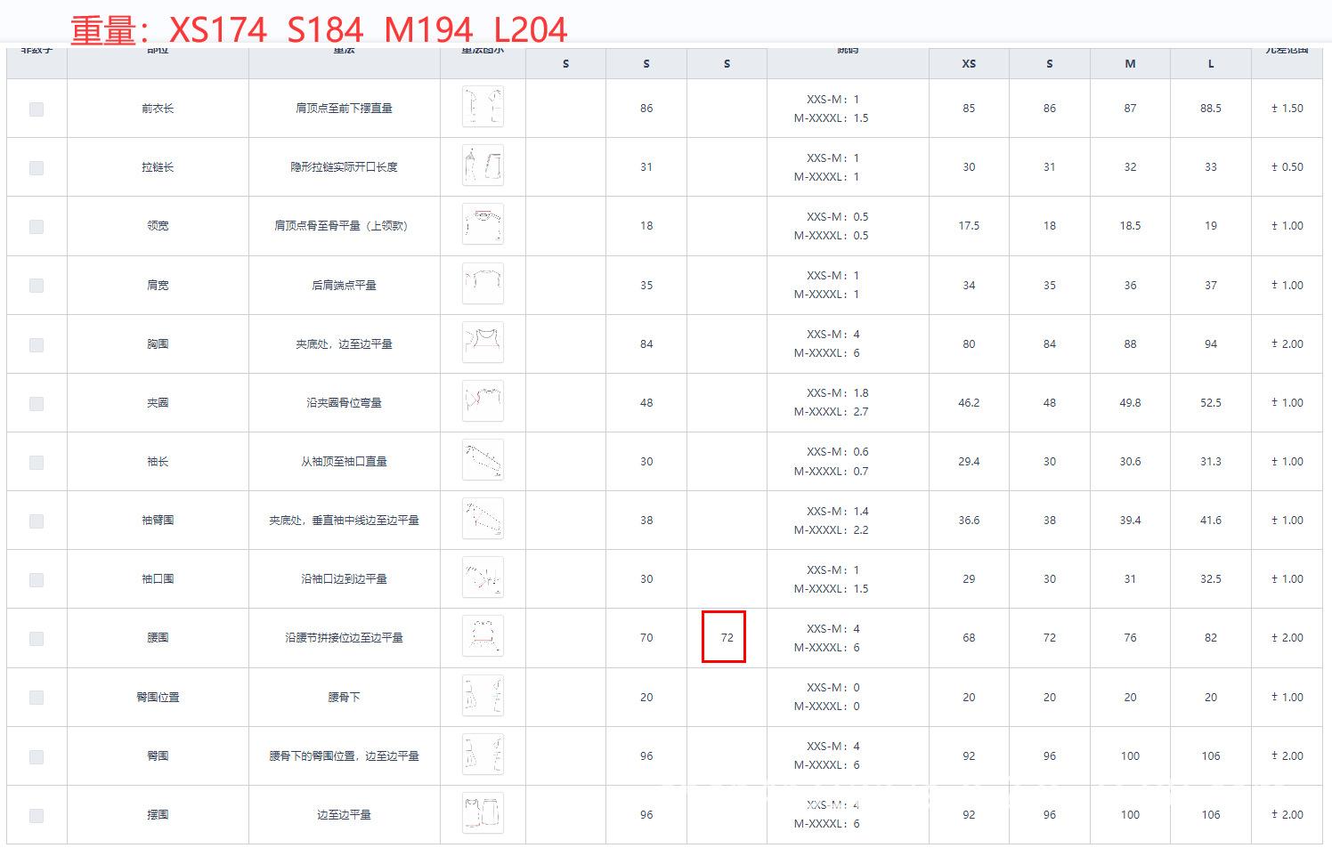 Xs, S, M, L