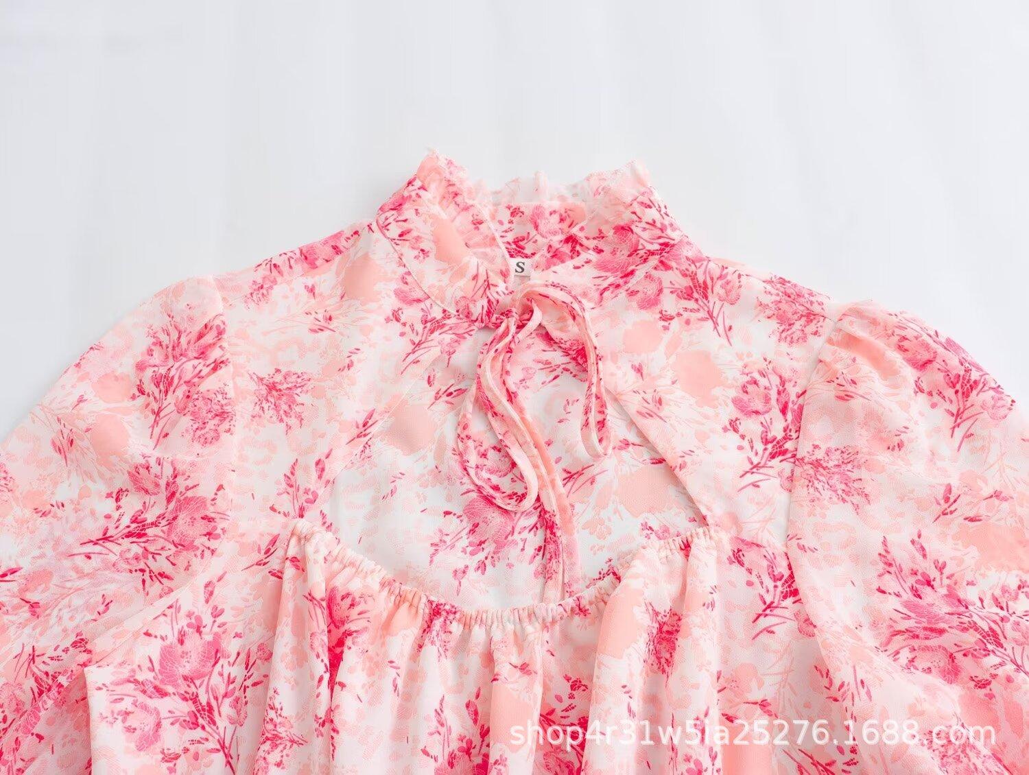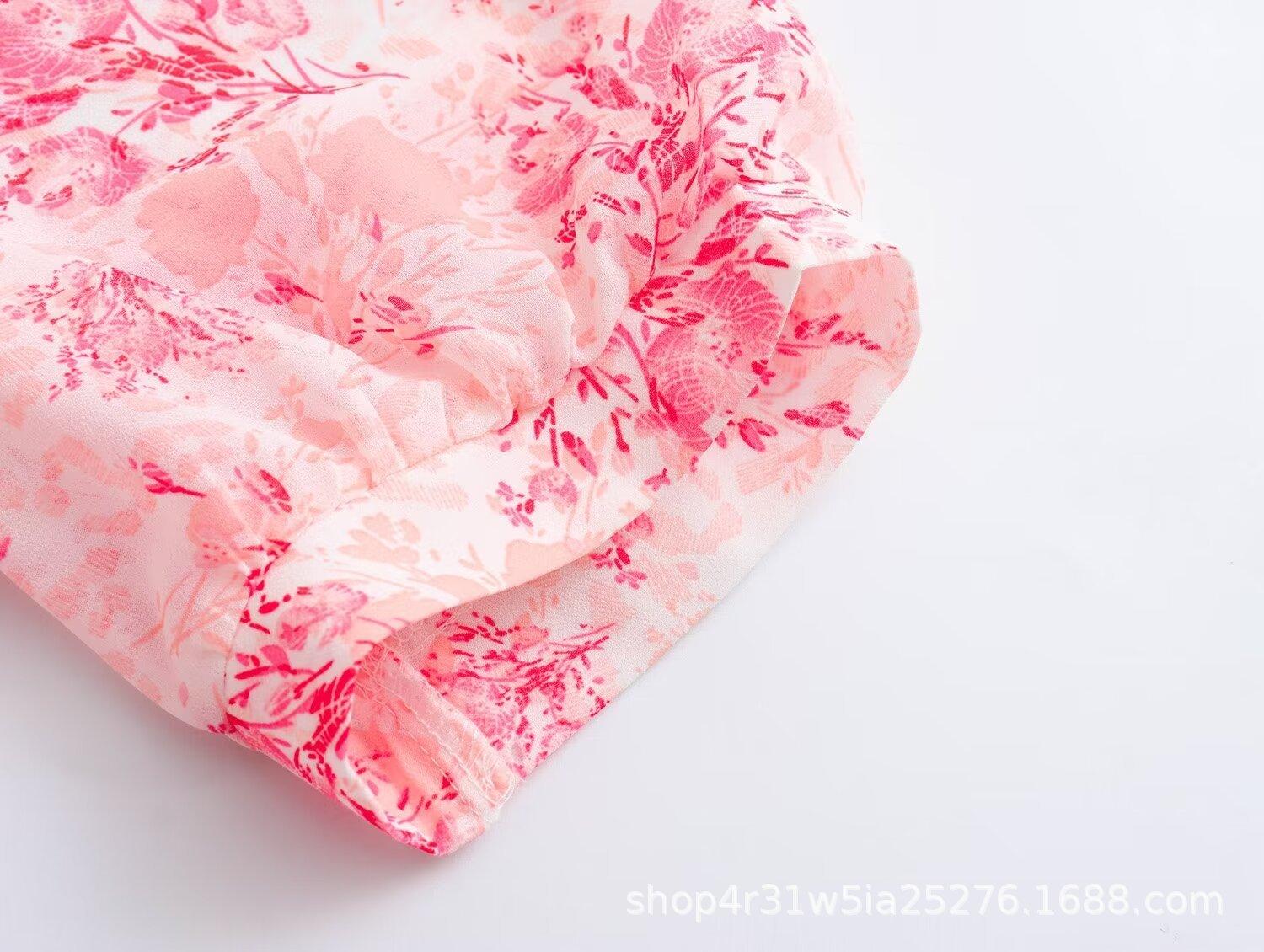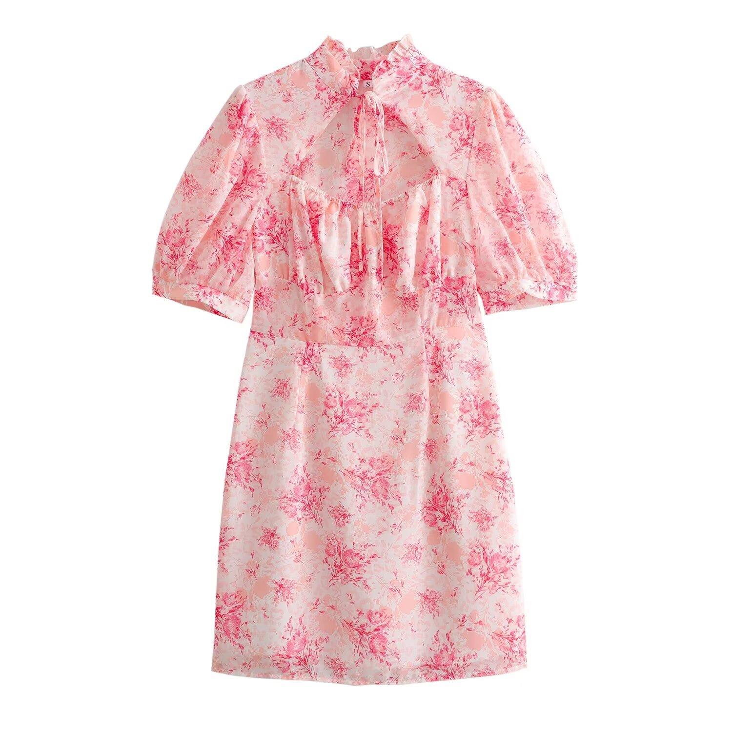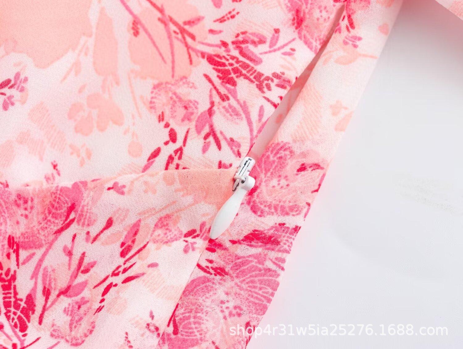 Moda de Verano Europea y Americana 2024 Nuevo Vestido de Mujer Ajustado con Aberturas, Cordones y Estampado de Manga Corta