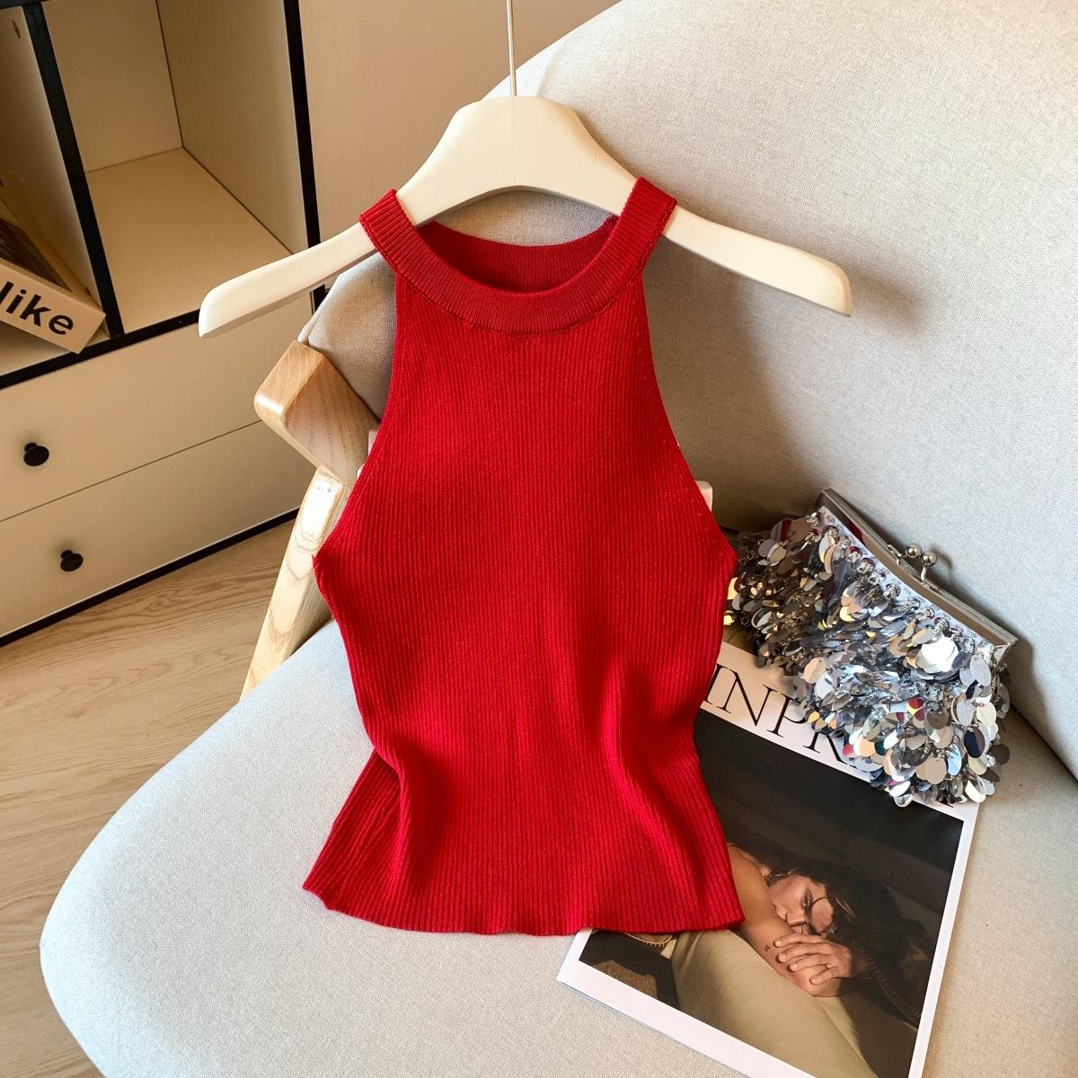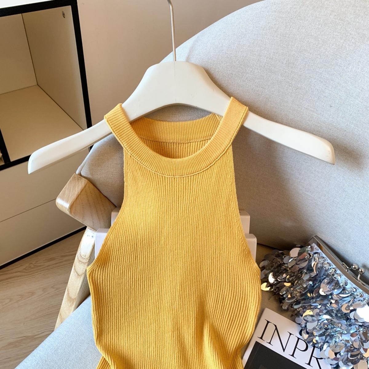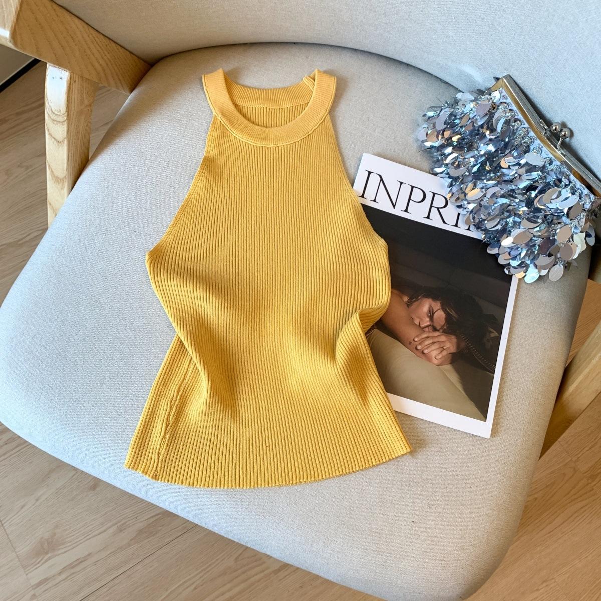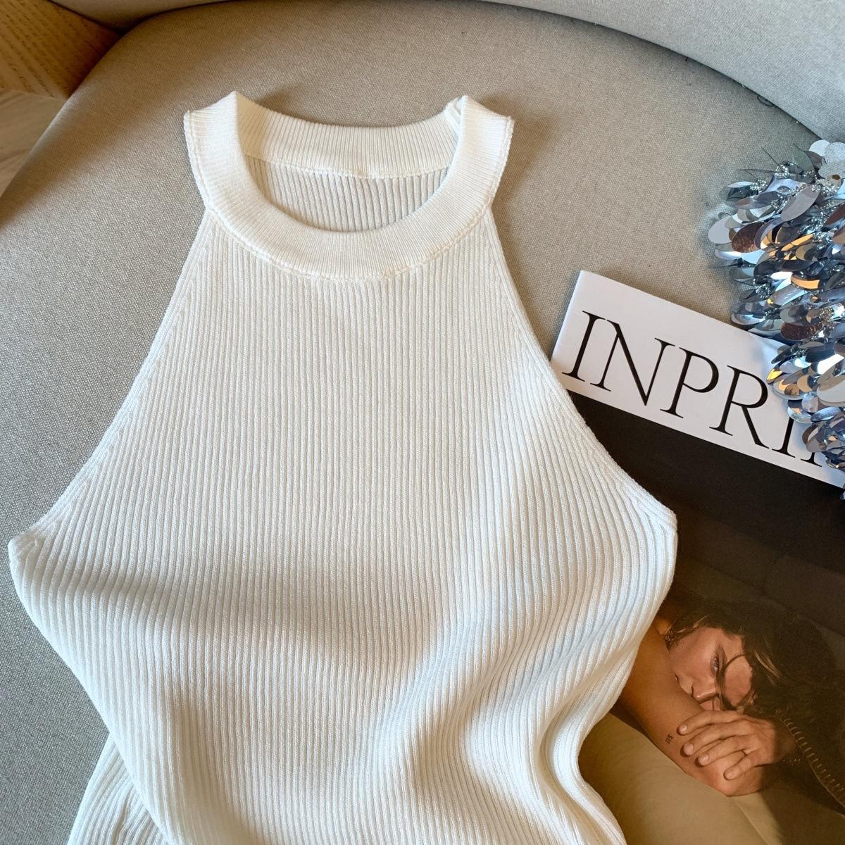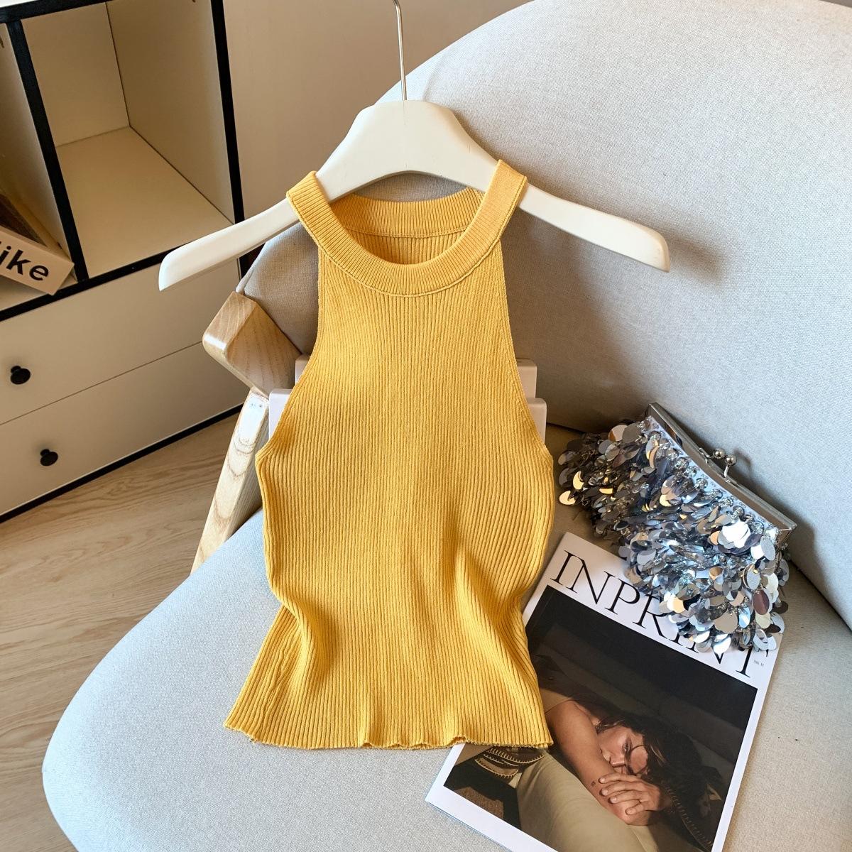Tiro Real Chica Caliente Chaleco Halter de Punto Mujer Verano Color Sólido Adelgazante Top Corto sin Mangas Ropa Exterior Mujer