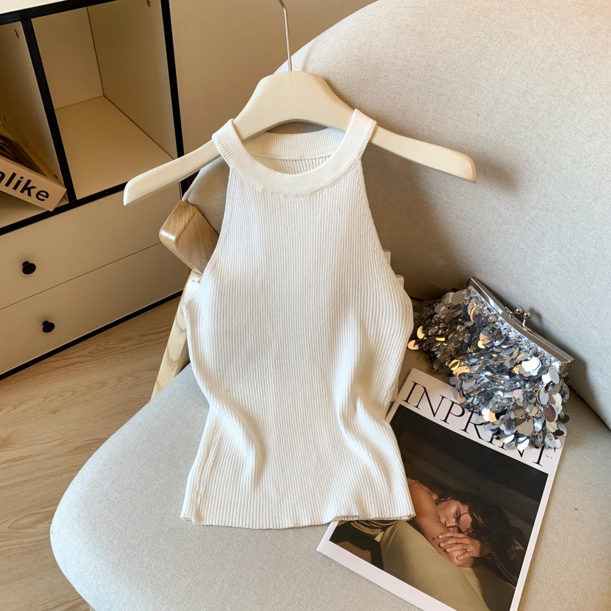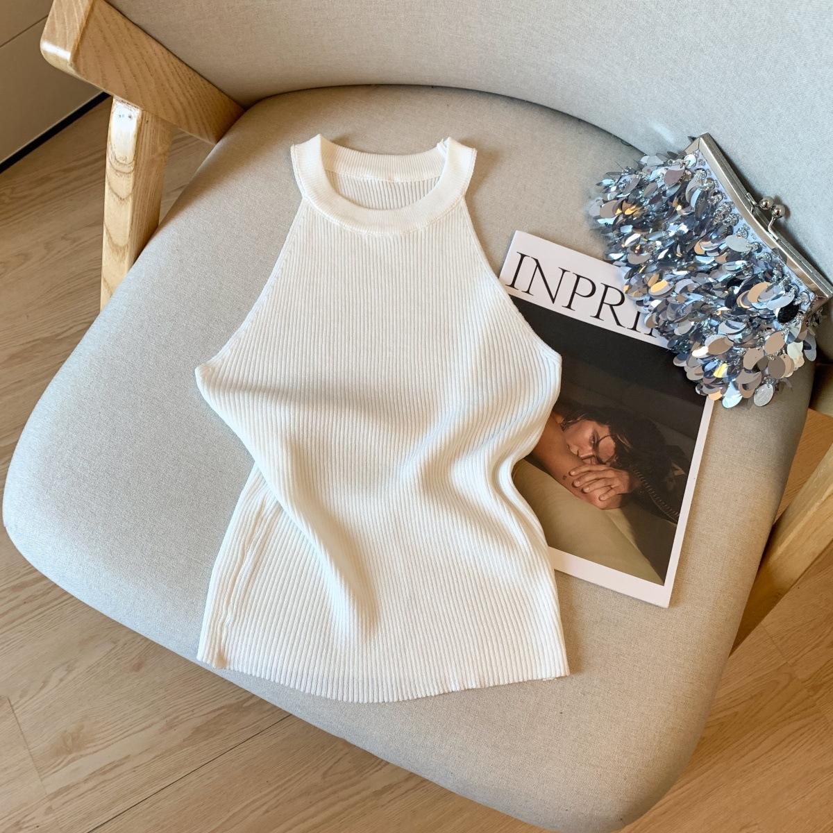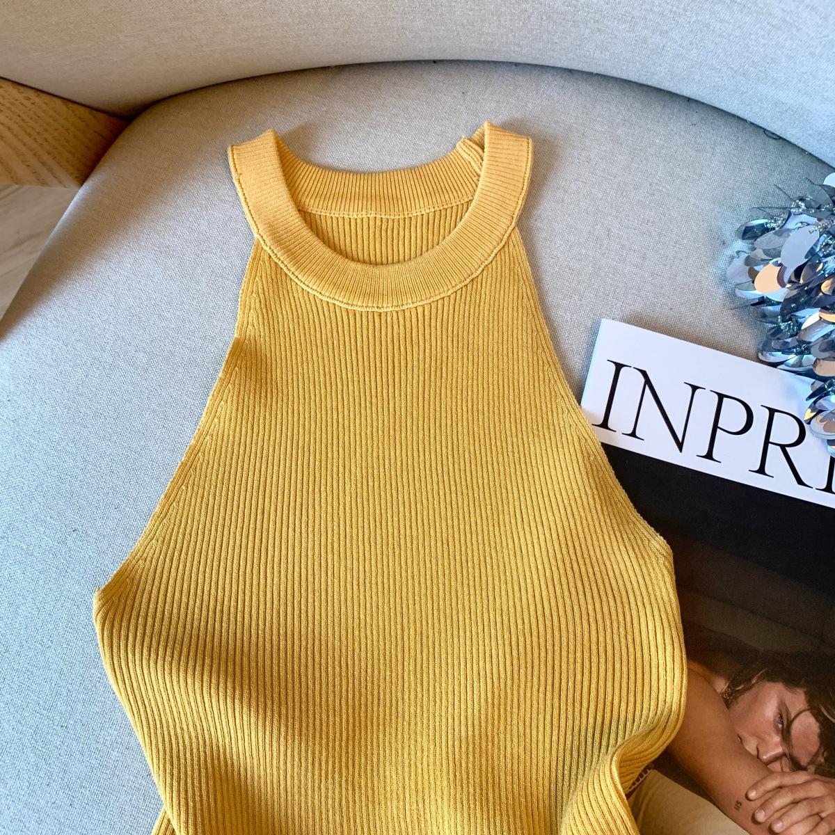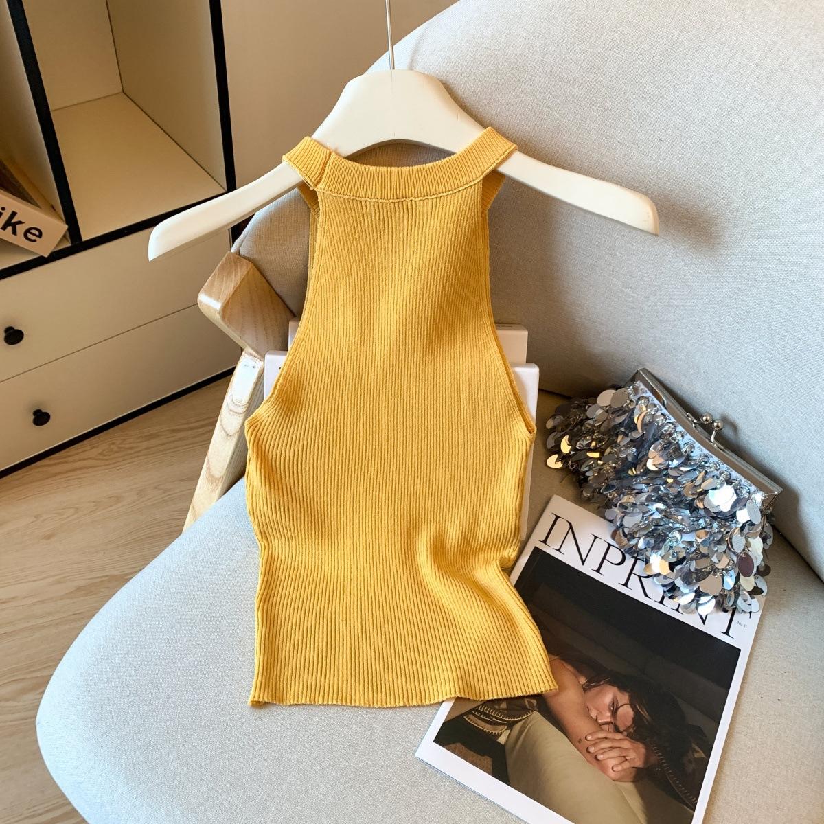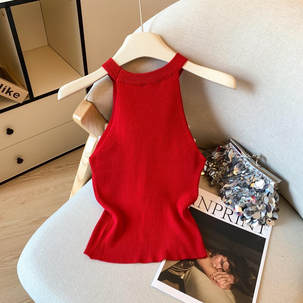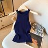 Tiro Real Chica Caliente Chaleco Halter de Punto Mujer Verano Color Sólido Adelgazante Top Corto sin Mangas Ropa Exterior Mujer