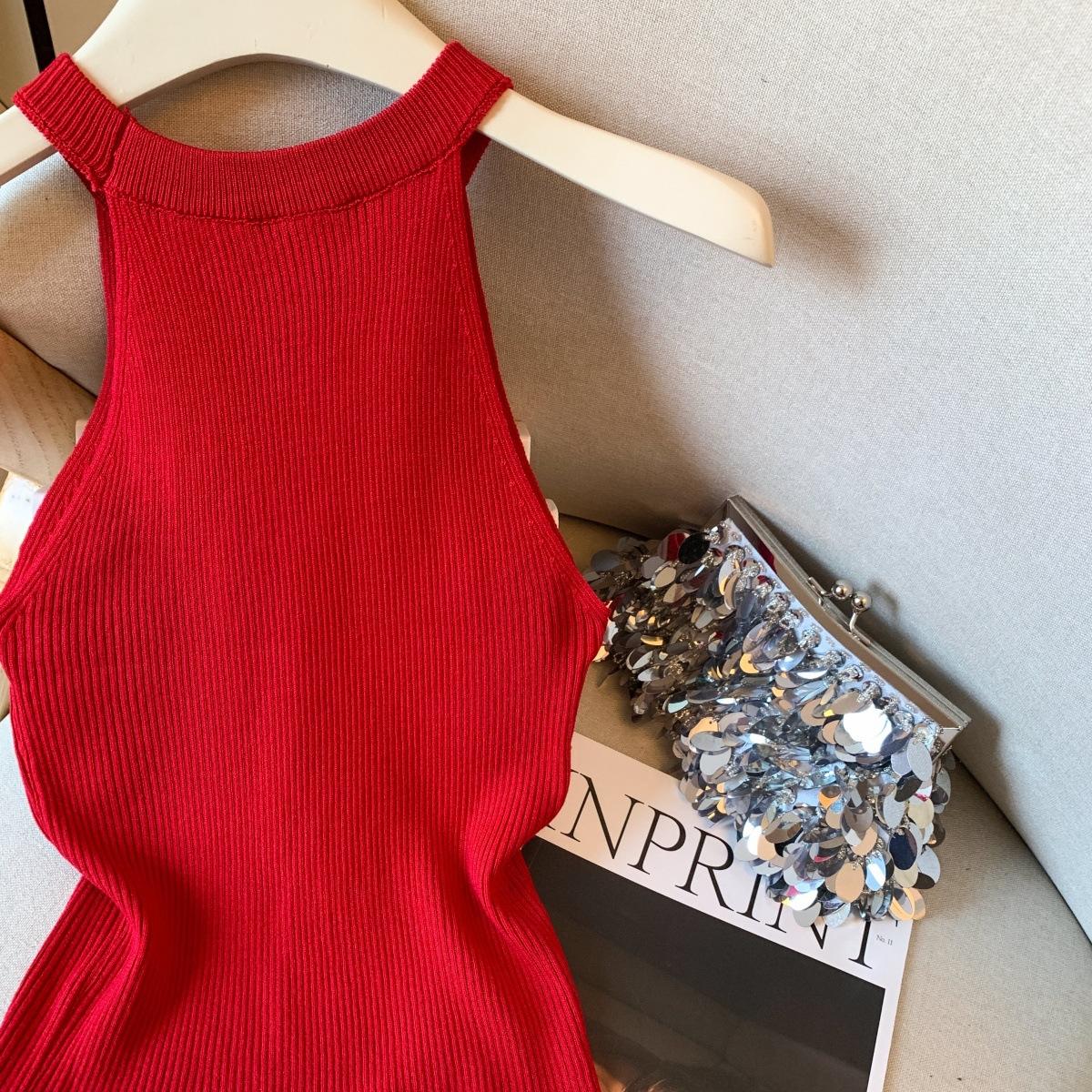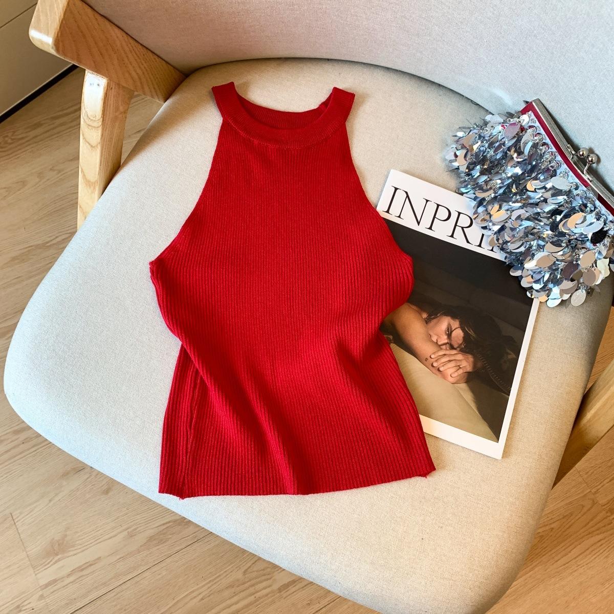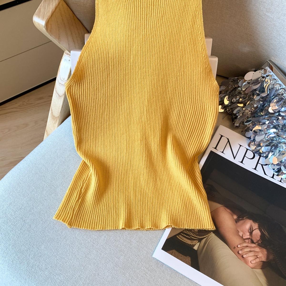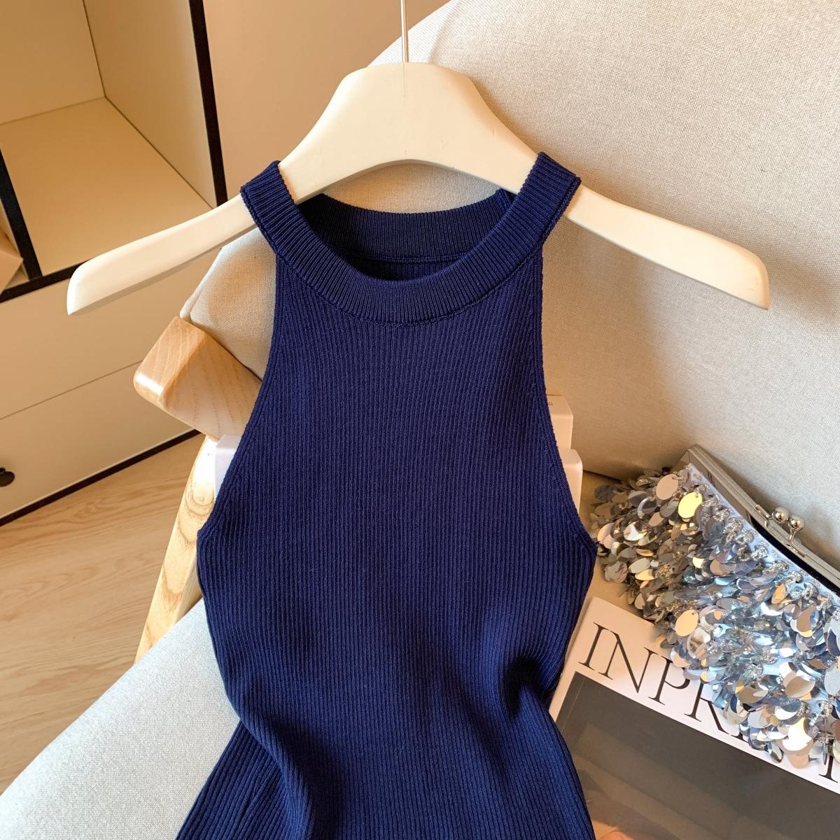 Tiro Real Chica Caliente Chaleco Halter de Punto Mujer Verano Color Sólido Adelgazante Top Corto sin Mangas Ropa Exterior Mujer