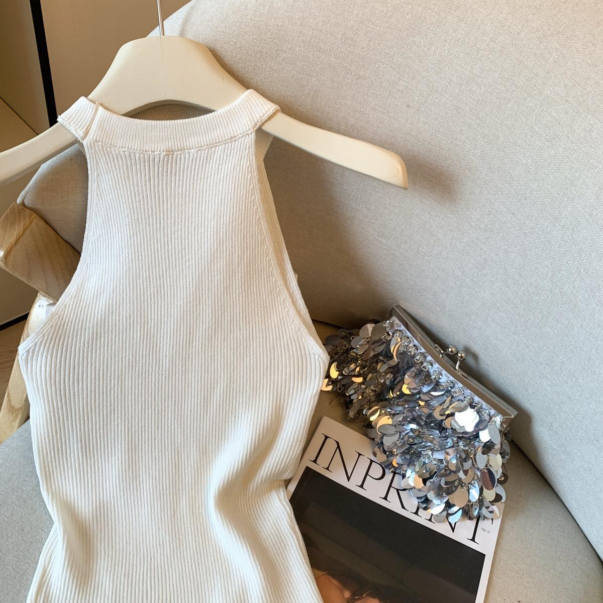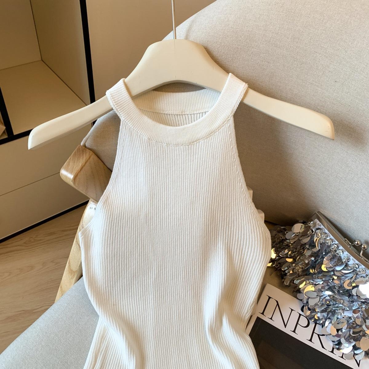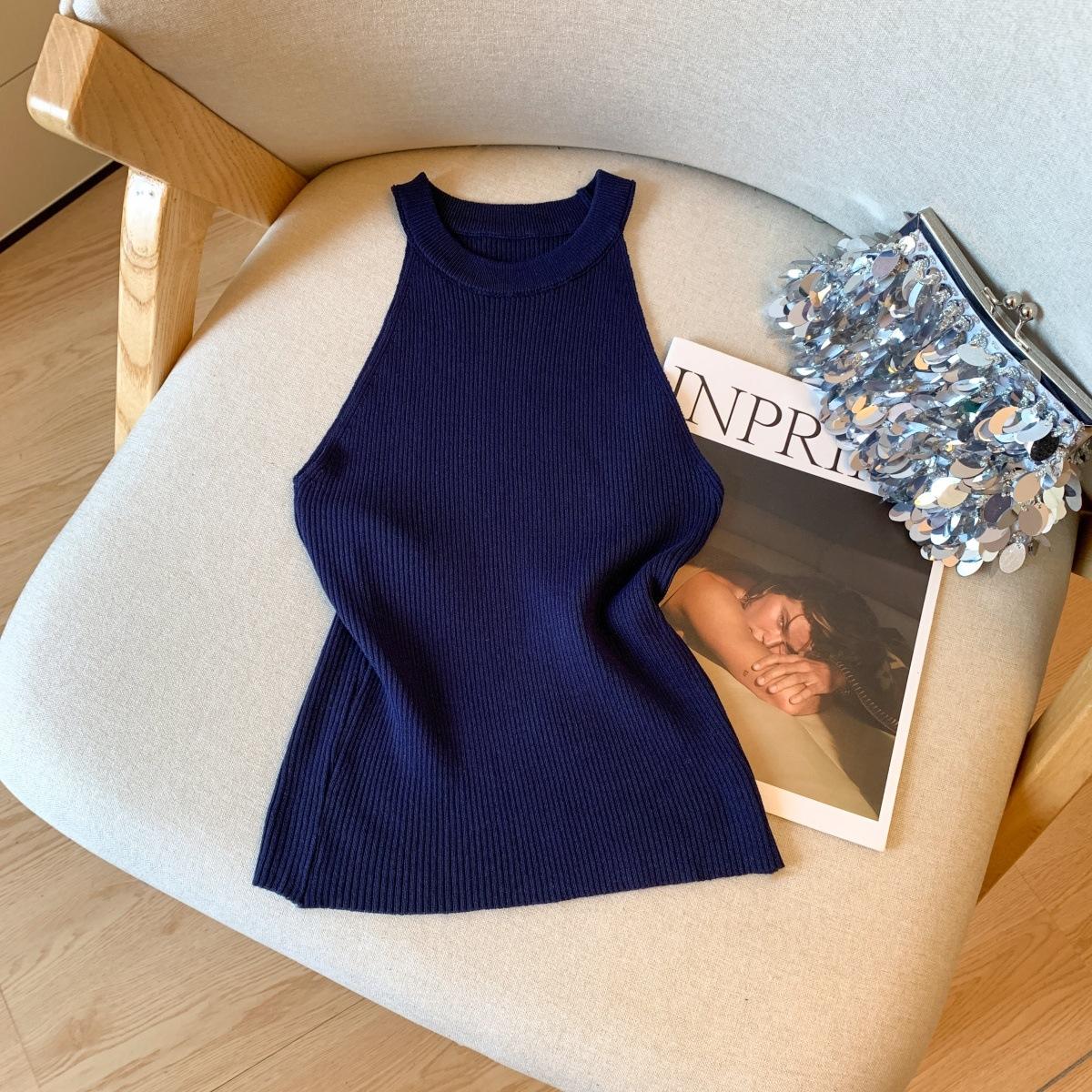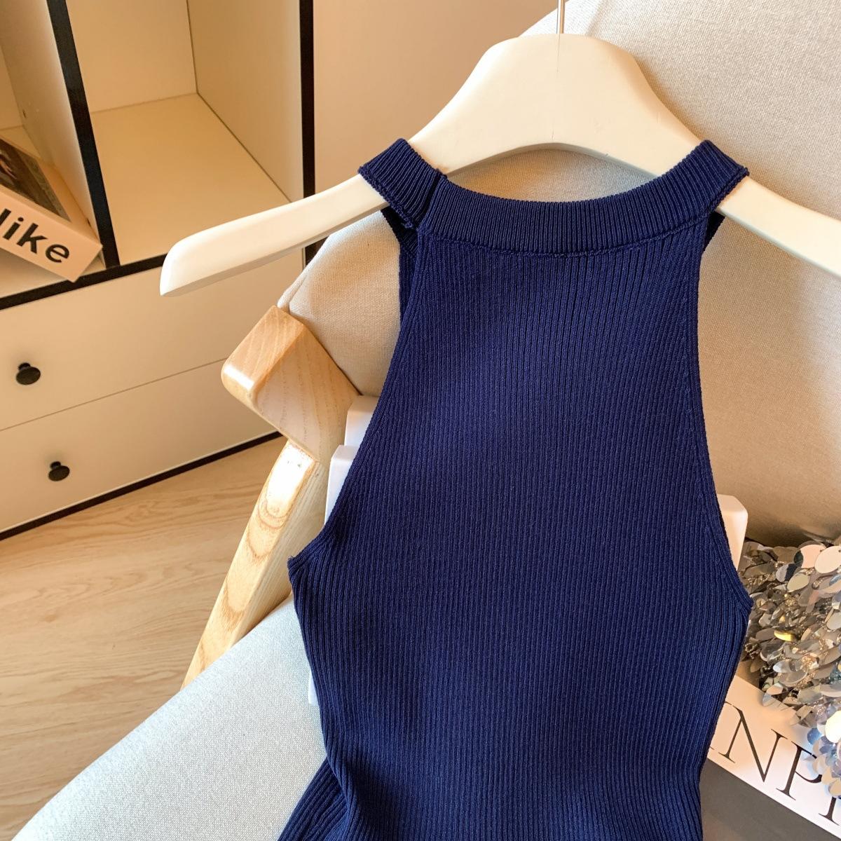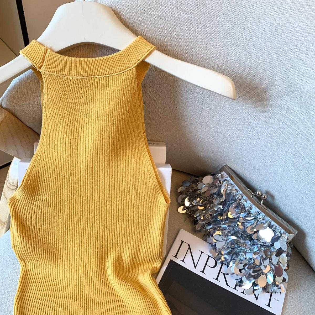 Tiro Real Chica Caliente Chaleco Halter de Punto Mujer Verano Color Sólido Adelgazante Top Corto sin Mangas Ropa Exterior Mujer