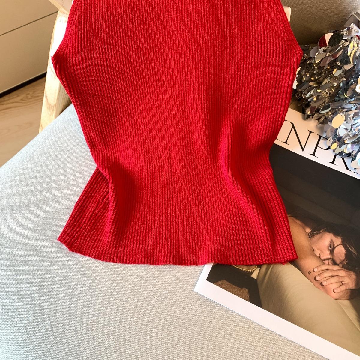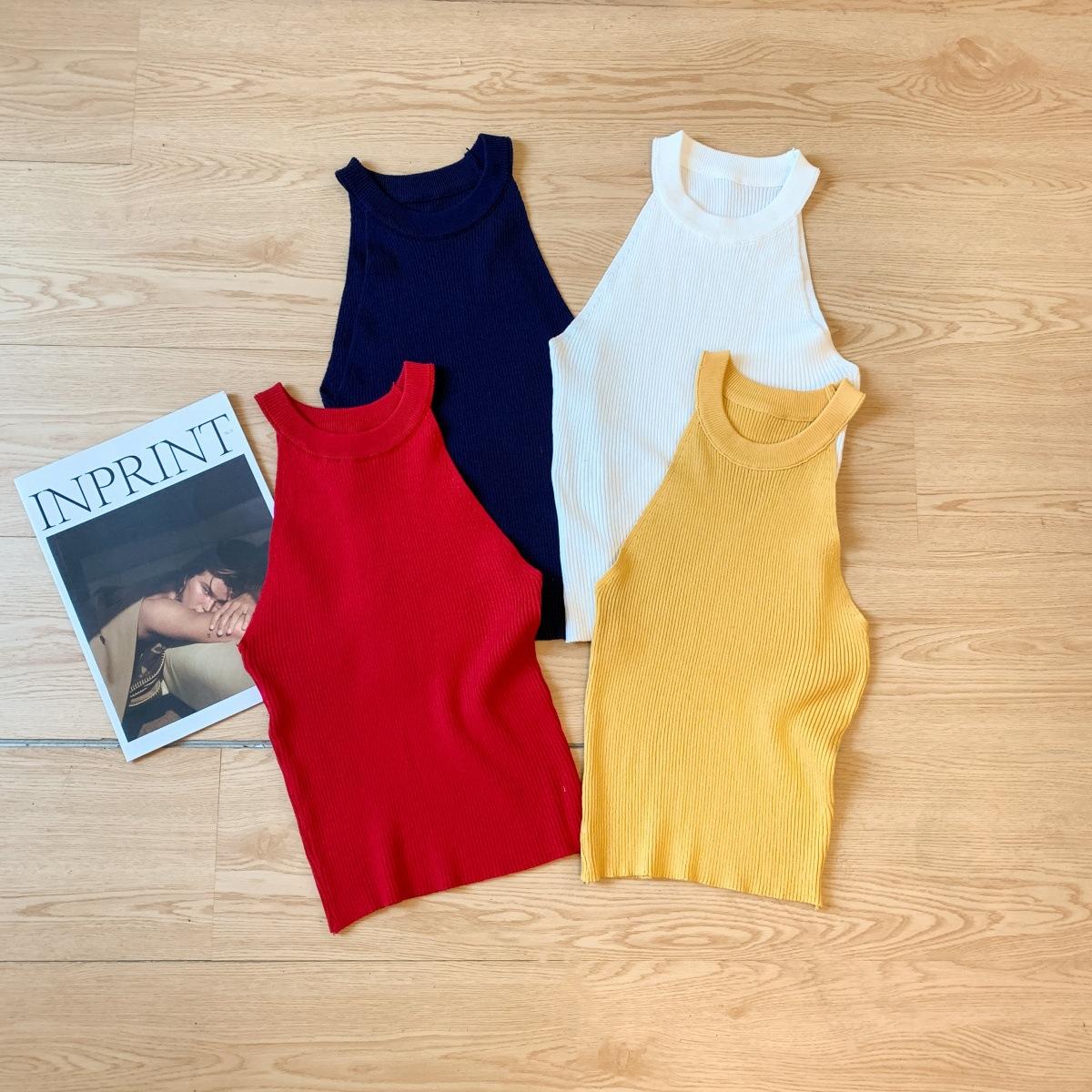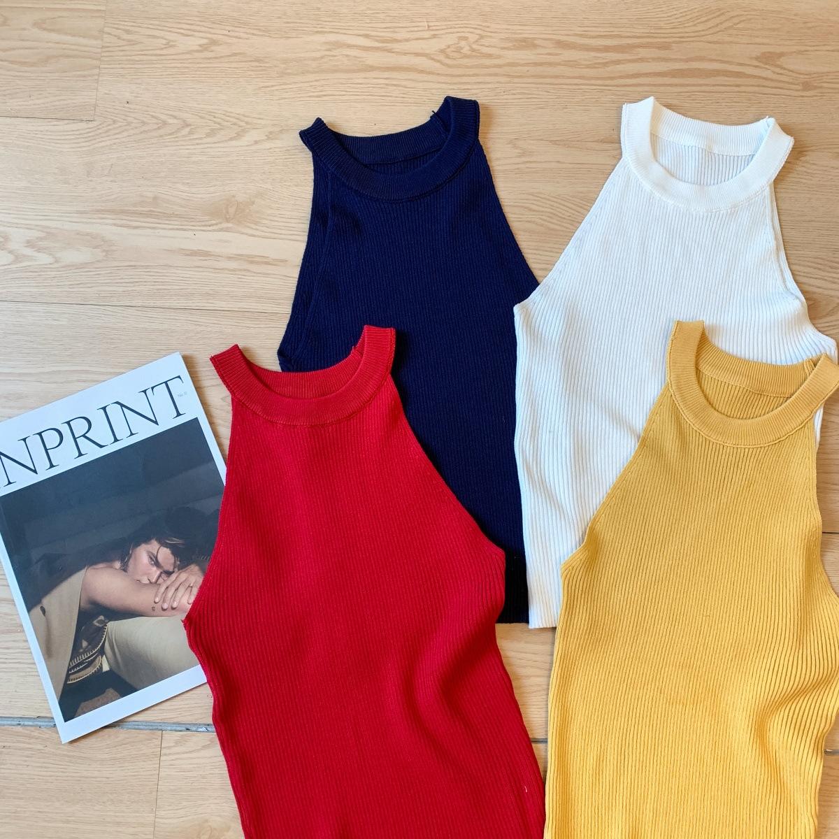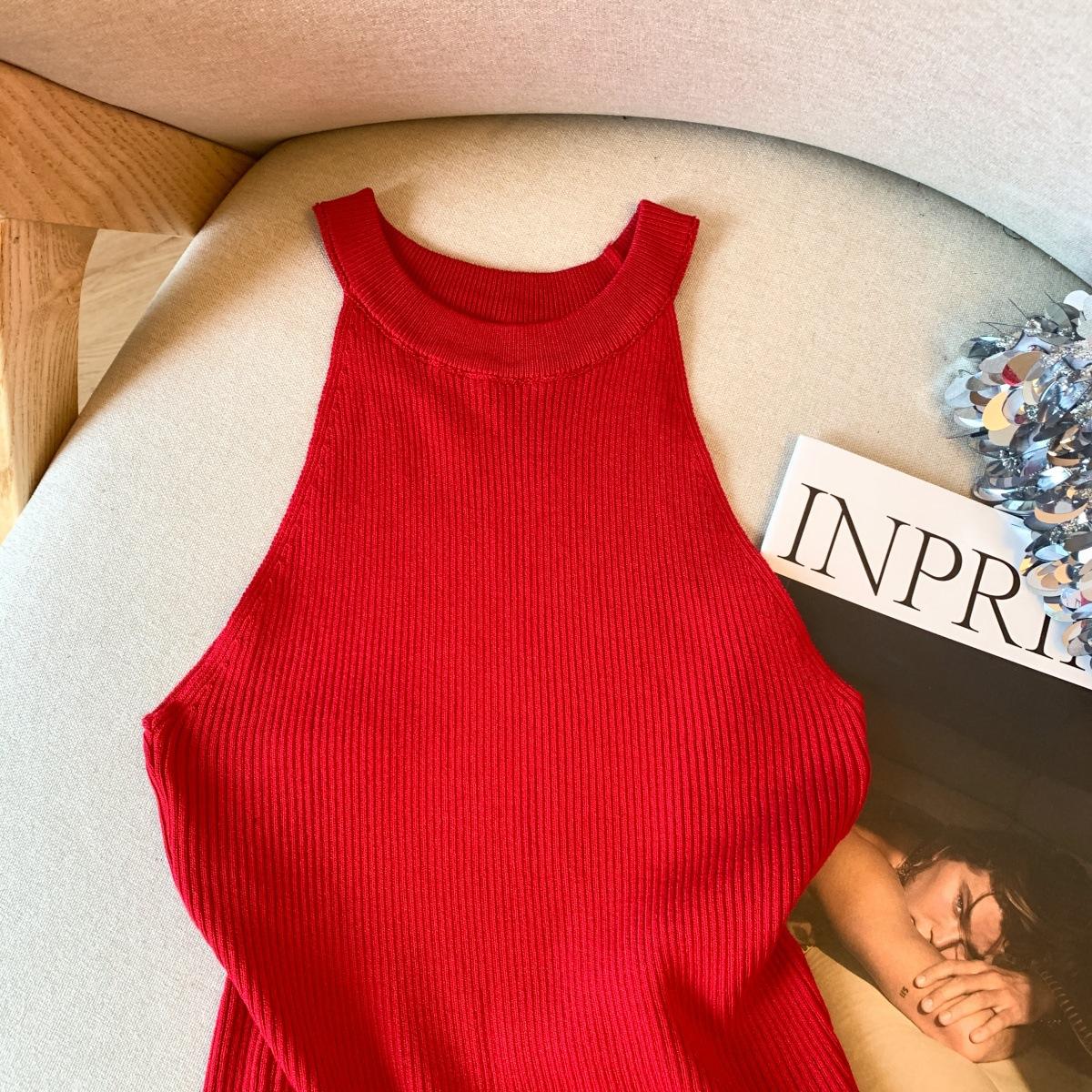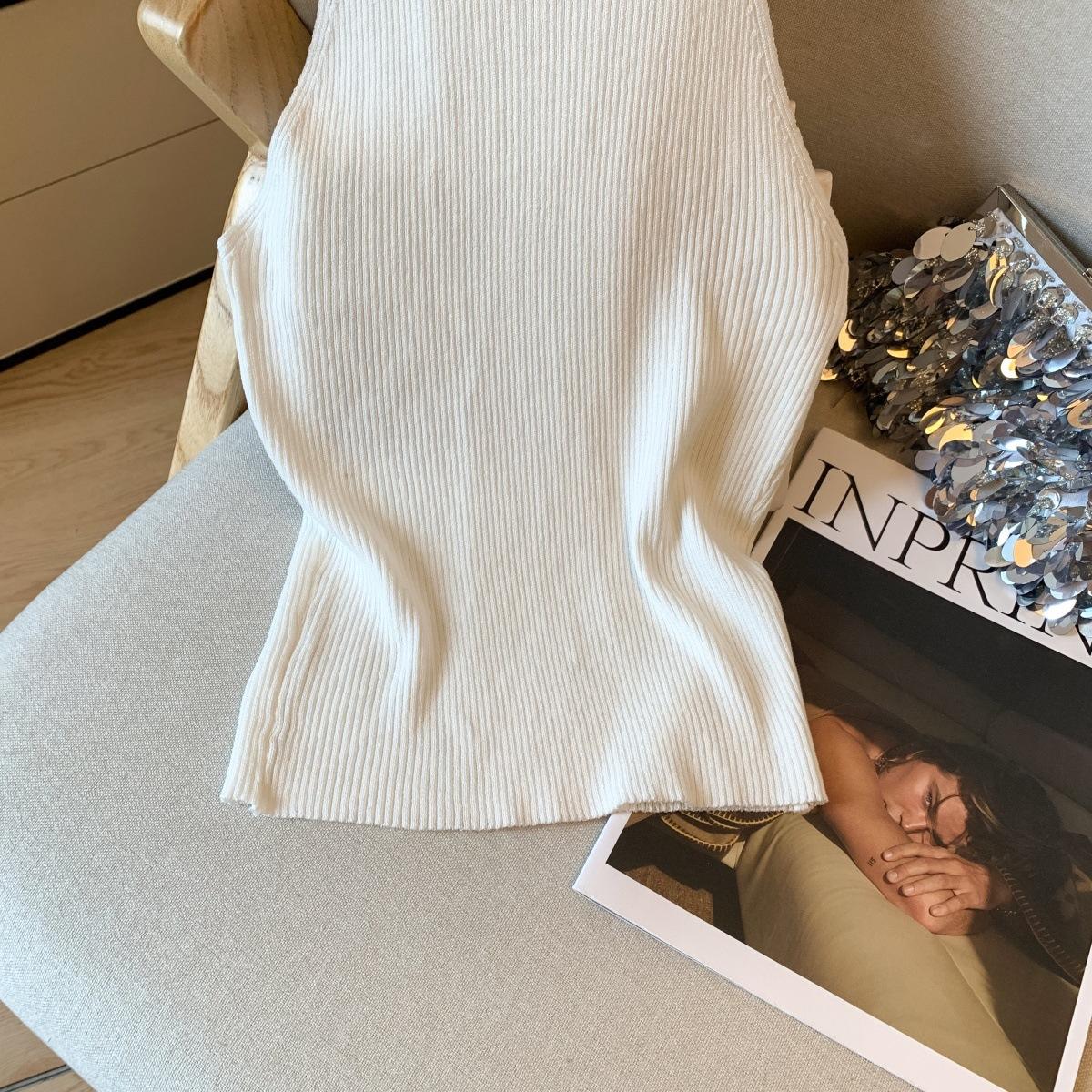 Tiro Real Chica Caliente Chaleco Halter de Punto Mujer Verano Color Sólido Adelgazante Top Corto sin Mangas Ropa Exterior Mujer