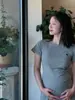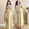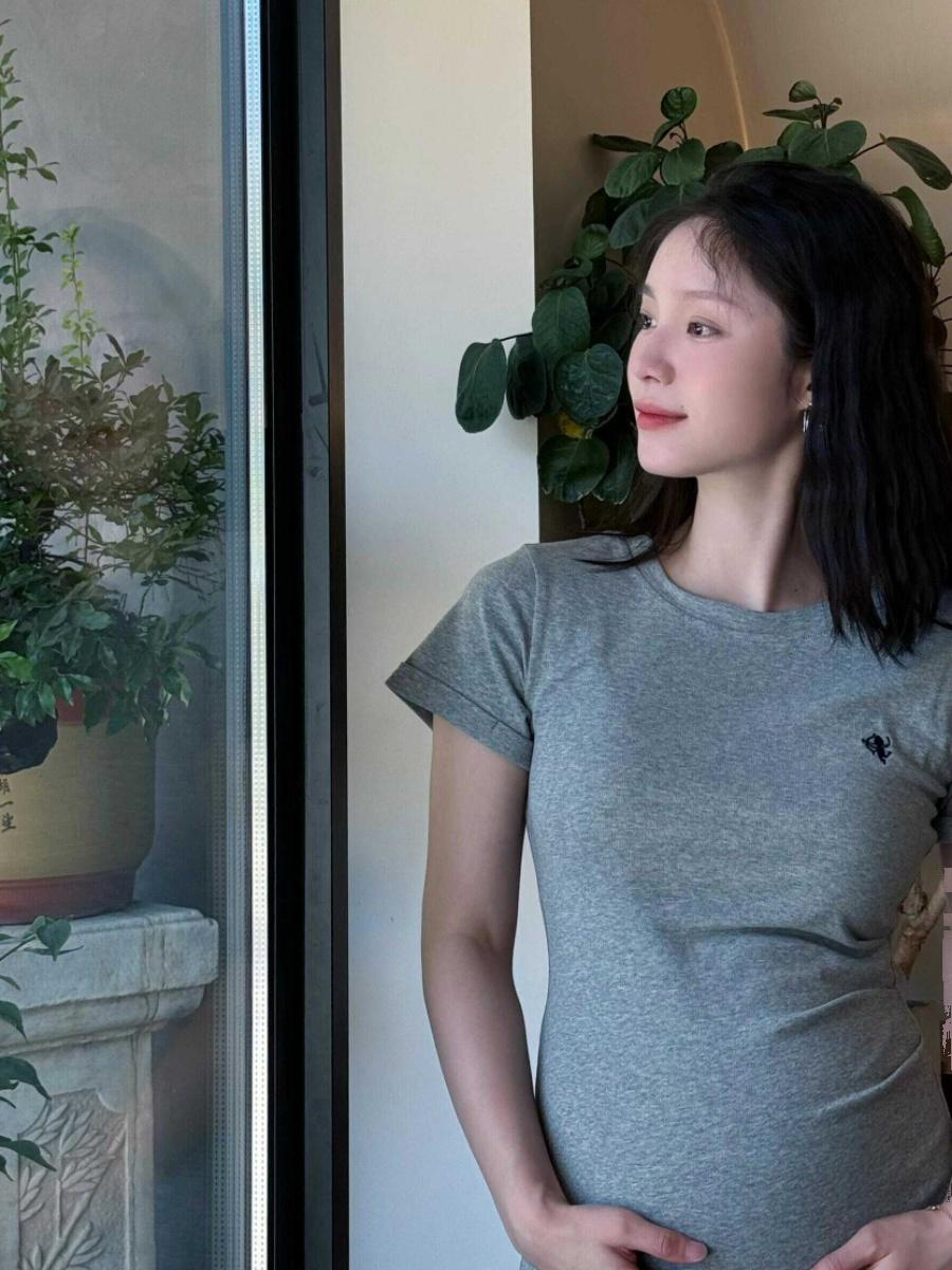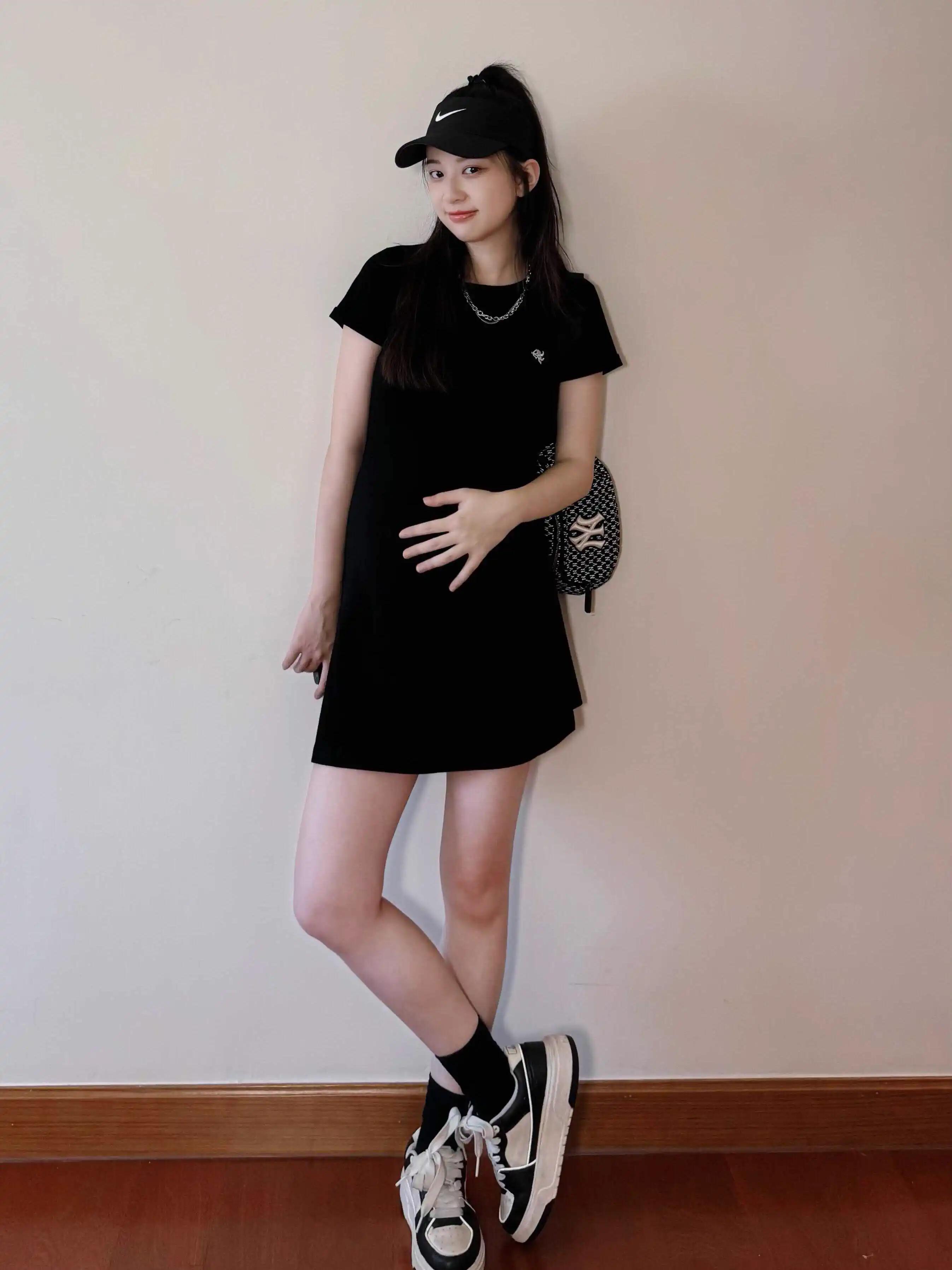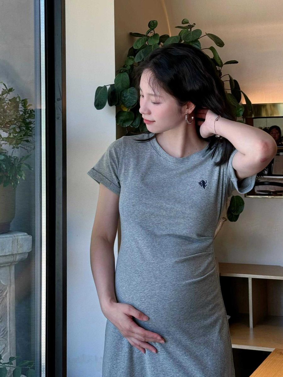 Ropa de Maternidad 2025 Nuevo Vestido Estilo Coreano Look Adelgazante a la Moda Camiseta de Algodón de Manga Corta Falda Delgada Verano