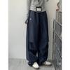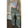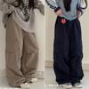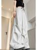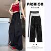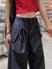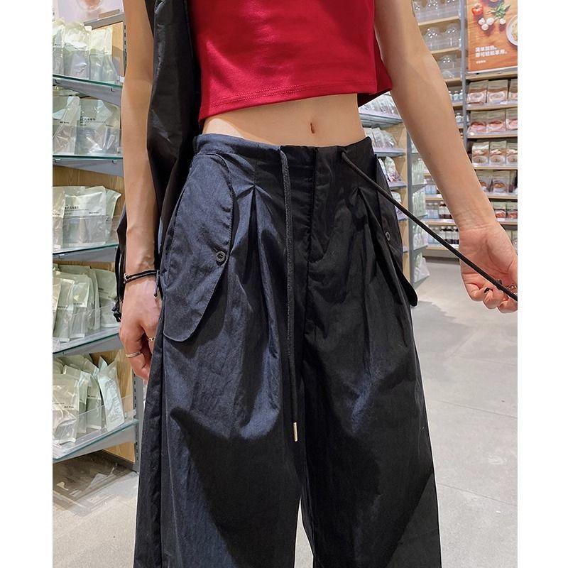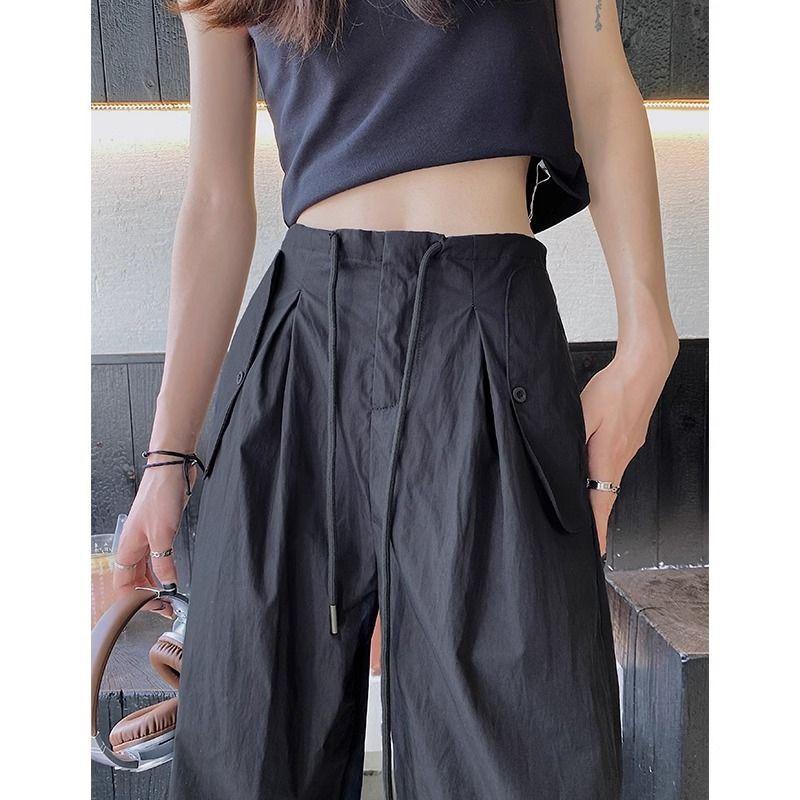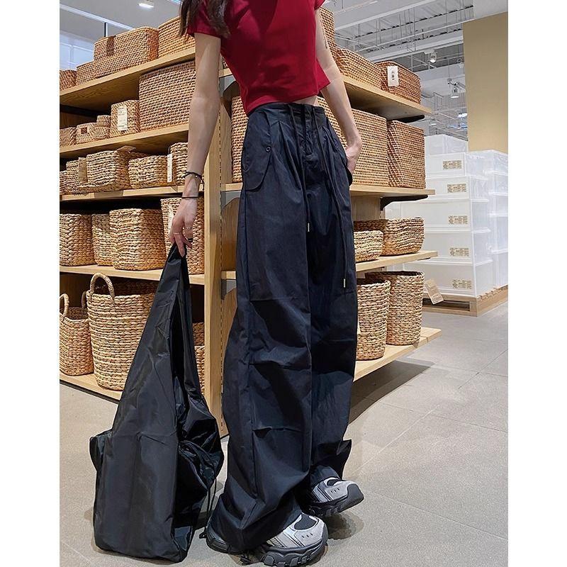 Pantalones cargo negros estilo americano para mujer, verano delgados 2025 nuevos populares pantalones de pierna ancha, pantalones casuales paracaidistas drapeados de cintura alta