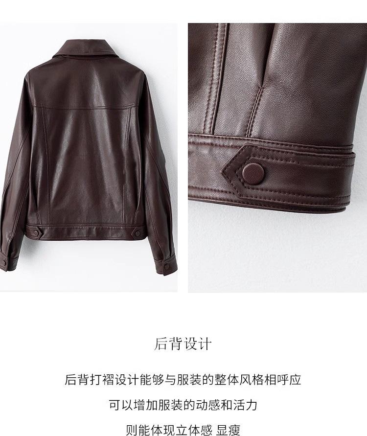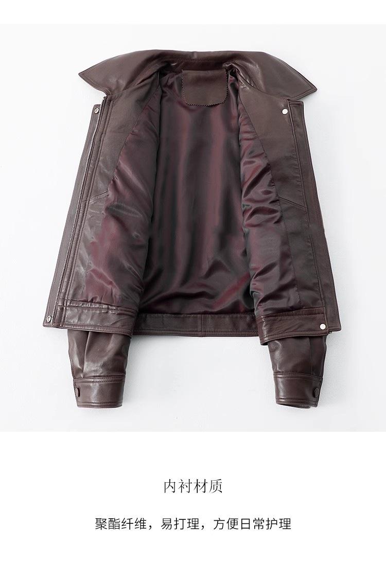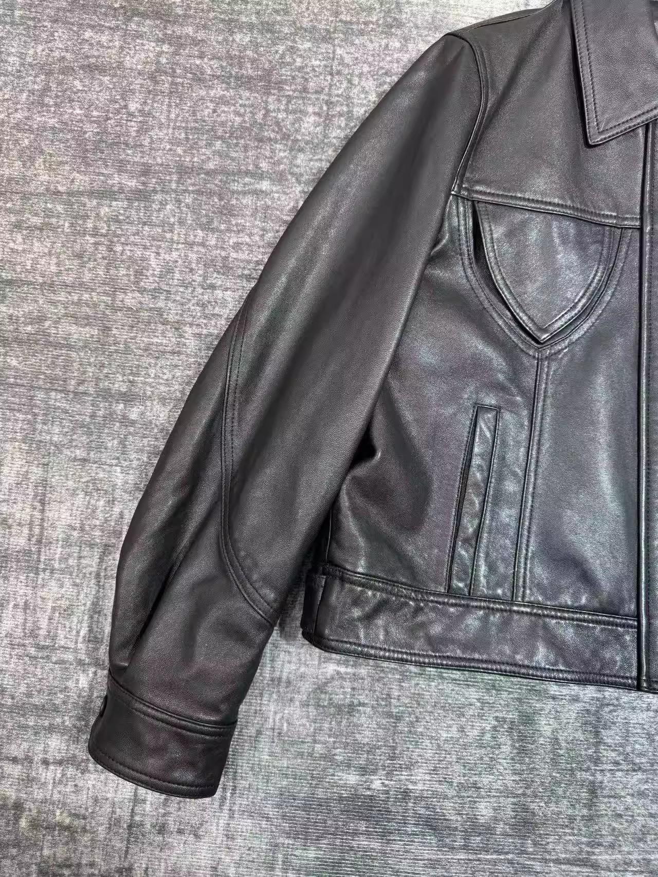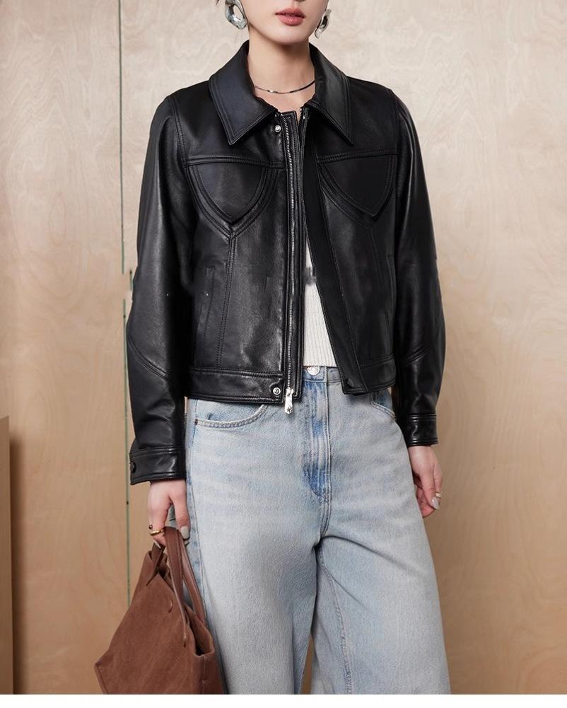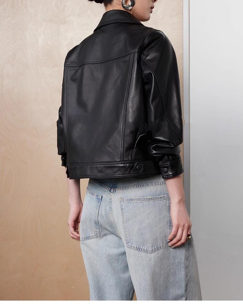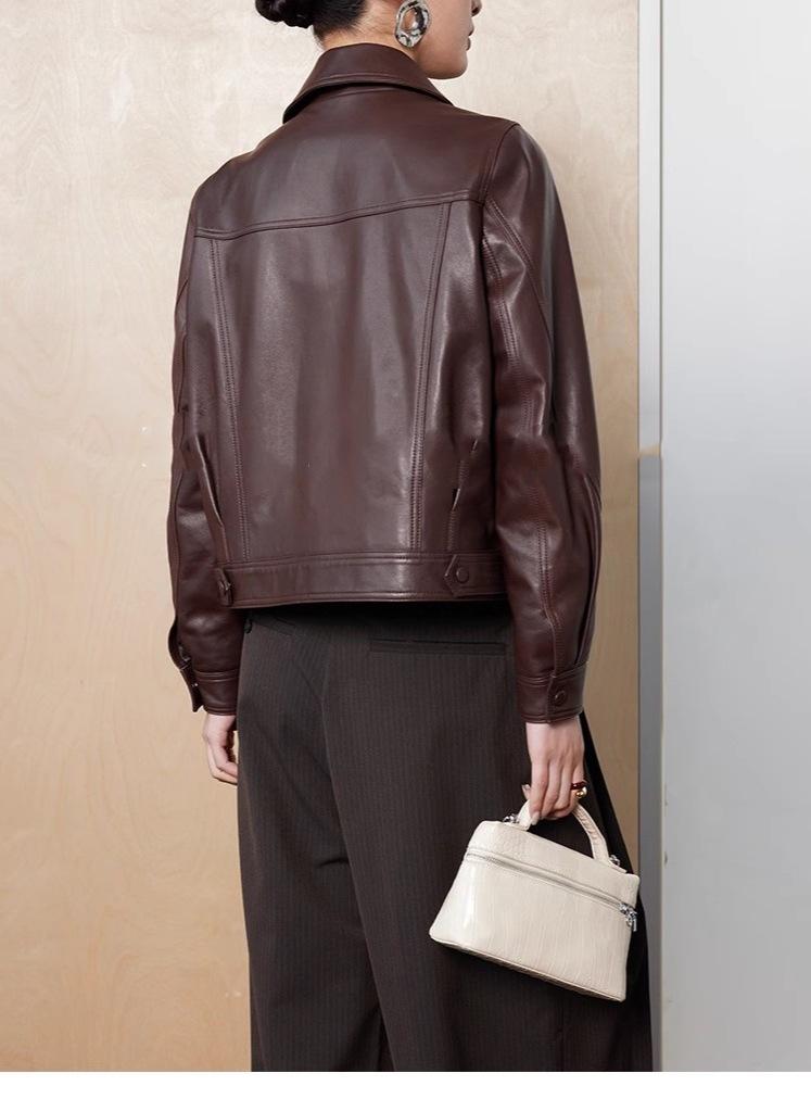 [Cuero Vintage] Chaqueta Corta de Cuero Americano Retro de Capa Superior de Piel de Oveja Curtida Vegetal Abrigo de Cuero para Mujer 2025