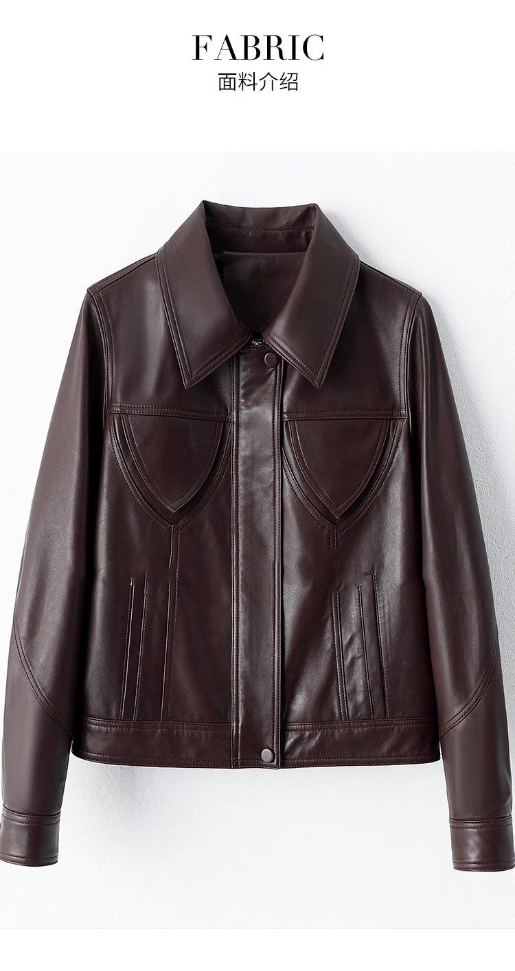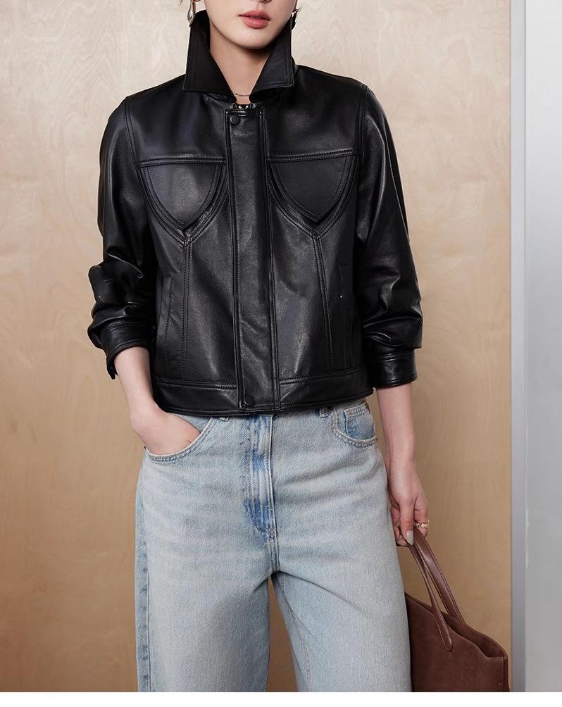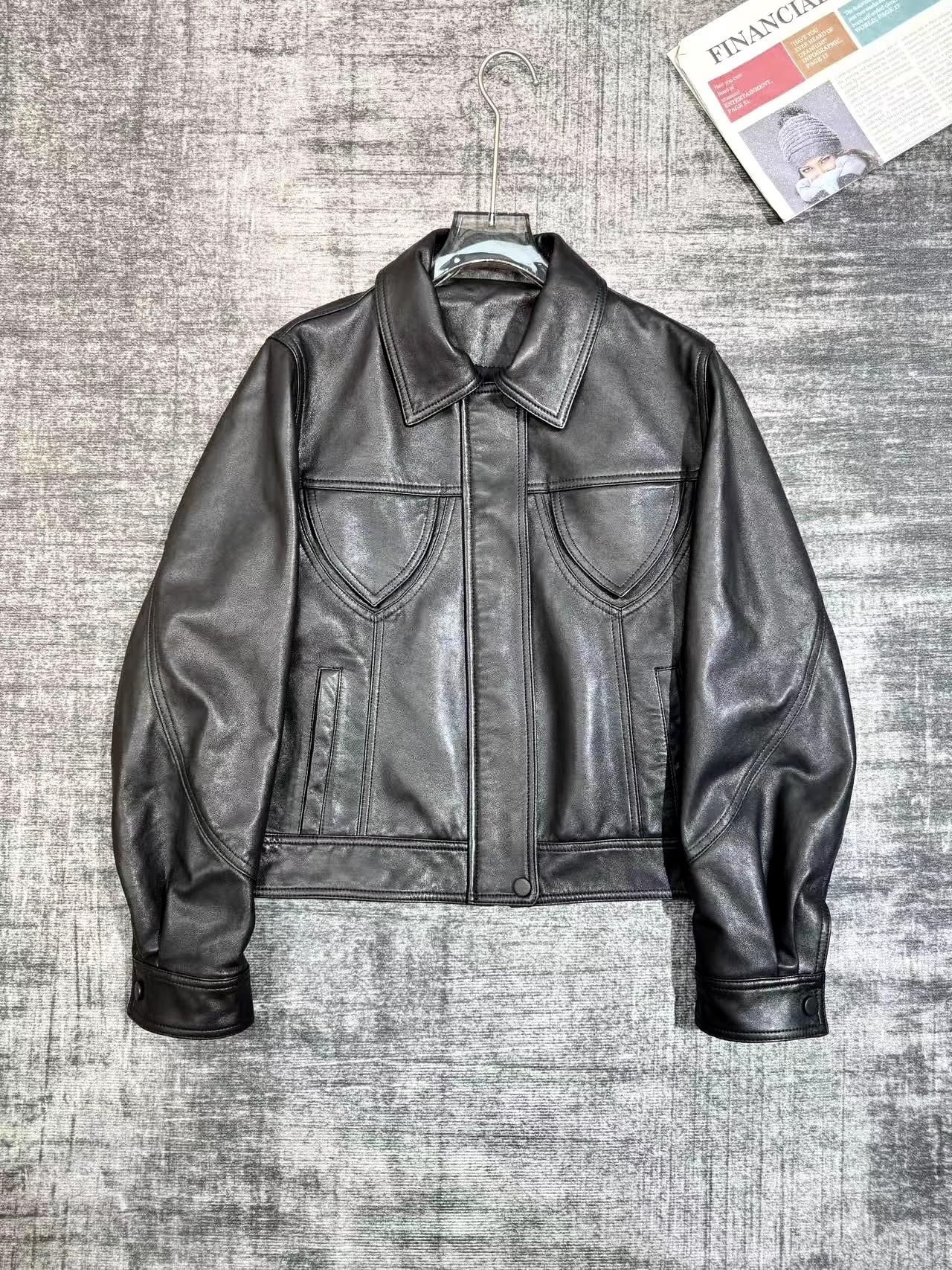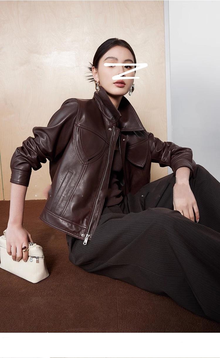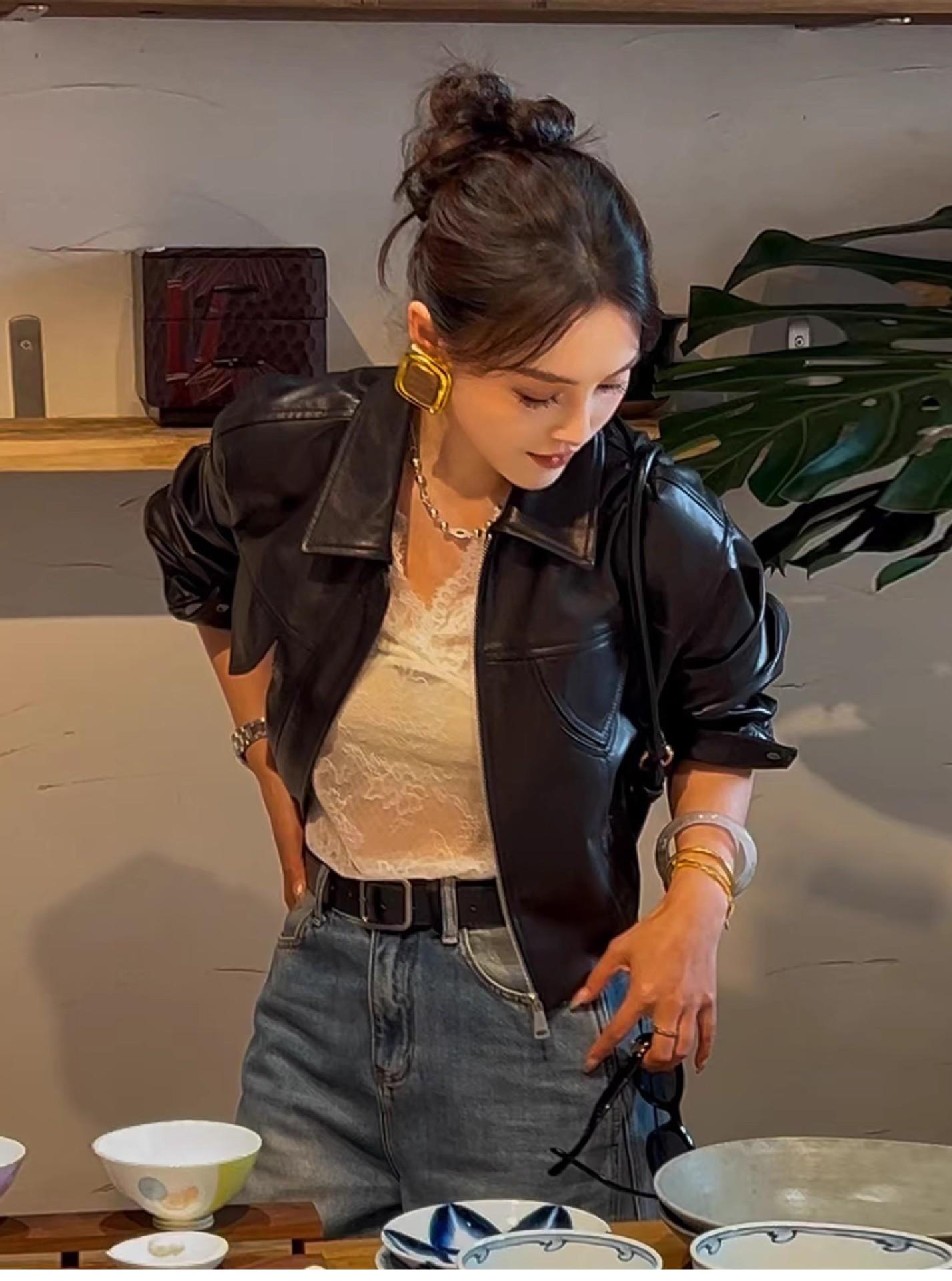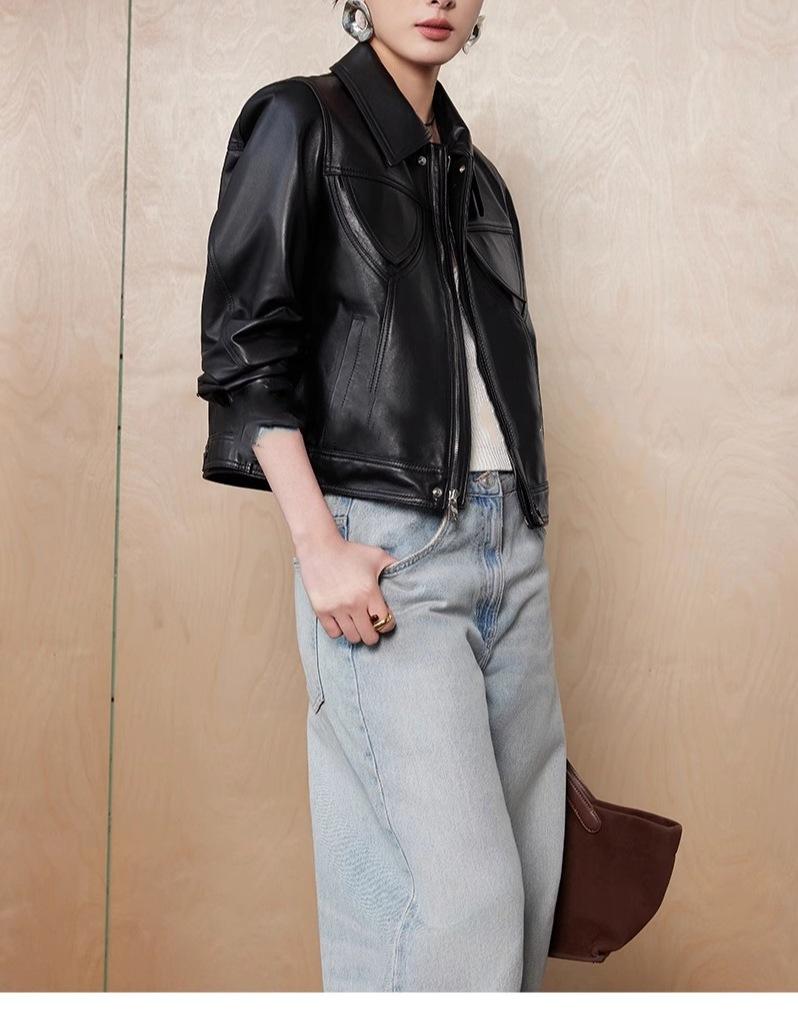 [Cuero Vintage] Chaqueta Corta de Cuero Americano Retro de Capa Superior de Piel de Oveja Curtida Vegetal Abrigo de Cuero para Mujer 2025