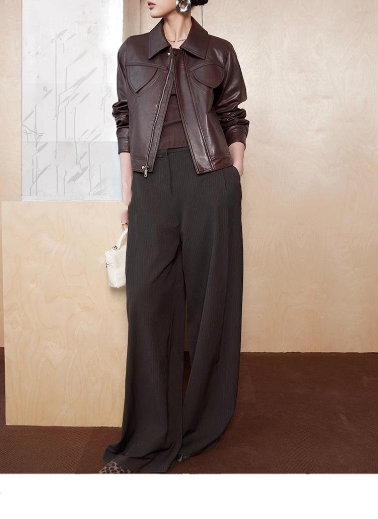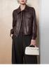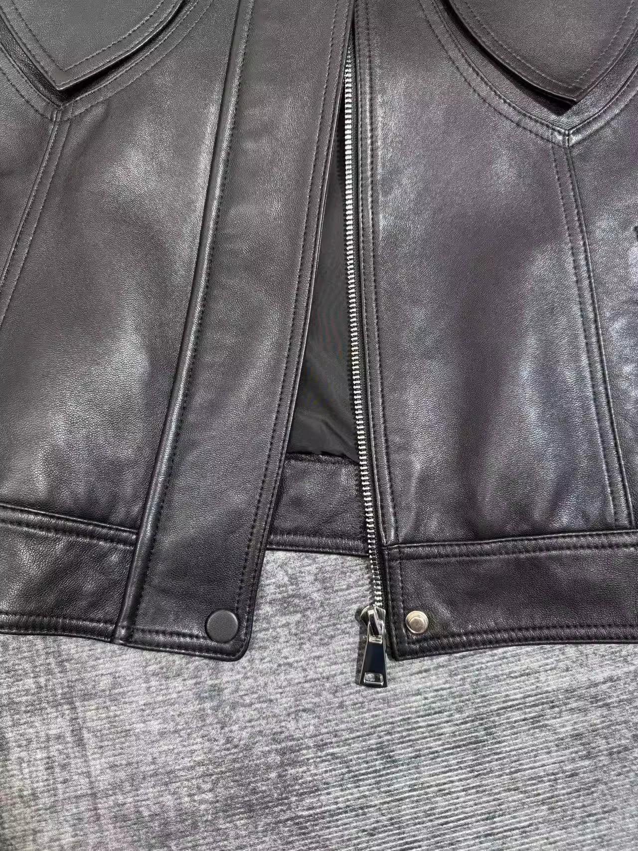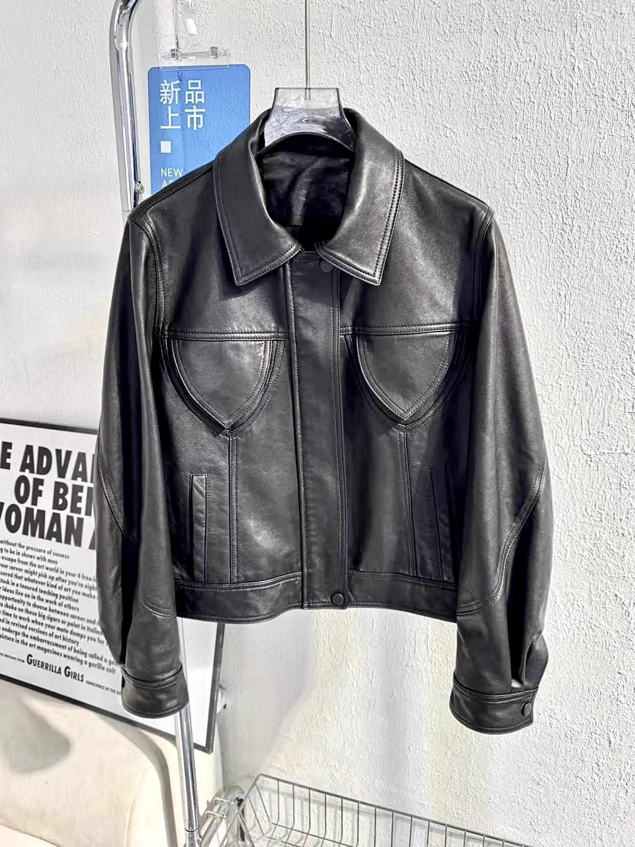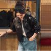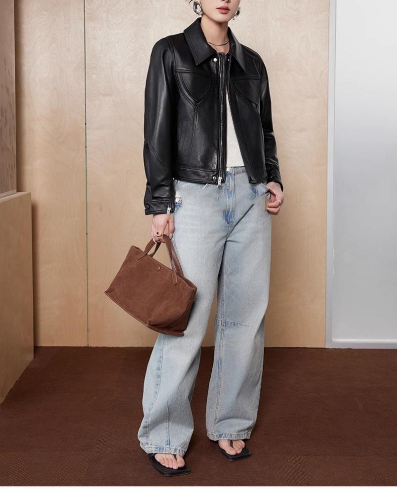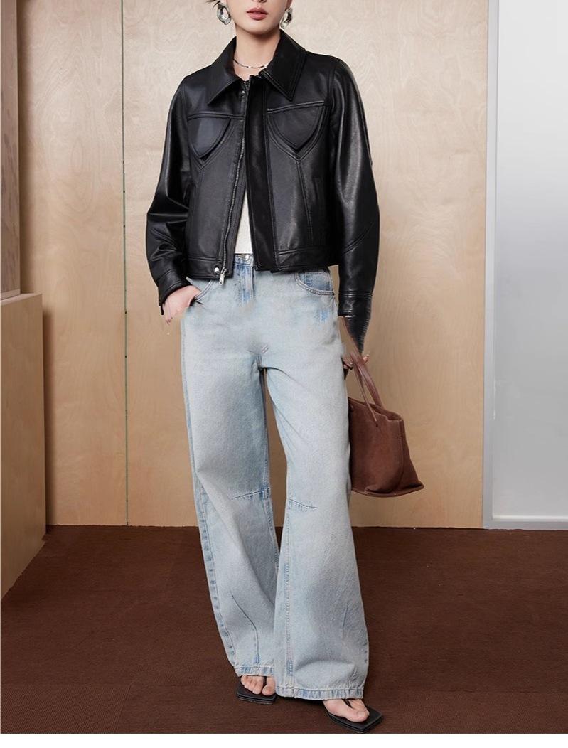 [Cuero Vintage] Chaqueta Corta de Cuero Americano Retro de Capa Superior de Piel de Oveja Curtida Vegetal Abrigo de Cuero para Mujer 2025
