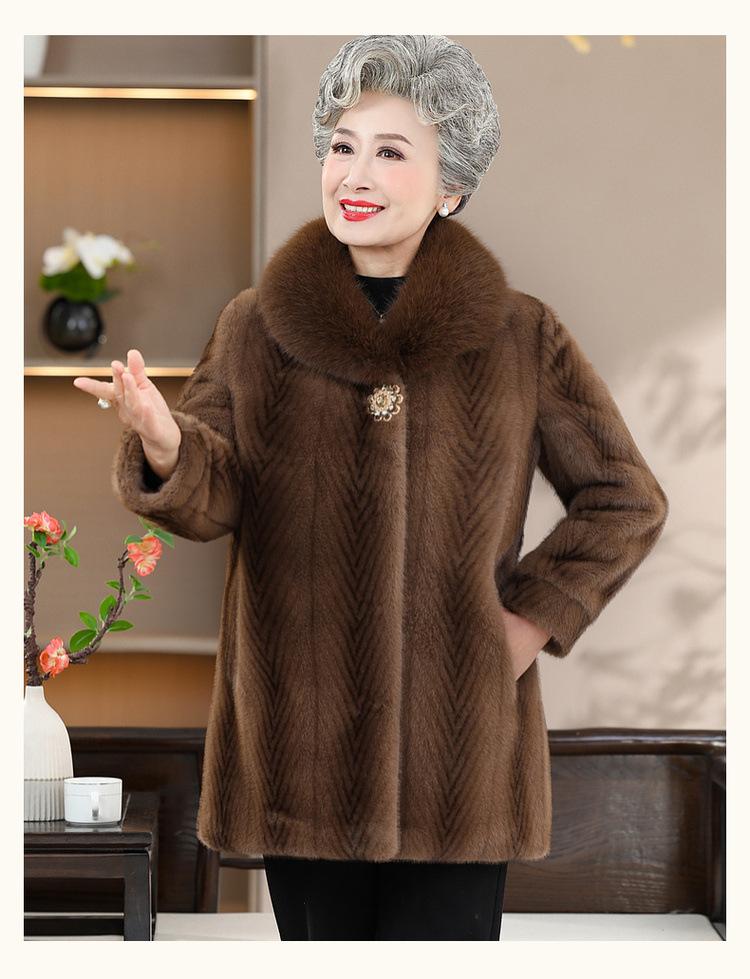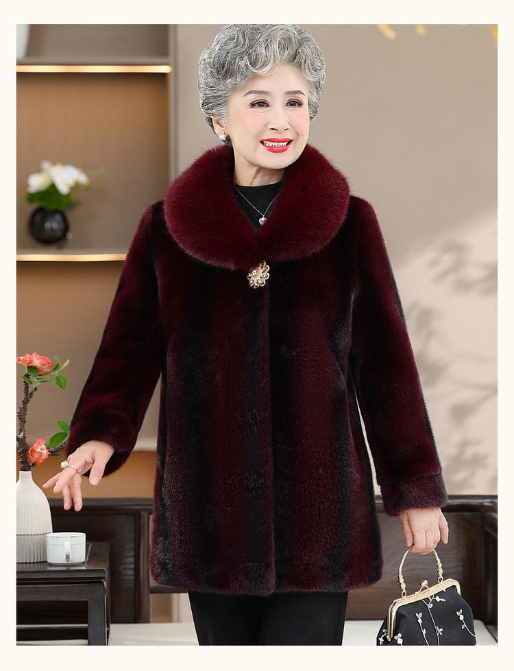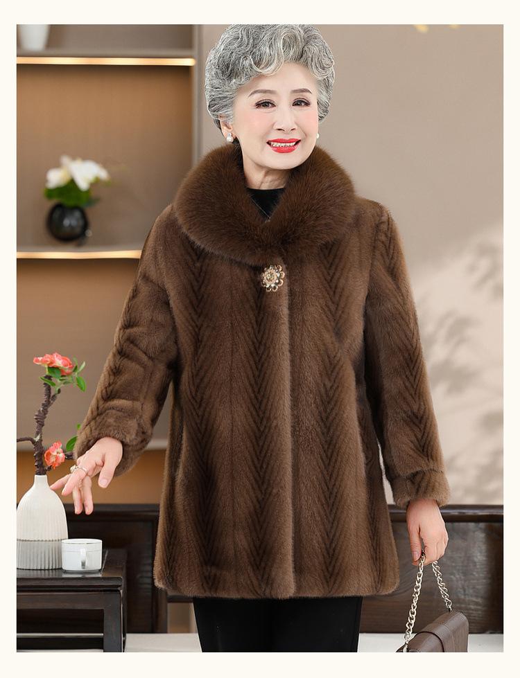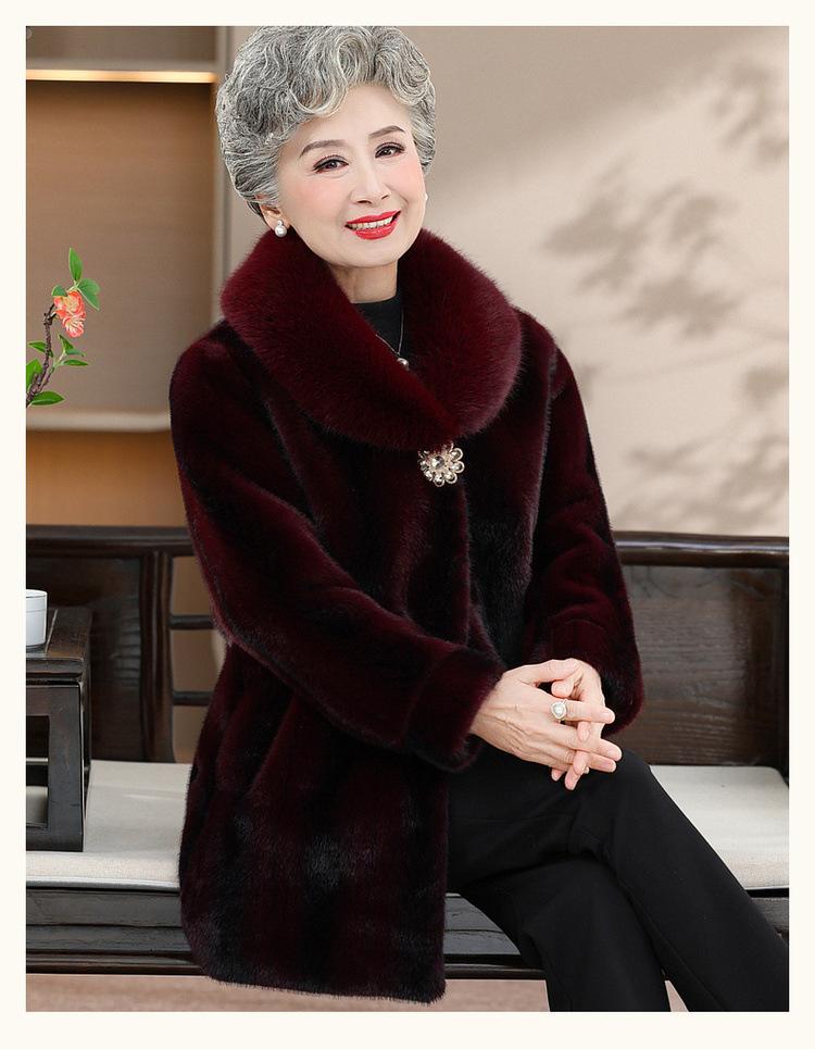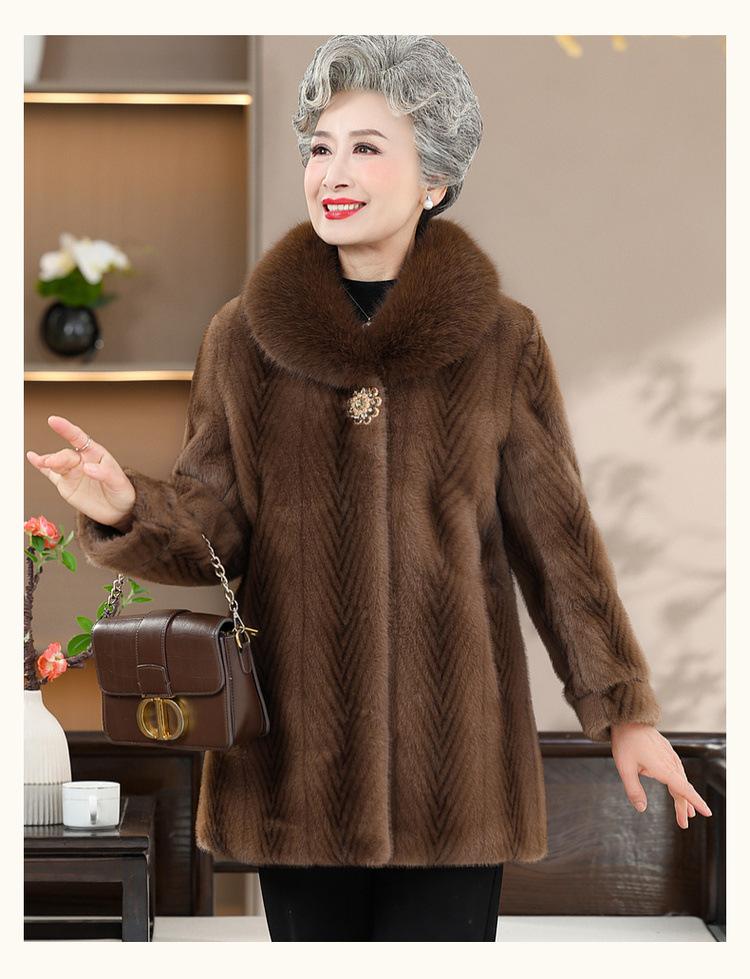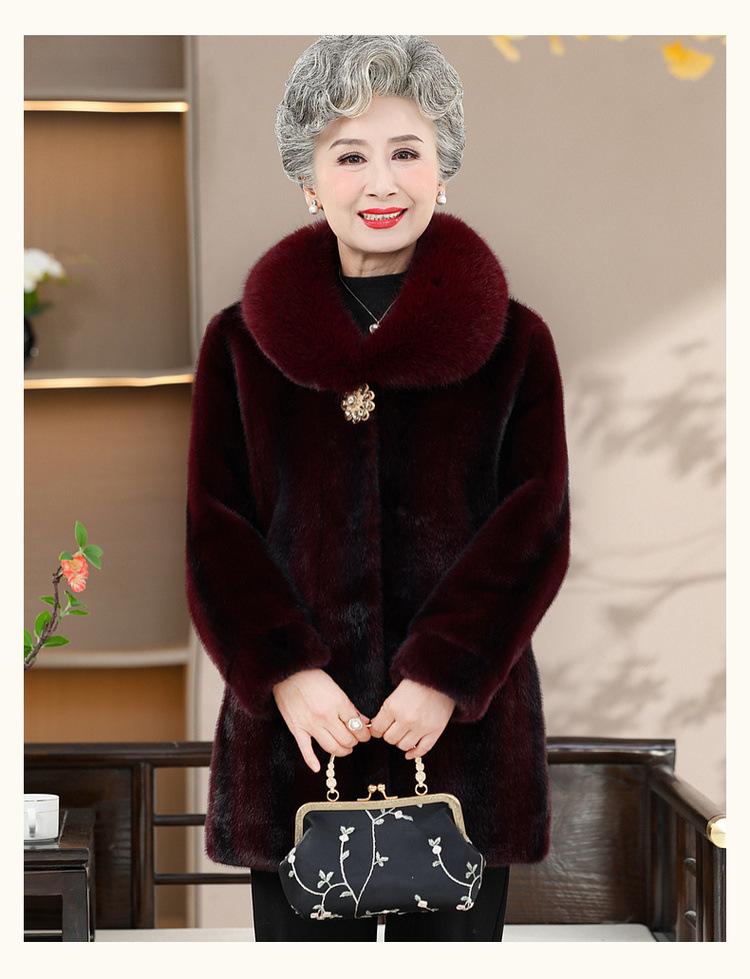 Abrigo de Piel Sintética para Madre de Estilo Nuevo Otoño e Invierno 2024 60 70 Abuela Mayor Abrigo Grueso de Terciopelo de Visón para Mujer