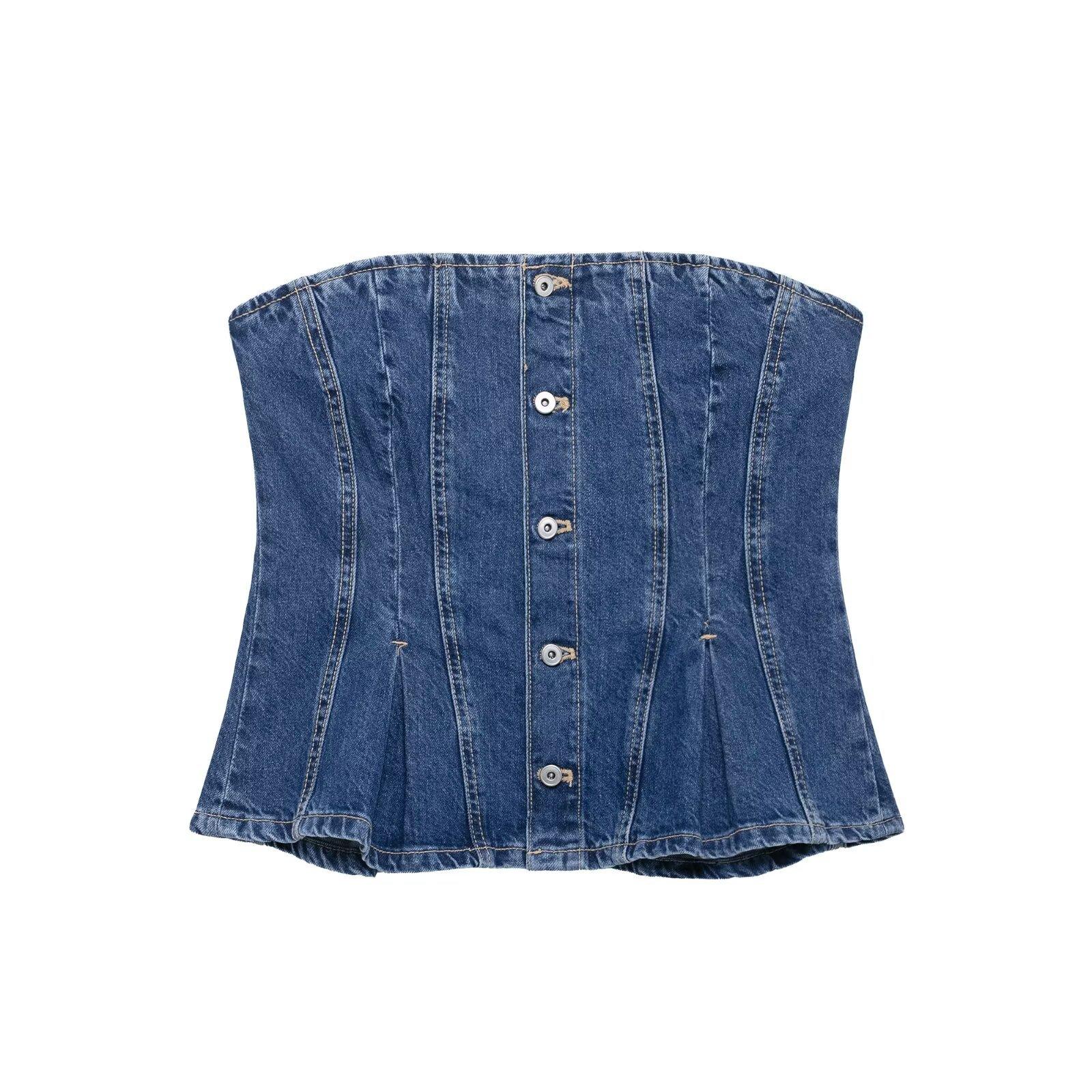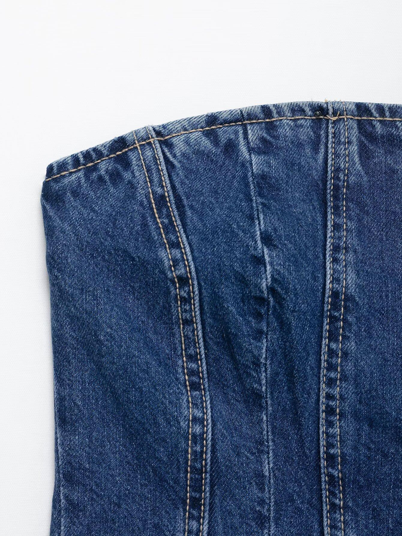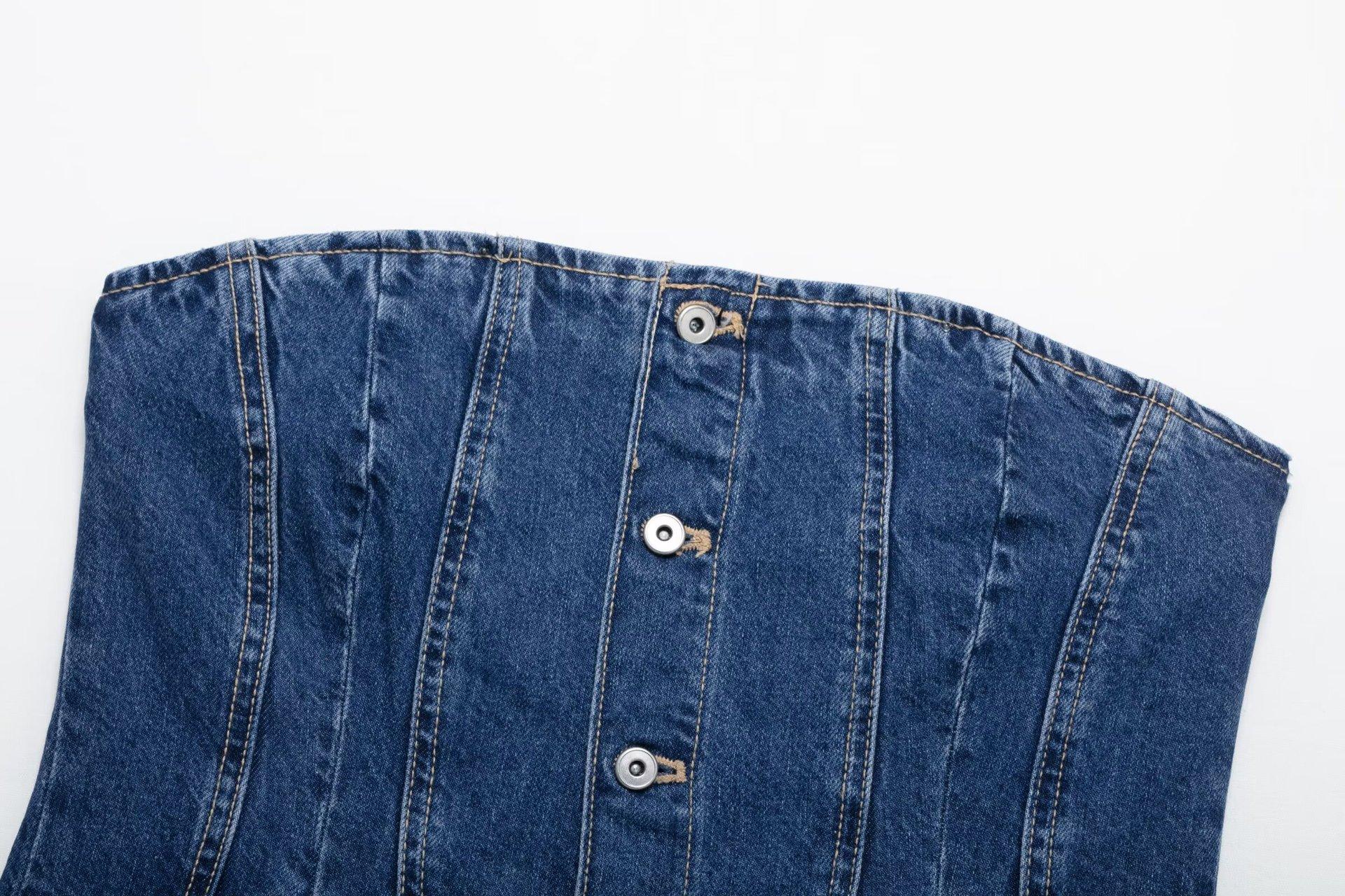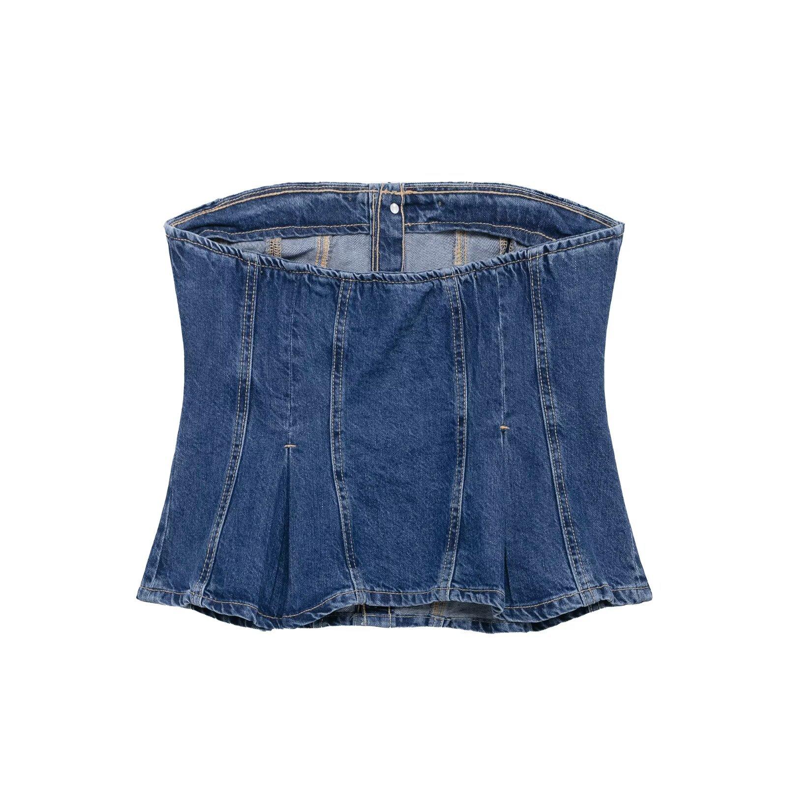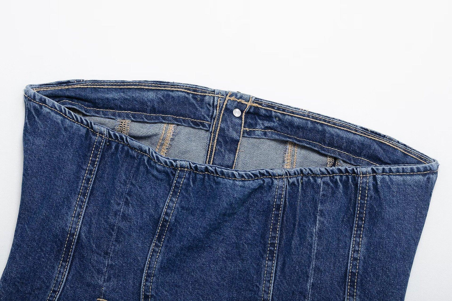 Amazon comercio exterior transfronterizo Europa y Estados Unidos ropa de mujer 2025 principios de primavera nuevo sexy chica hot sin hombros cinturón mezclilla pecho envuelto espalda