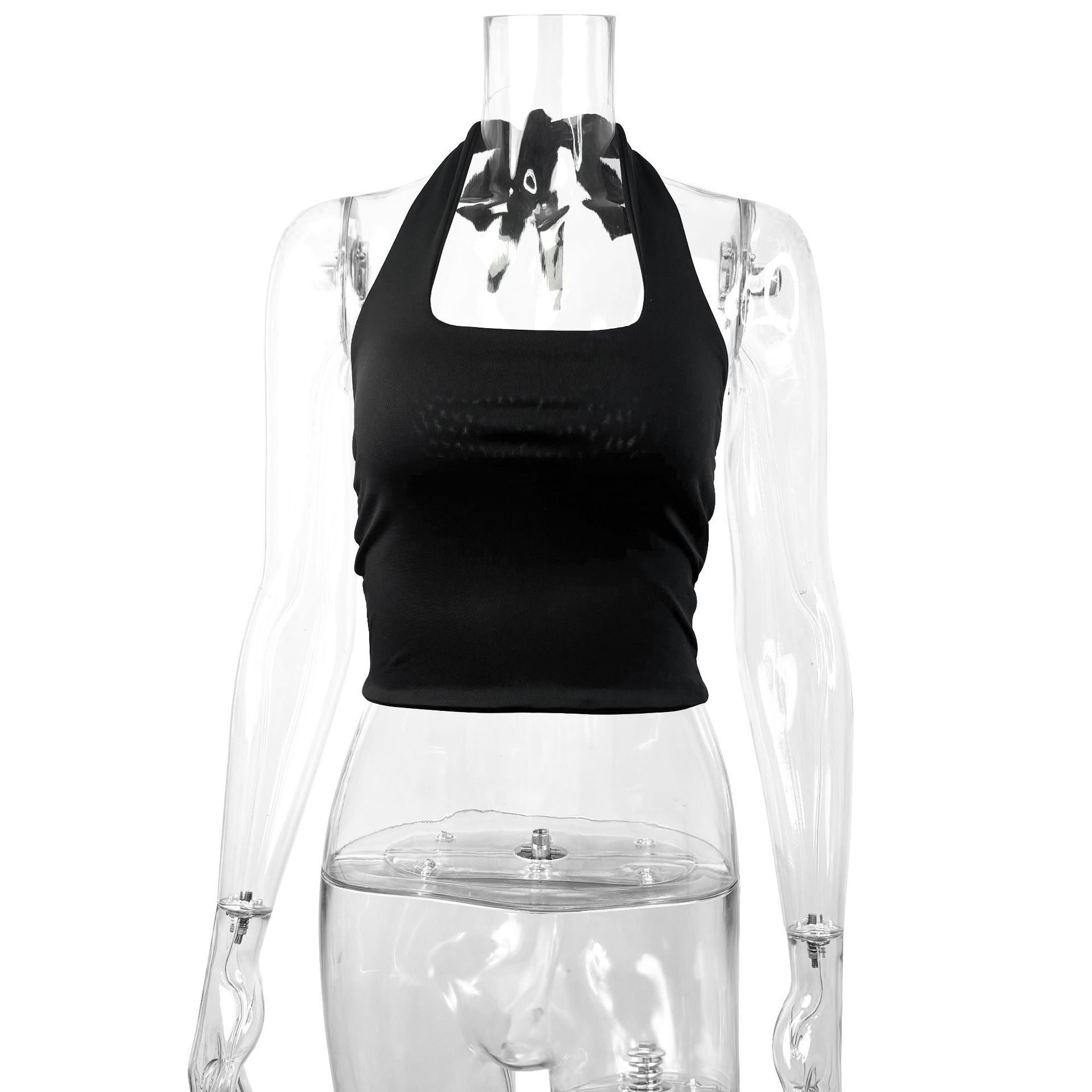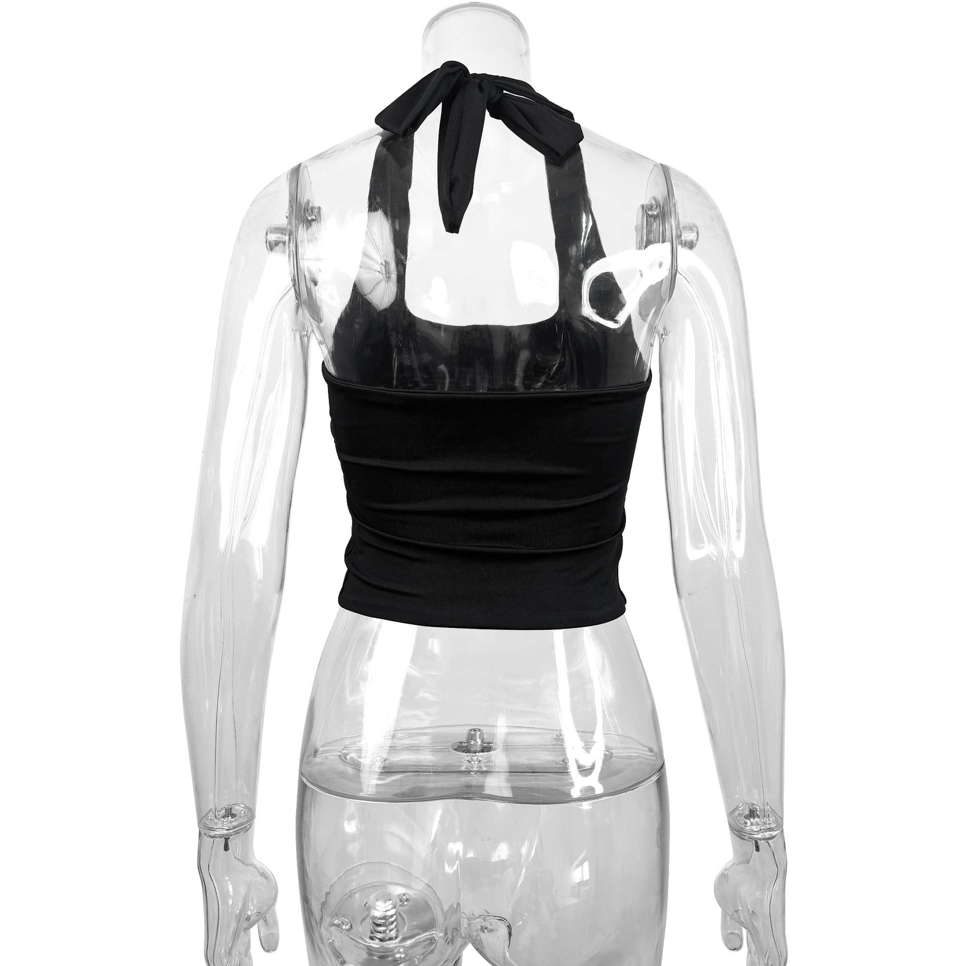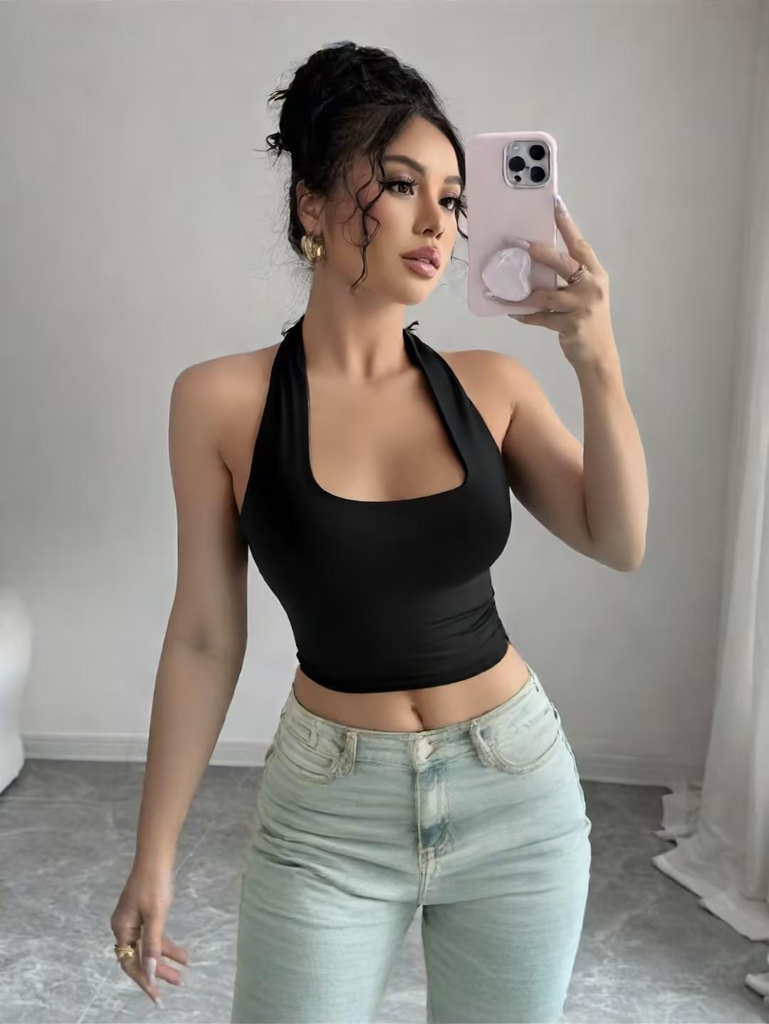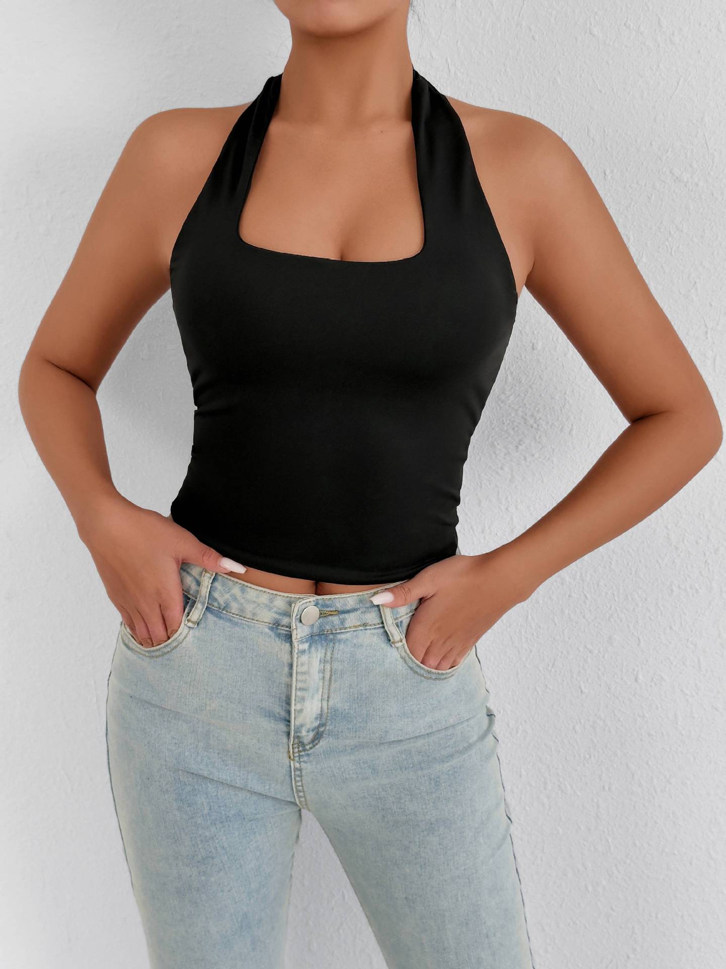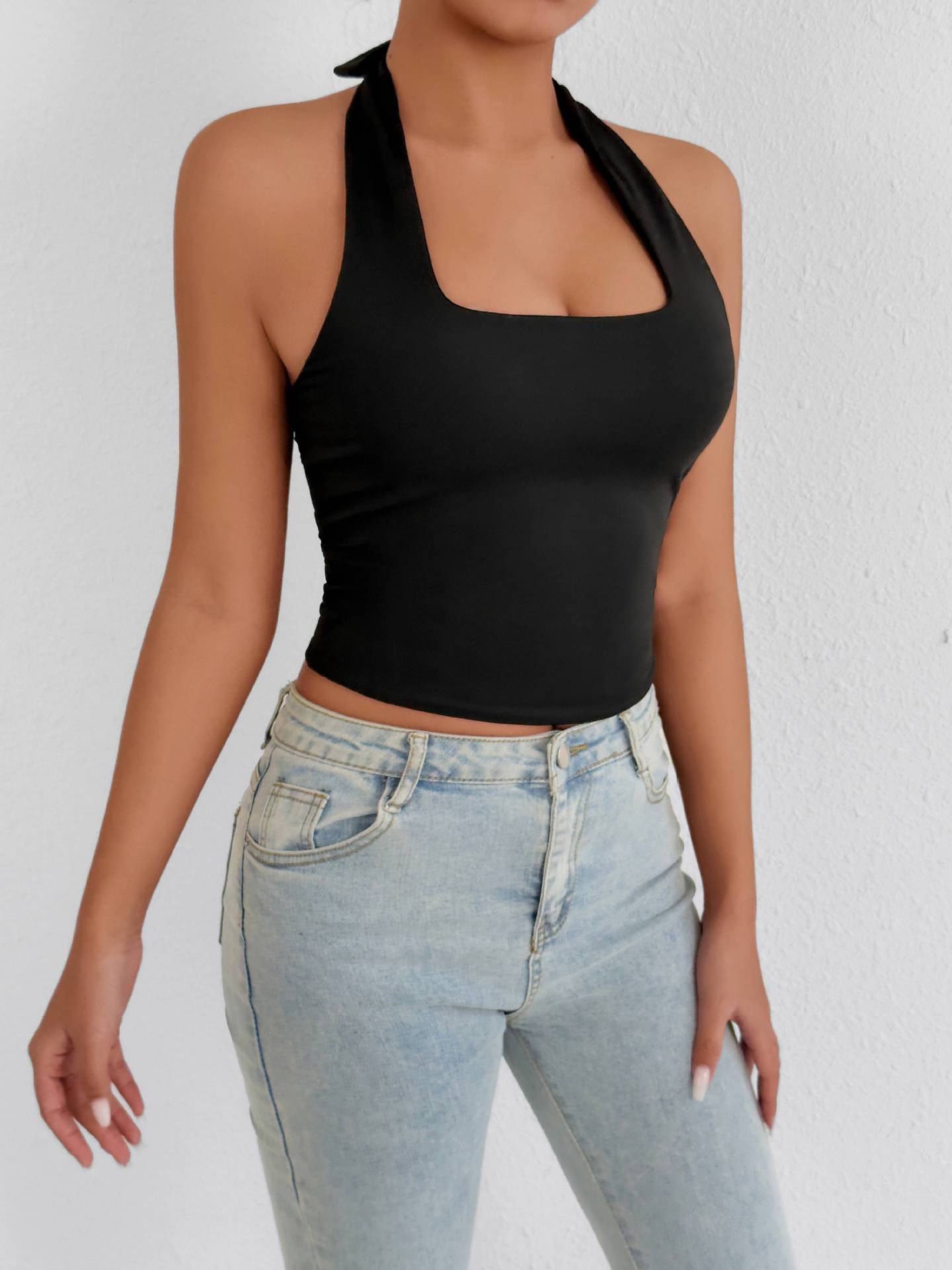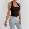 Top corto de moda europea y americana, sexy cuello cuadrado, simple y versátil,Se puede usar en exteriores.