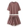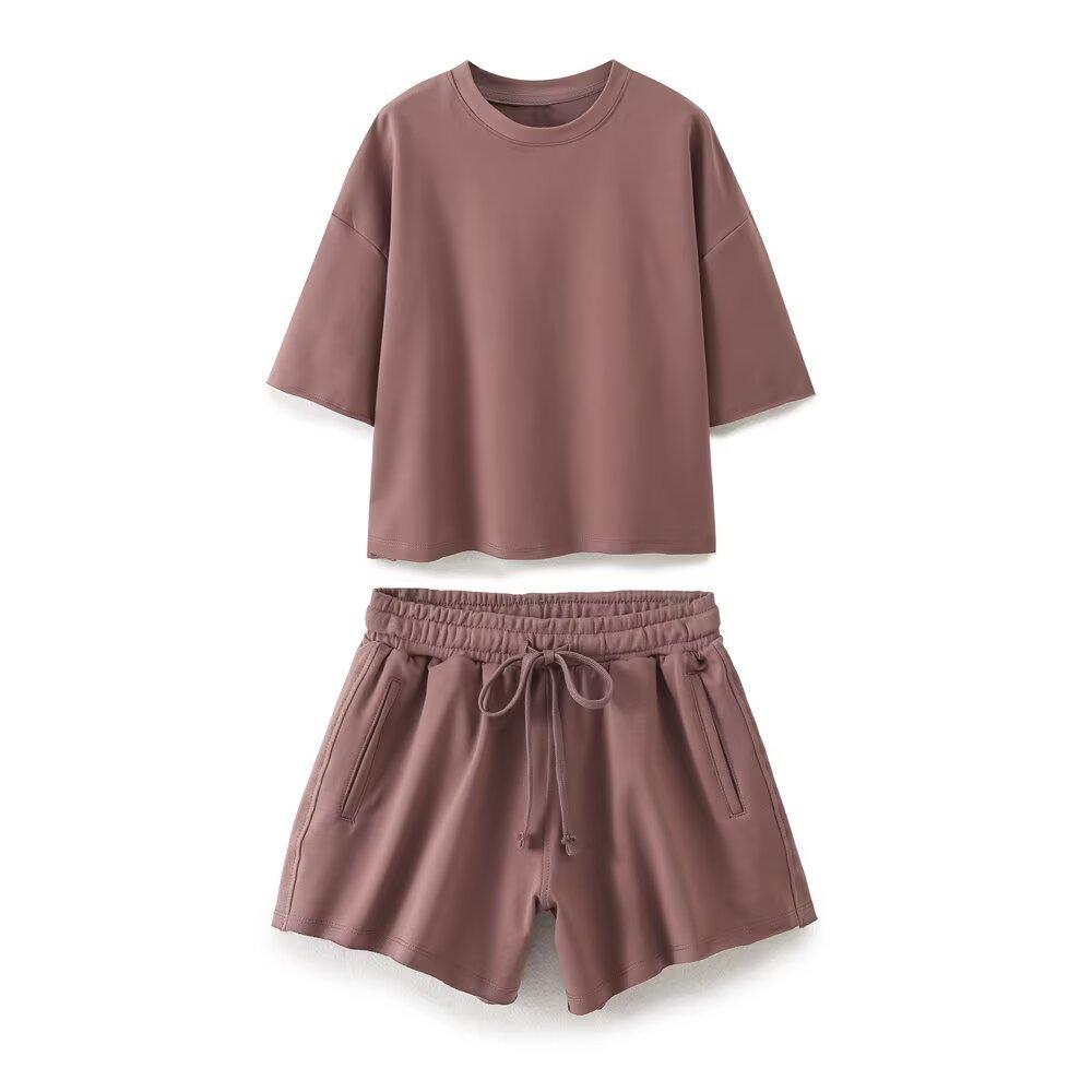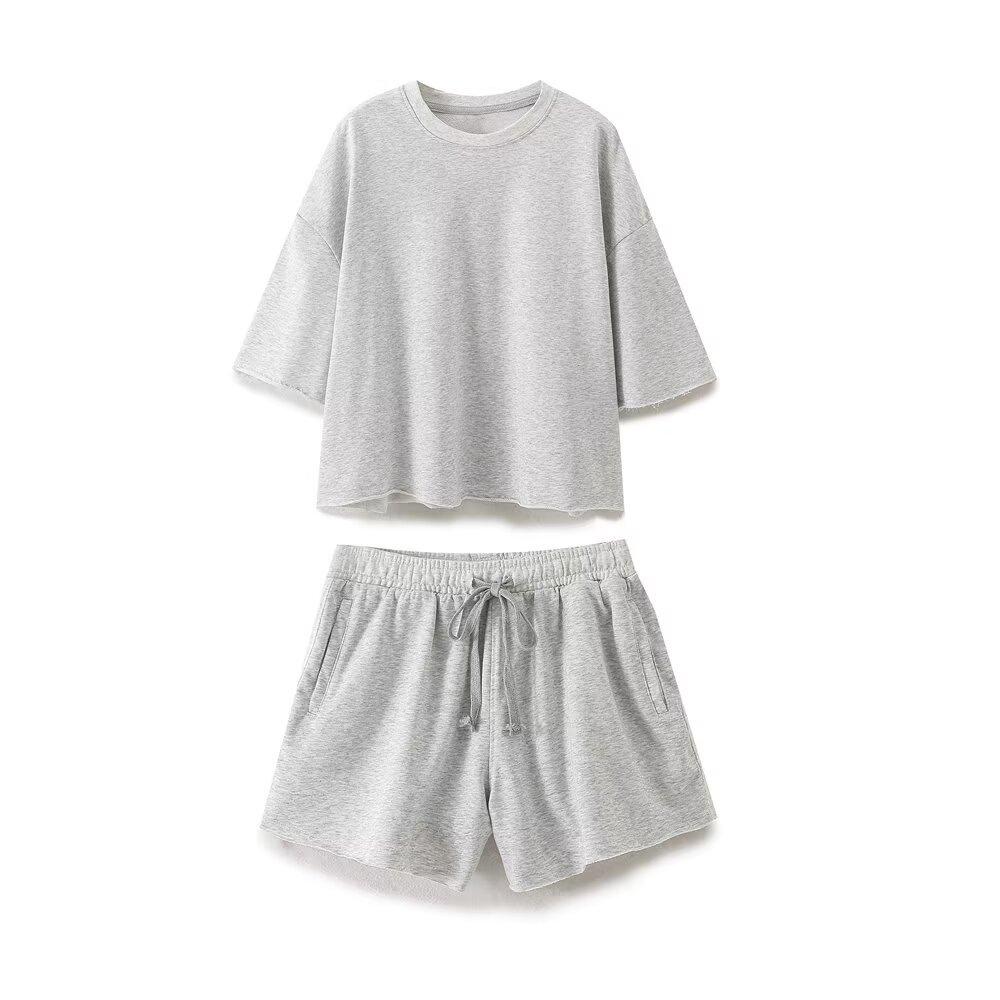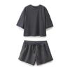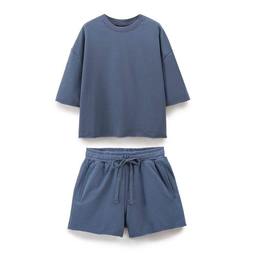 Exportación Transfronteriza Ropa de Mujer 2025 Primavera y Verano Estilo Europeo y Americano Camiseta de Manga Corta Top + Traje de Shorts Lavados Mujer E73968/9