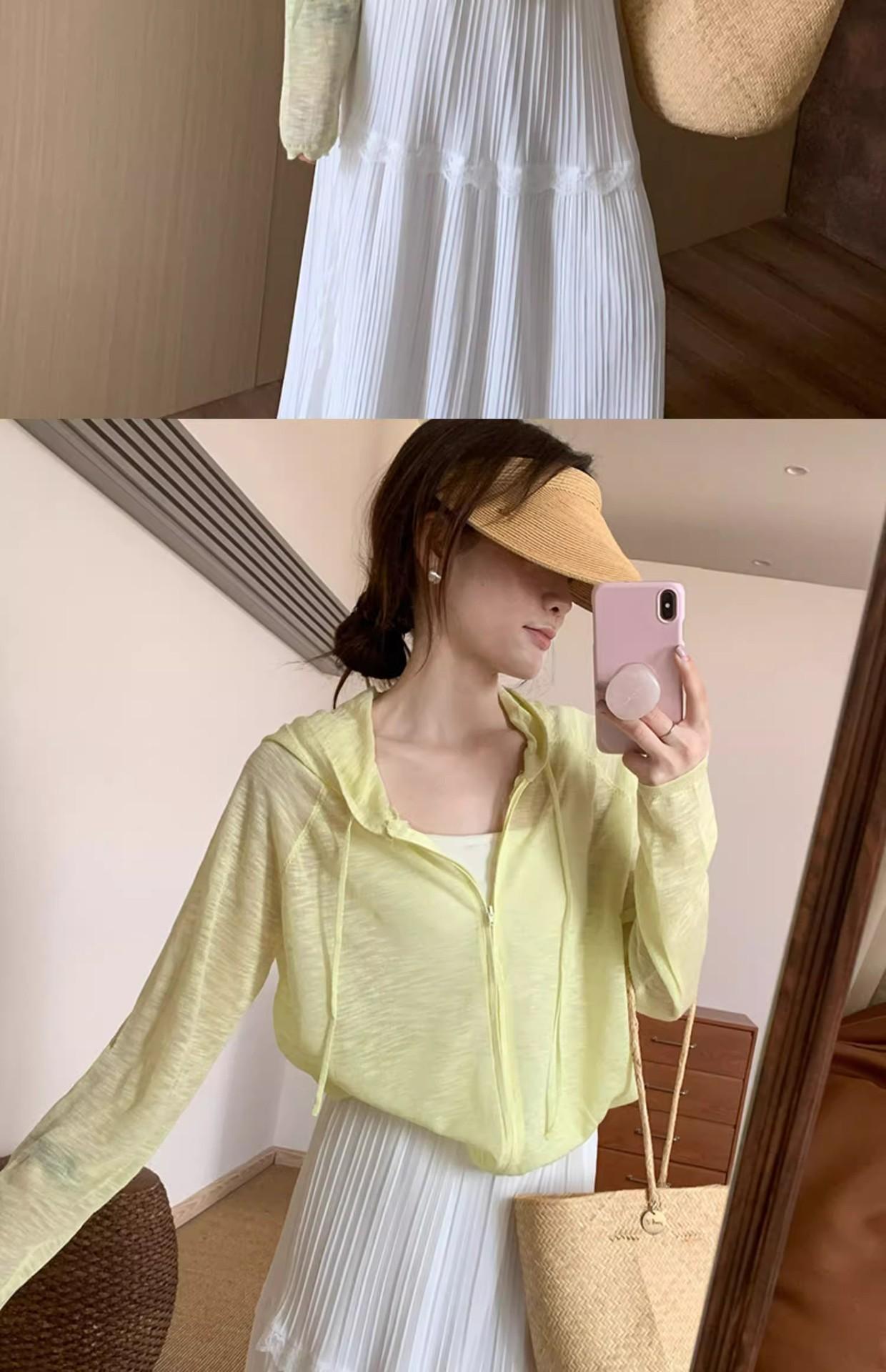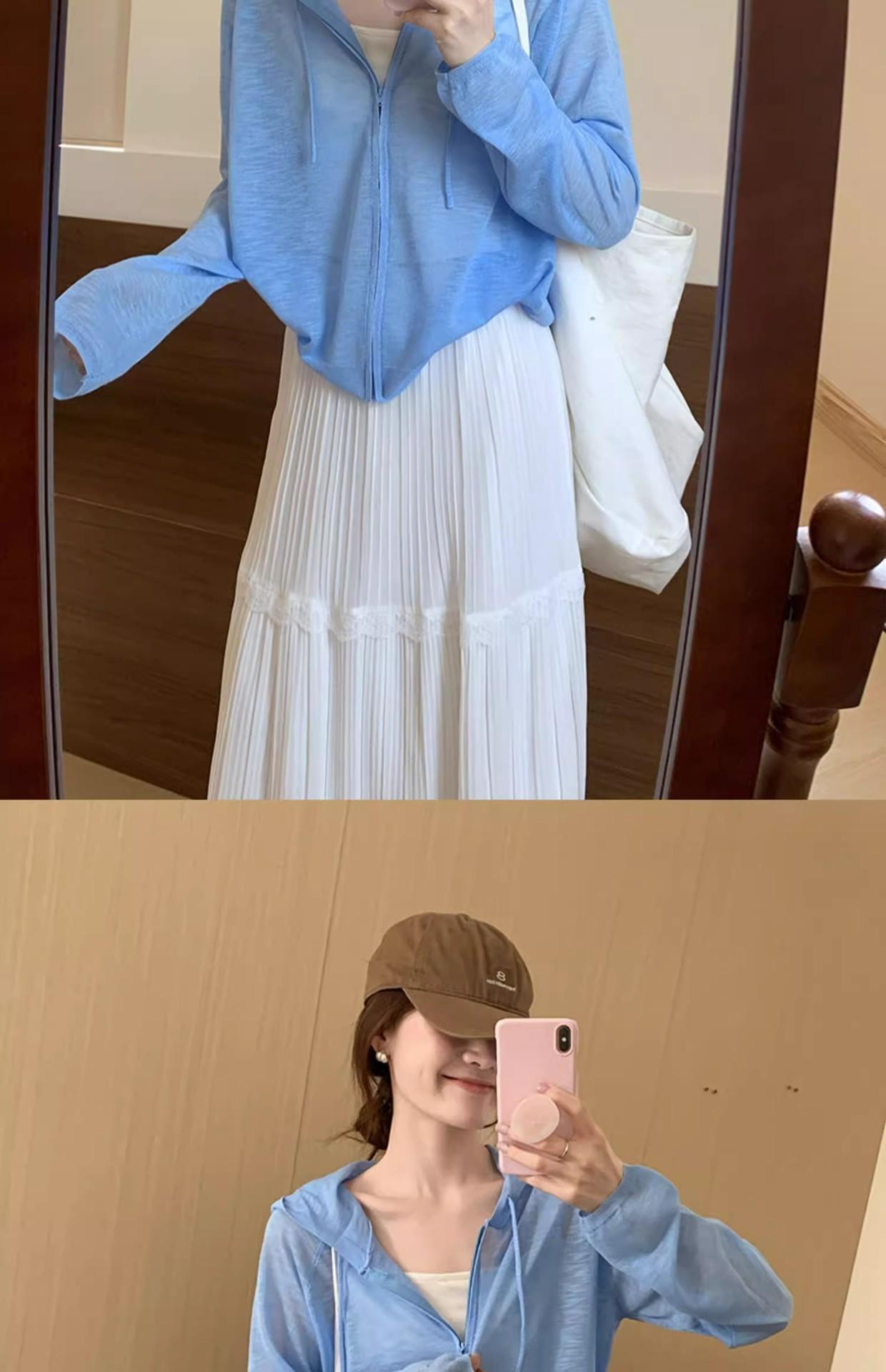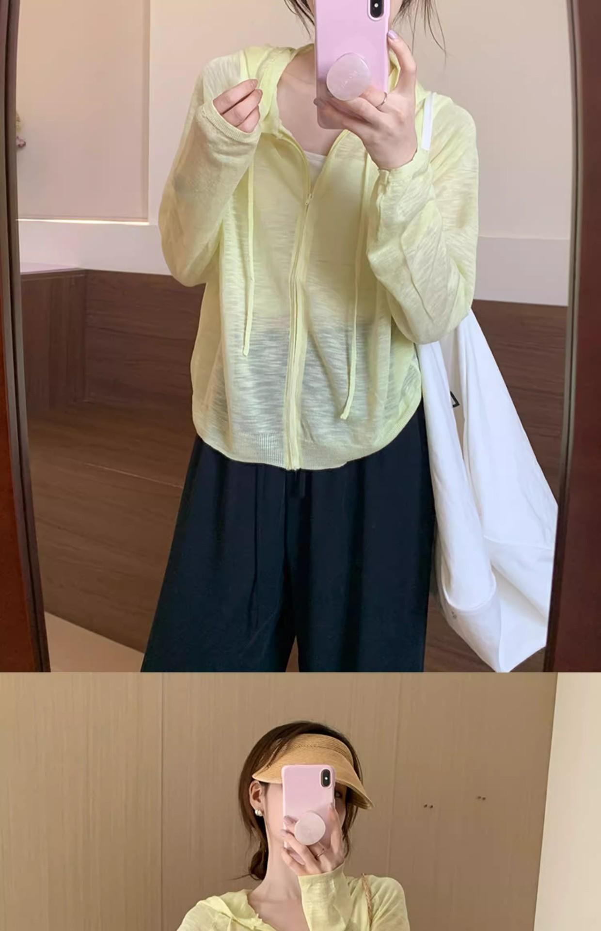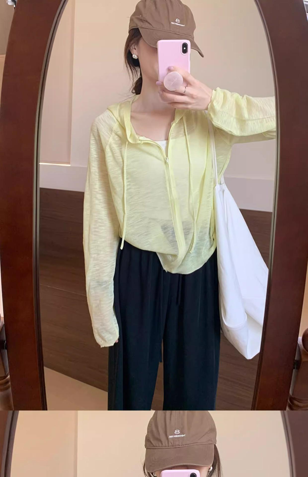 Ropa de Protección Solar con Capucha de Estilo Simple Color Puro Verano 2025 Nuevo Holgado Adelgazante Reductor de Edad Top Versátil