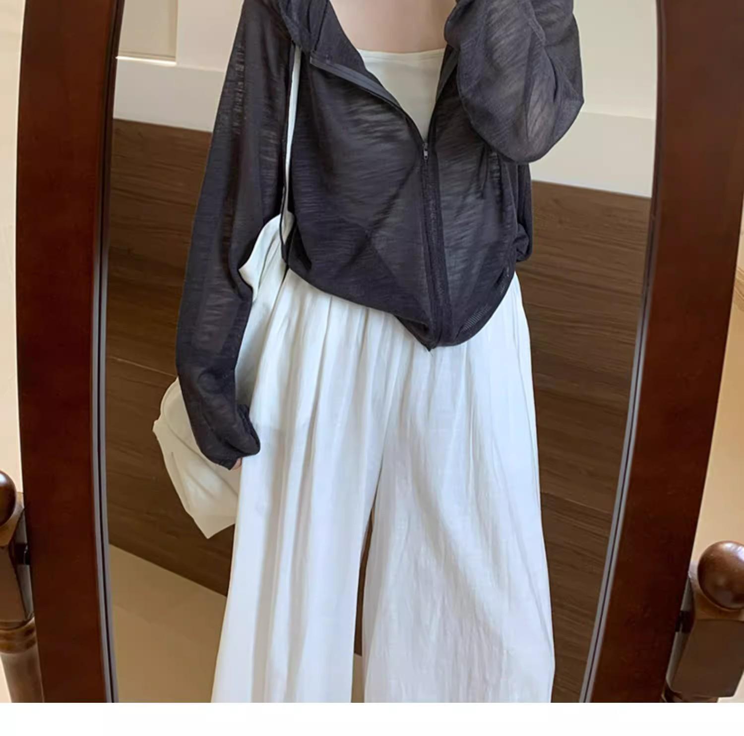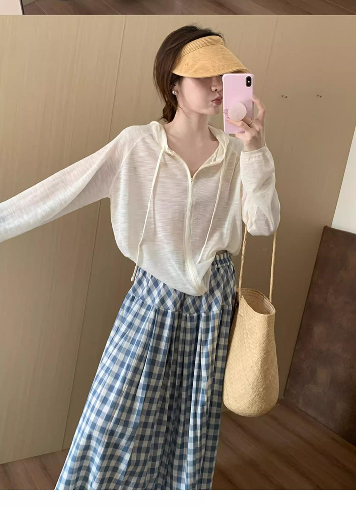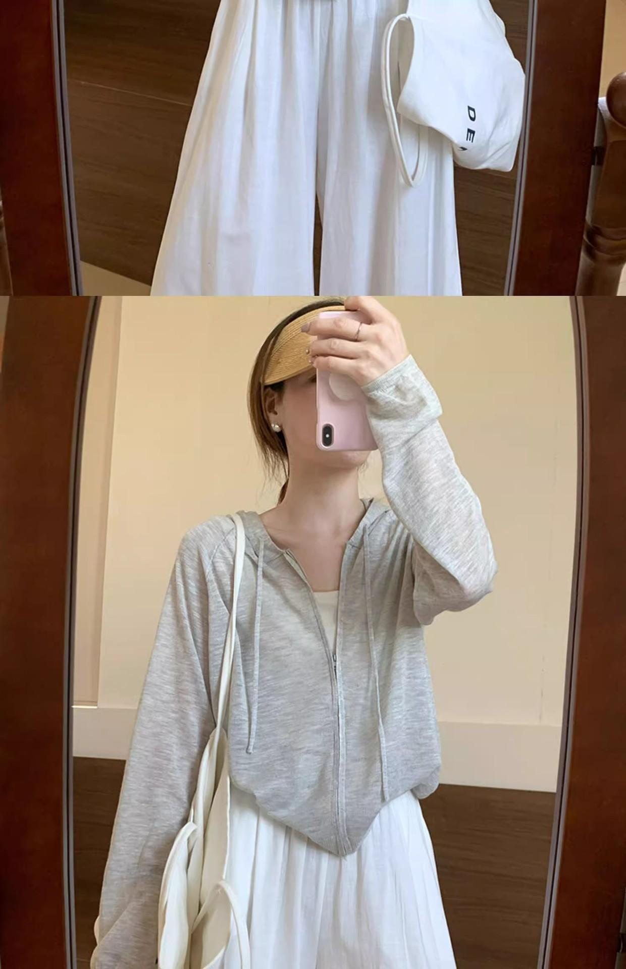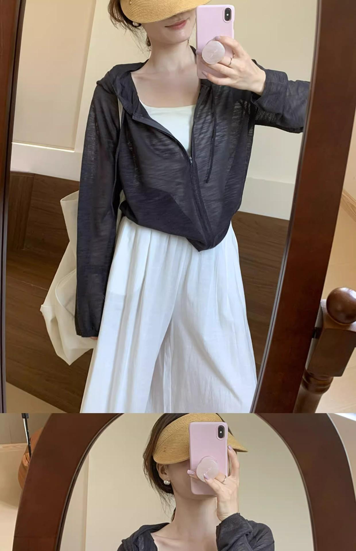 Ropa de Protección Solar con Capucha de Estilo Simple Color Puro Verano 2025 Nuevo Holgado Adelgazante Reductor de Edad Top Versátil