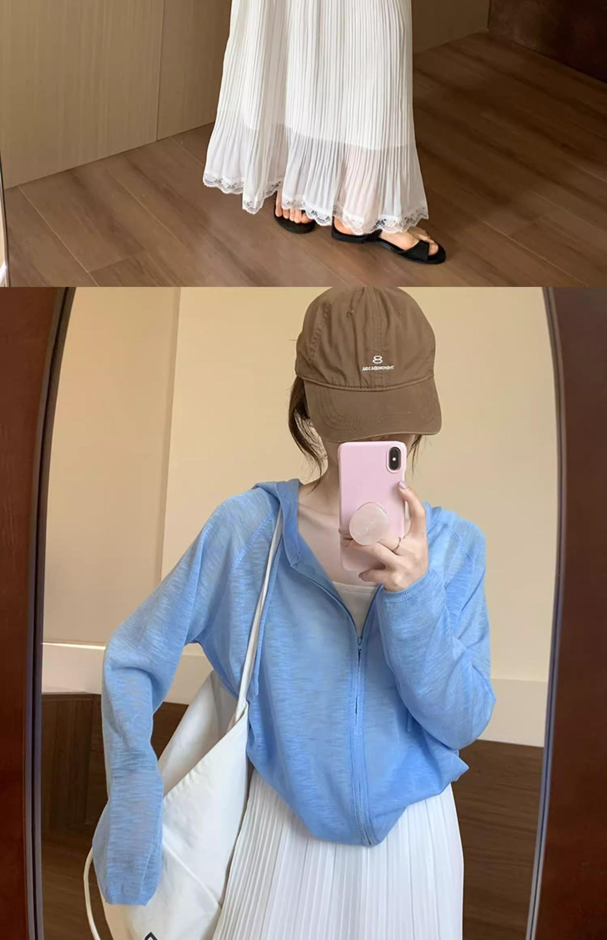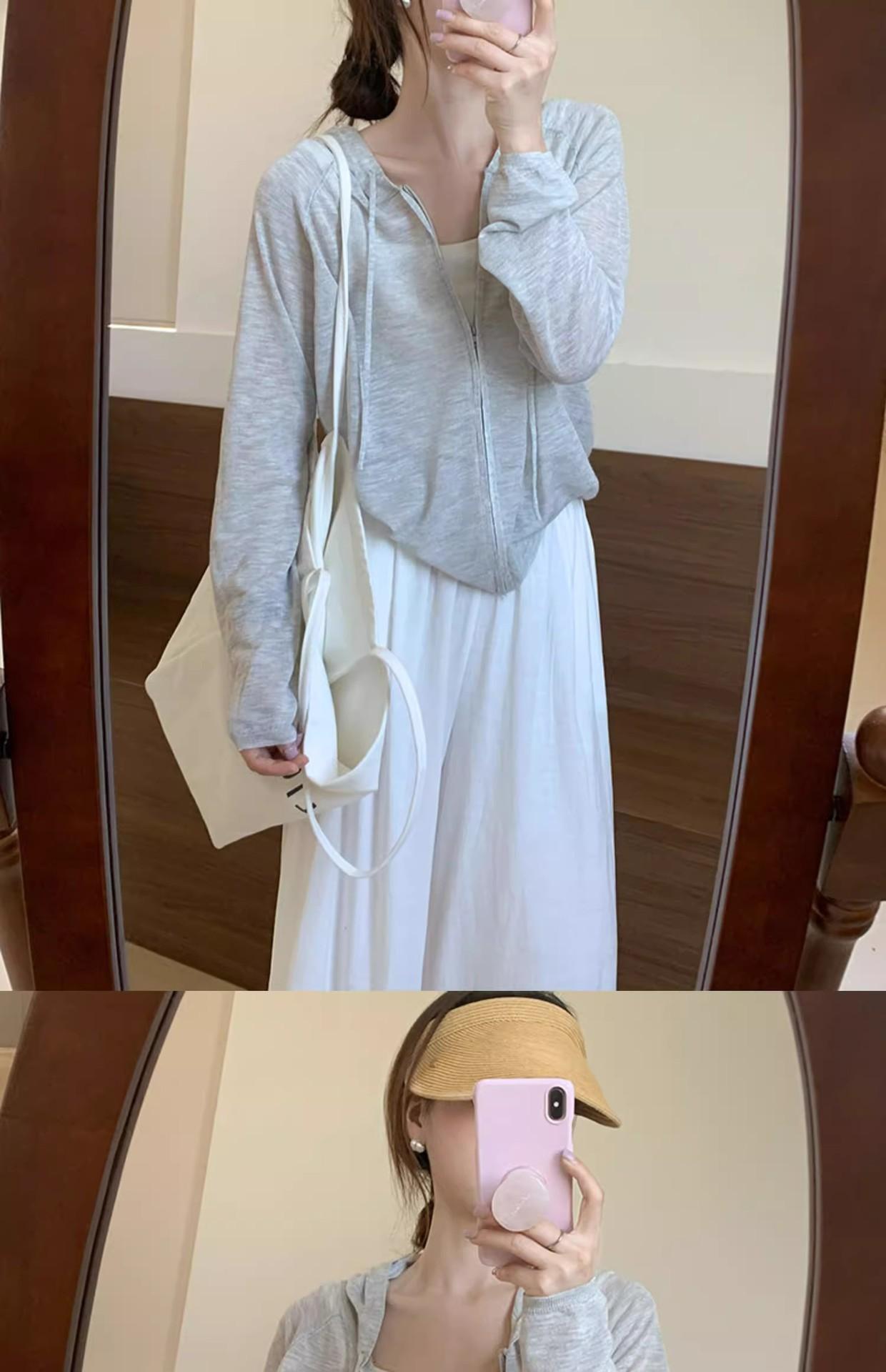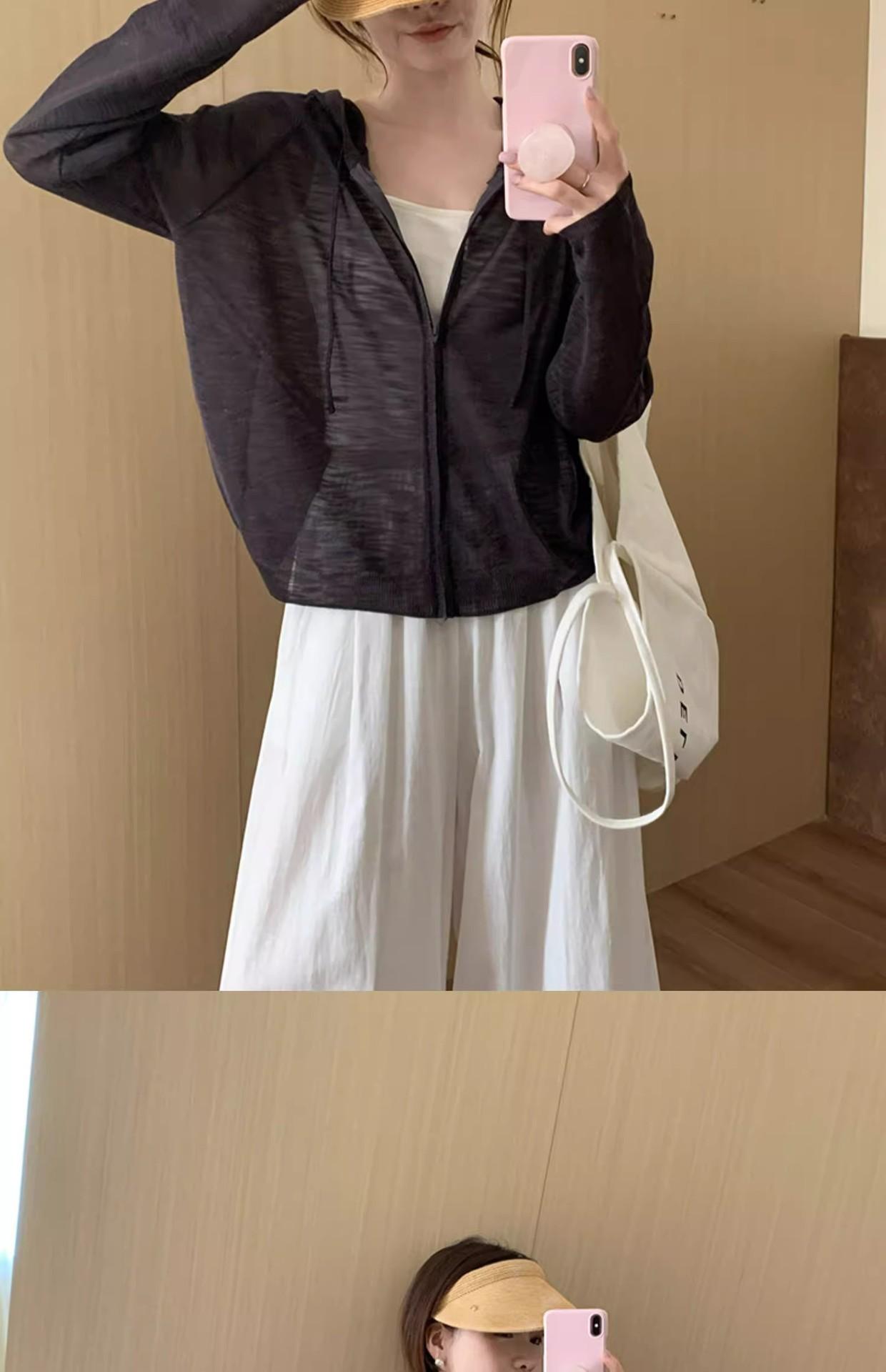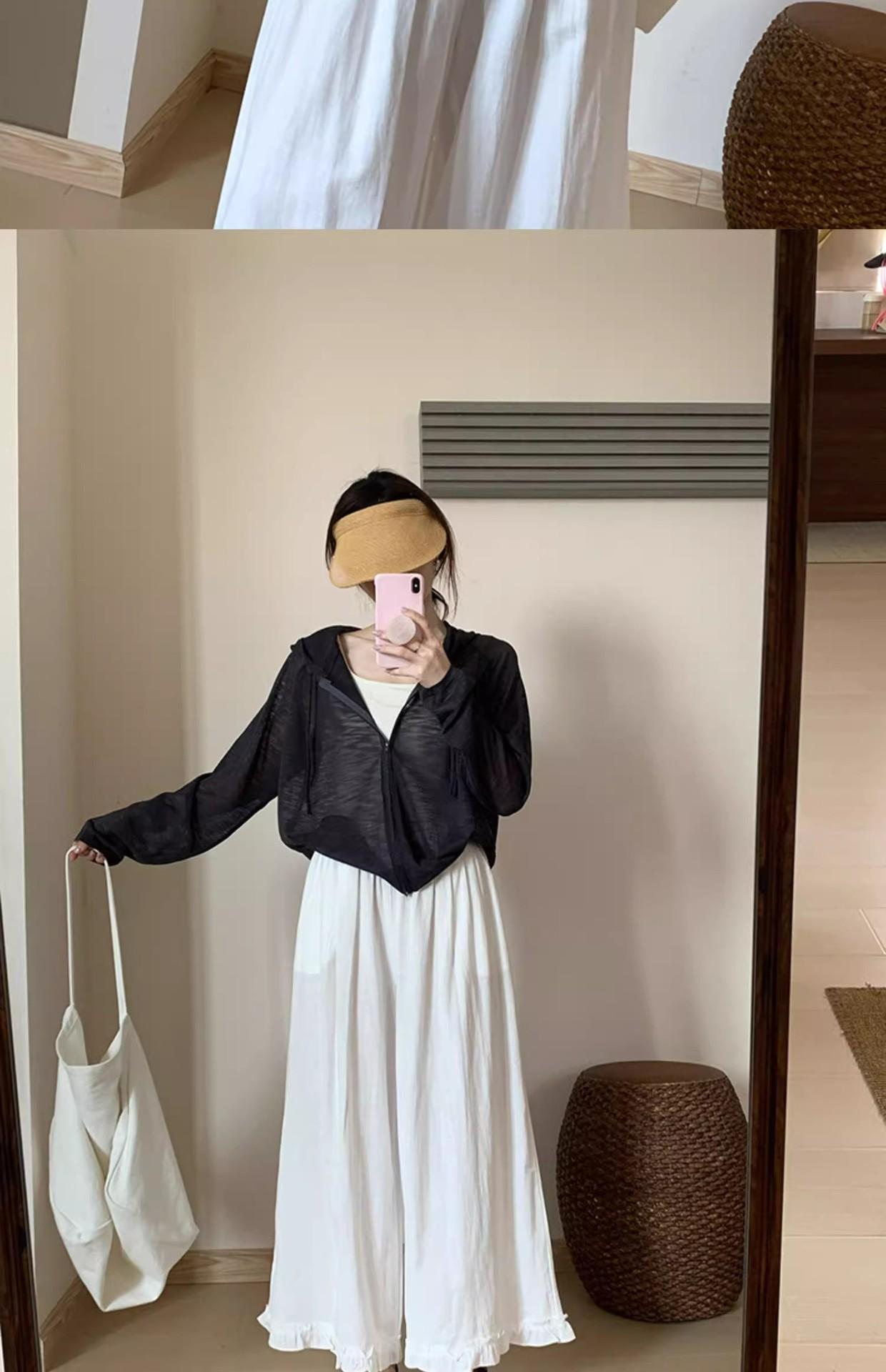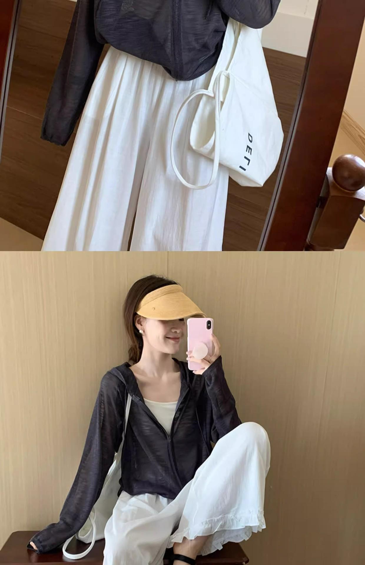 Ropa de Protección Solar con Capucha de Estilo Simple Color Puro Verano 2025 Nuevo Holgado Adelgazante Reductor de Edad Top Versátil