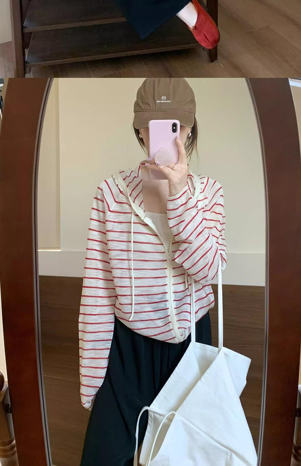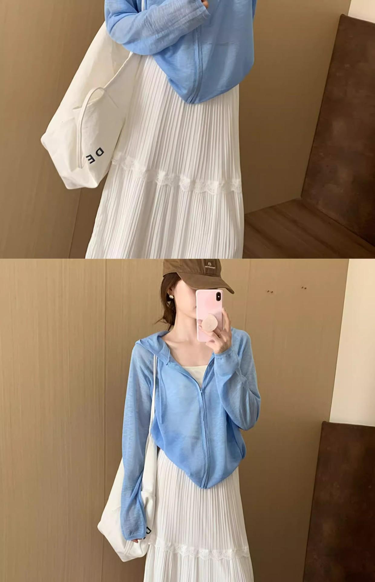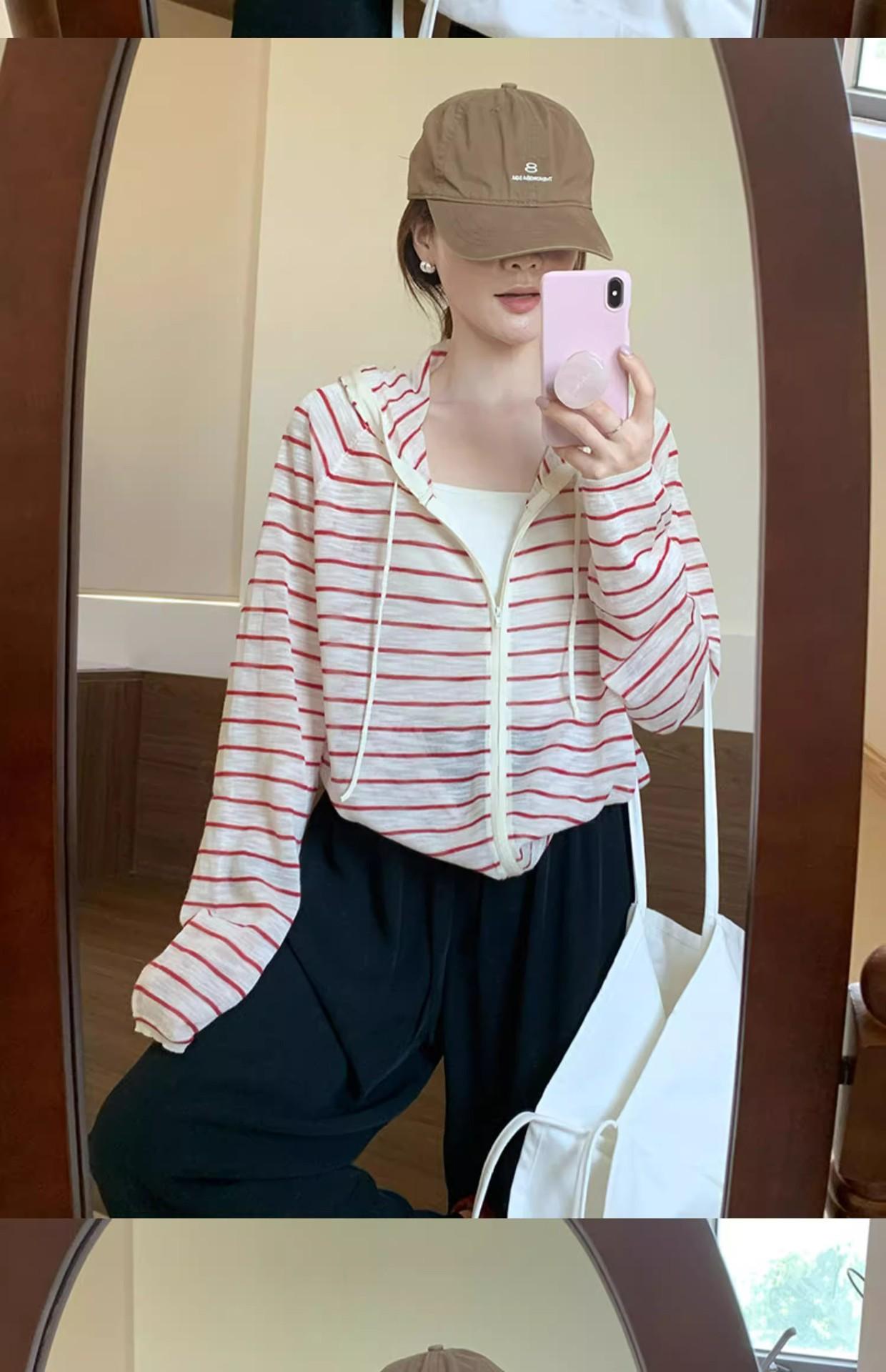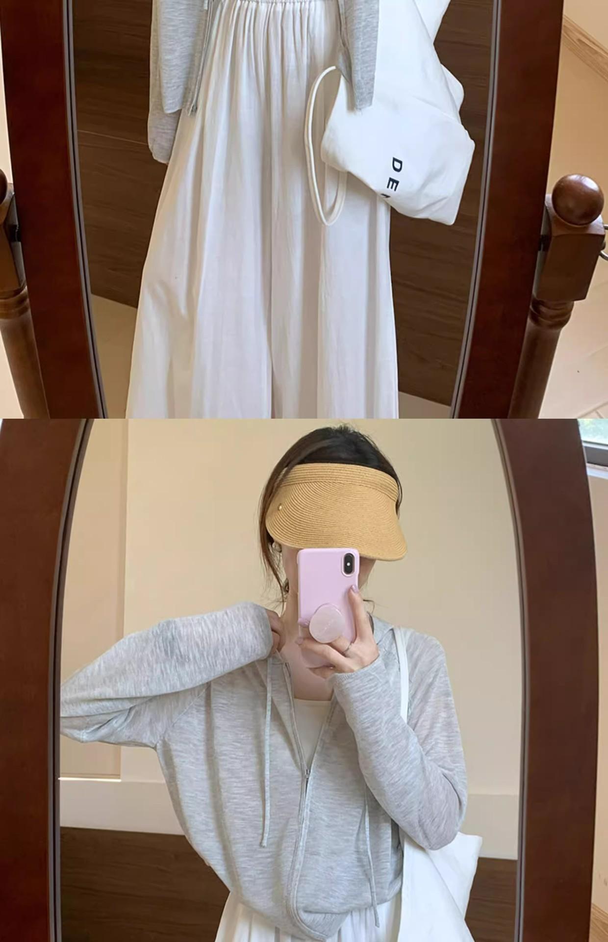 Ropa de Protección Solar con Capucha de Estilo Simple Color Puro Verano 2025 Nuevo Holgado Adelgazante Reductor de Edad Top Versátil