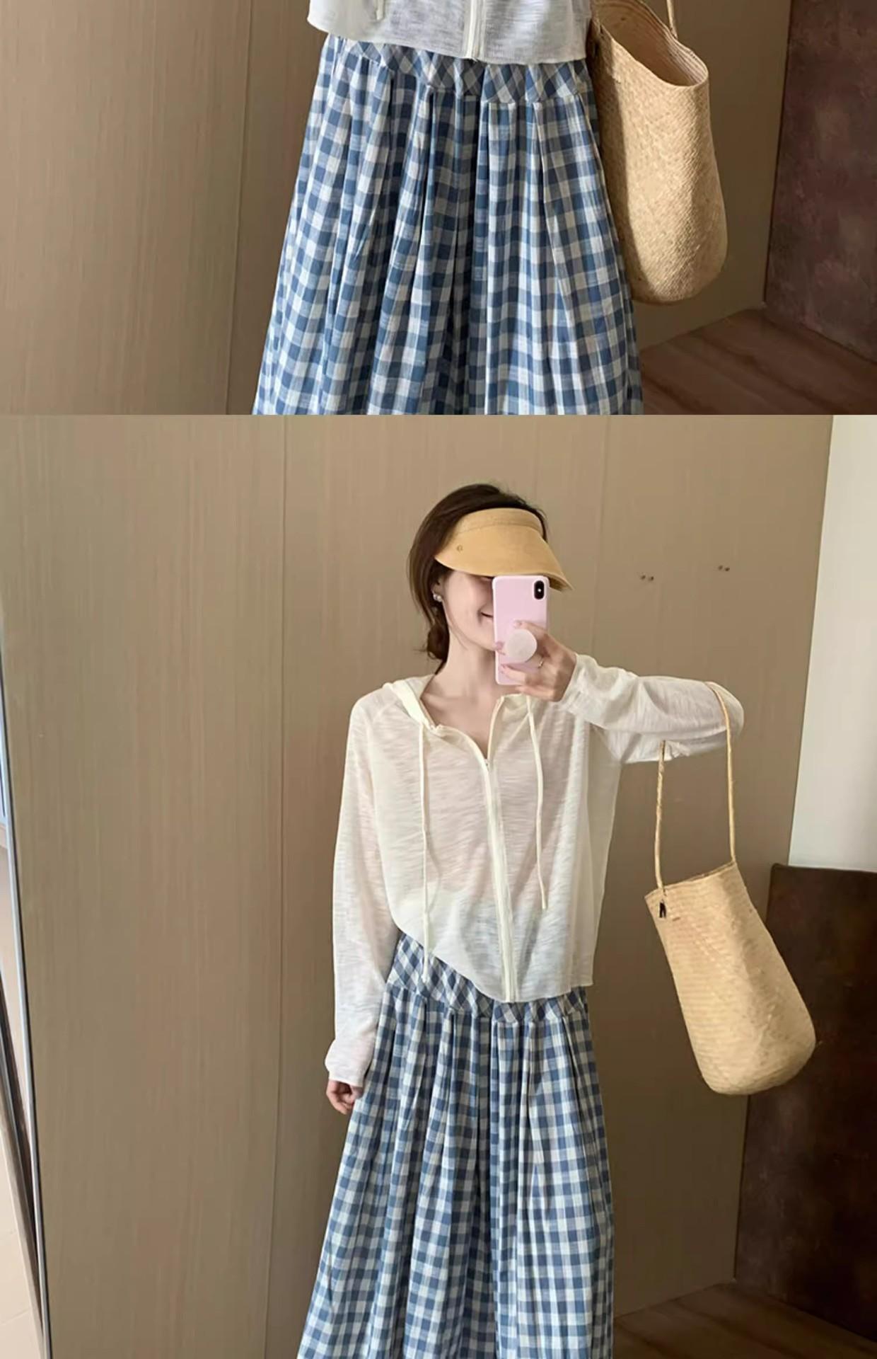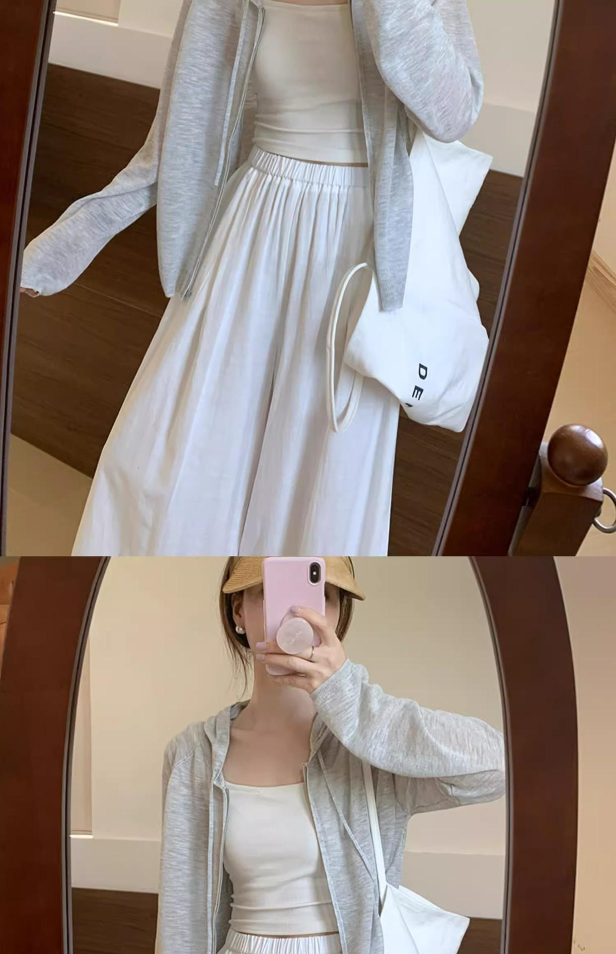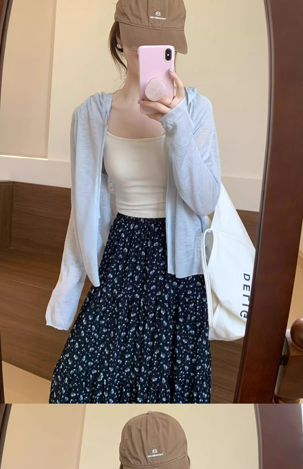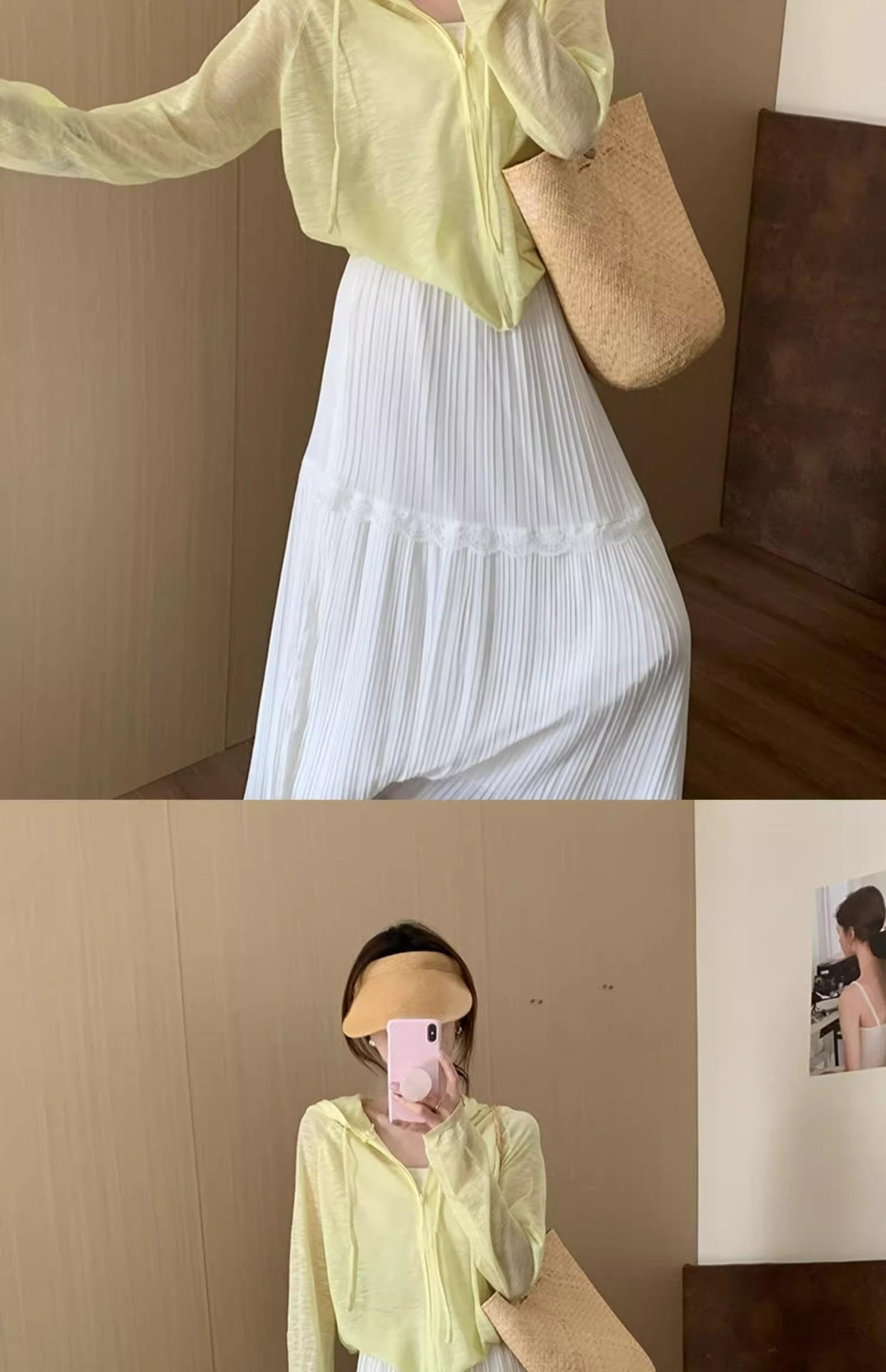 Ropa de Protección Solar con Capucha de Estilo Simple Color Puro Verano 2025 Nuevo Holgado Adelgazante Reductor de Edad Top Versátil